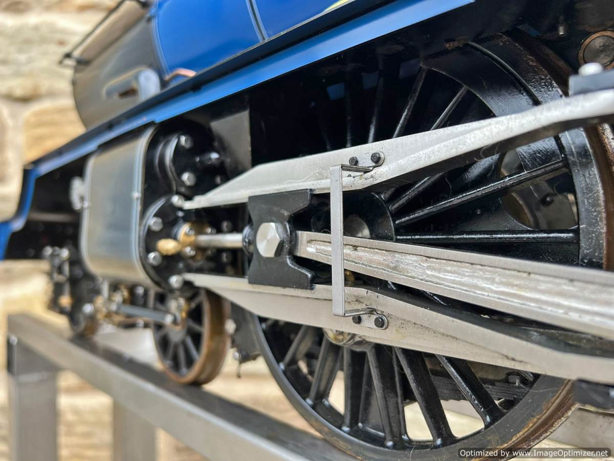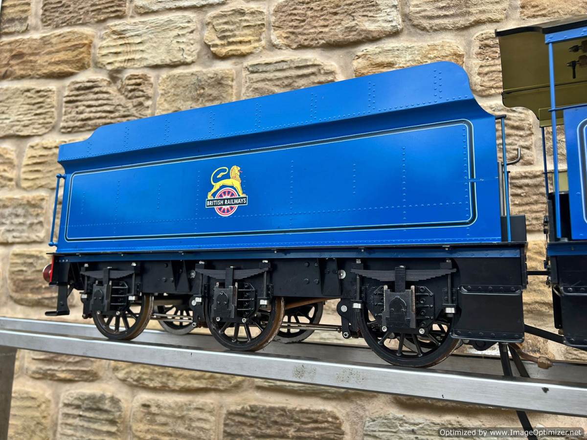 Here we have a 5" gauge GWR King, presented as 'King Edward II' in BR Blue livery. This is a brand new, full 4 cylinder model having only been steamed on a couple of test occasions. It's a Kingscale product, so the boiler is a nicely professionally made silver soldered copper one that comes with a fresh hydraulic shell test as well as a fresh steam test so all's well there.