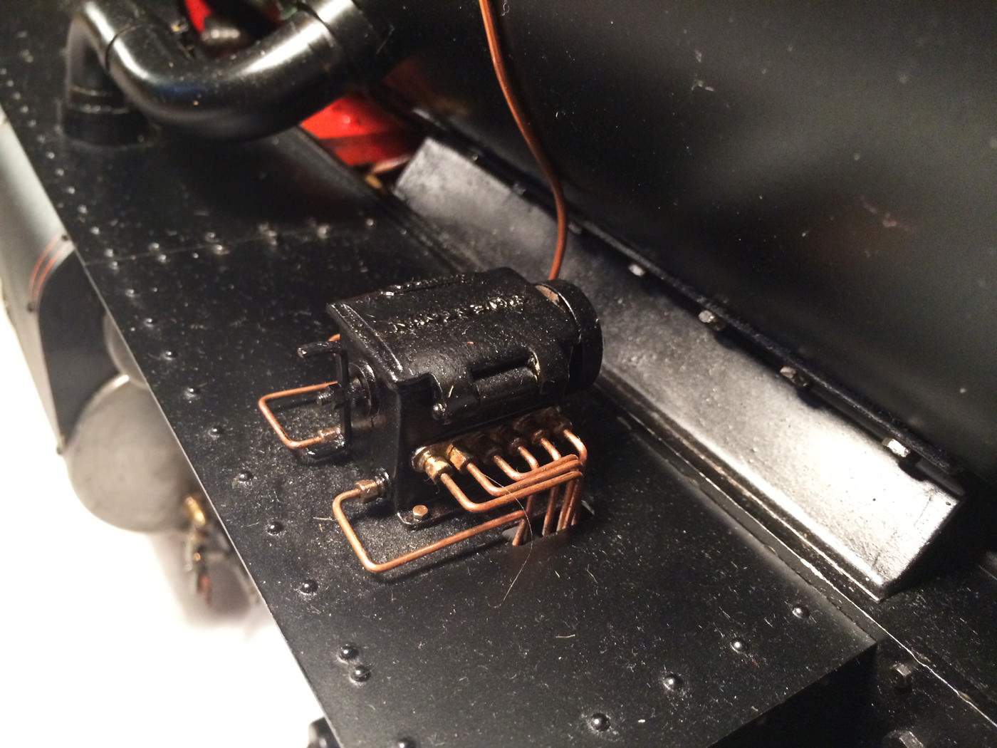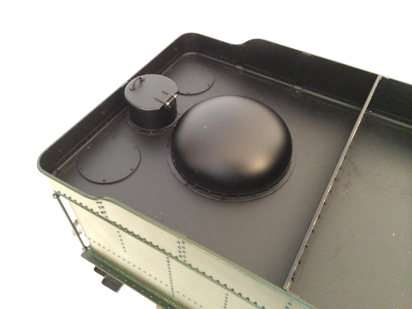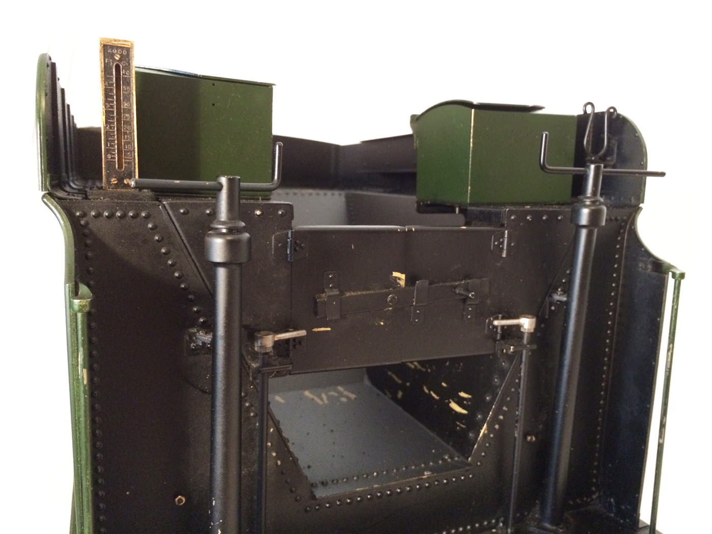 In brief, she is a full 4 cylinder, extremely crisply built engine, originally started a good many years ago to the Perrier drawings. The boiler (according to the cert) is by Kieth Wilson, but the loco was only completed as we see it now around three years ago, and has not done a huge amount of running since then. All the usual things you'd expect on a loco of this quality are there. twin injectors, tender hand pump, mechanical lubricator, footplate operated drain cocks etc.