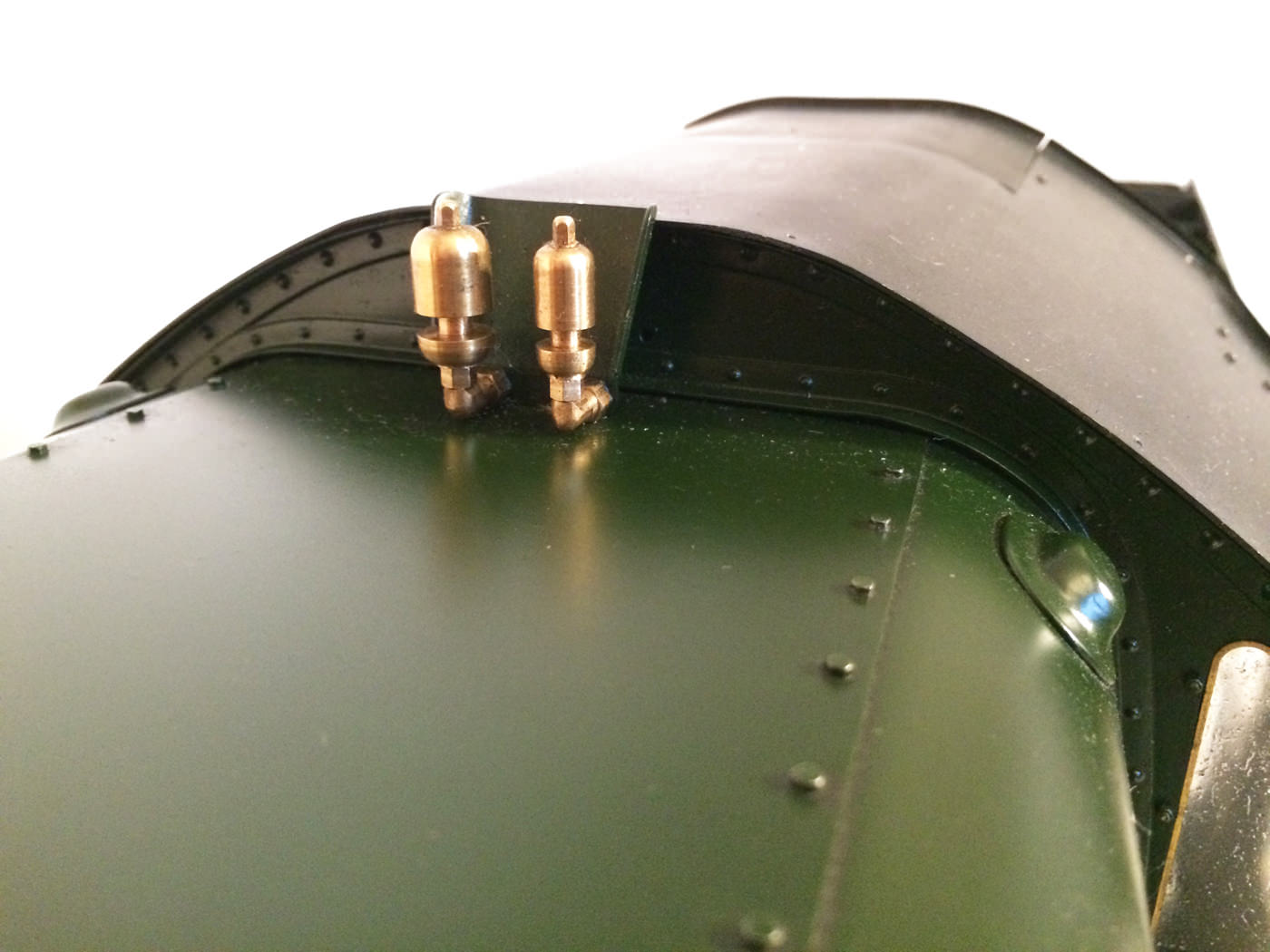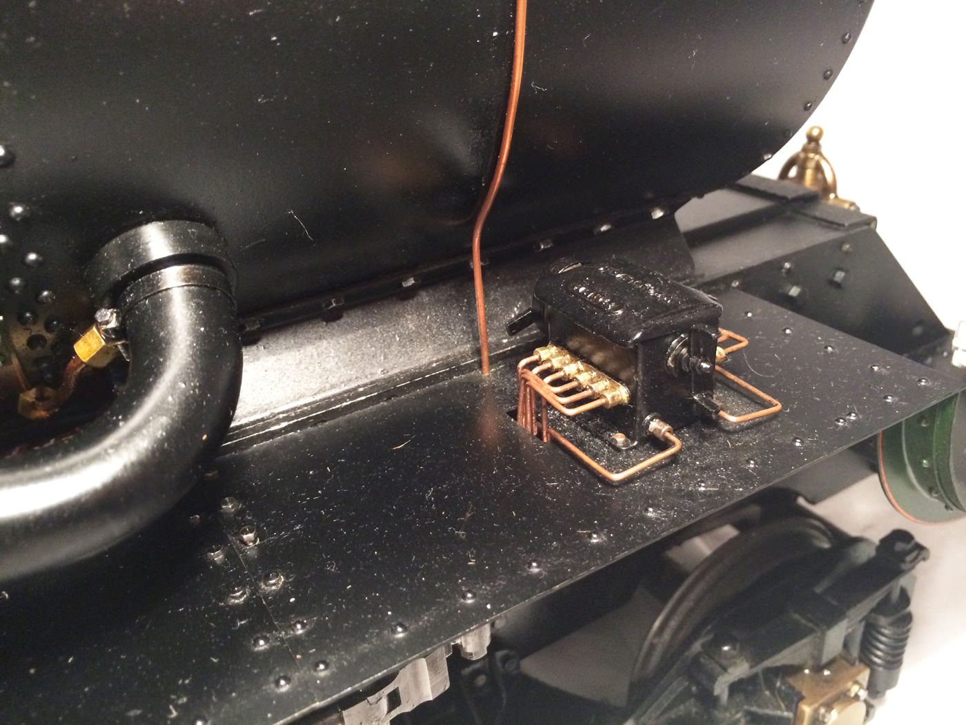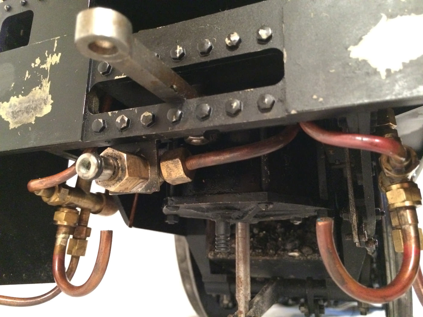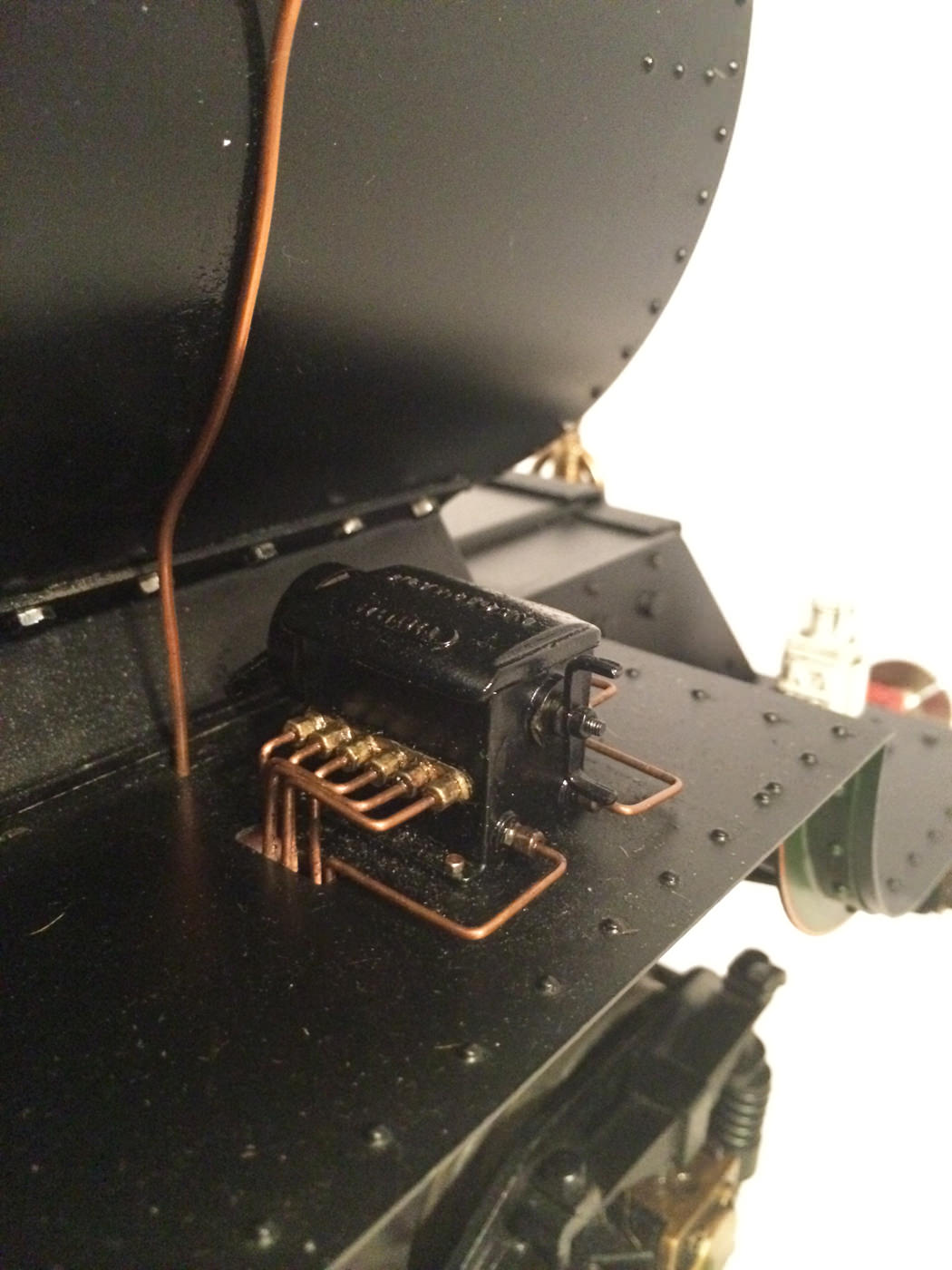 In brief, she is a full 4 cylinder, extremely crisply built engine, originally started a good many years ago to the Perrier drawings. The boiler (according to the cert) is by Kieth Wilson, but the loco was only completed as we see it now around three years ago, and has not done a huge amount of running since then. All the usual things you'd expect on a loco of this quality are there. twin injectors, tender hand pump, mechanical lubricator, footplate operated drain cocks etc.