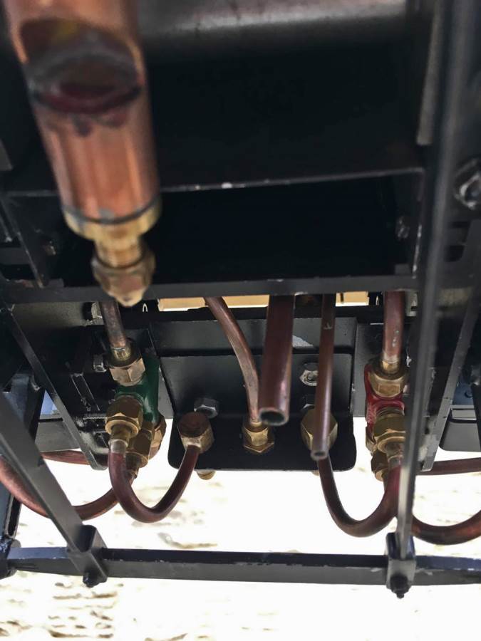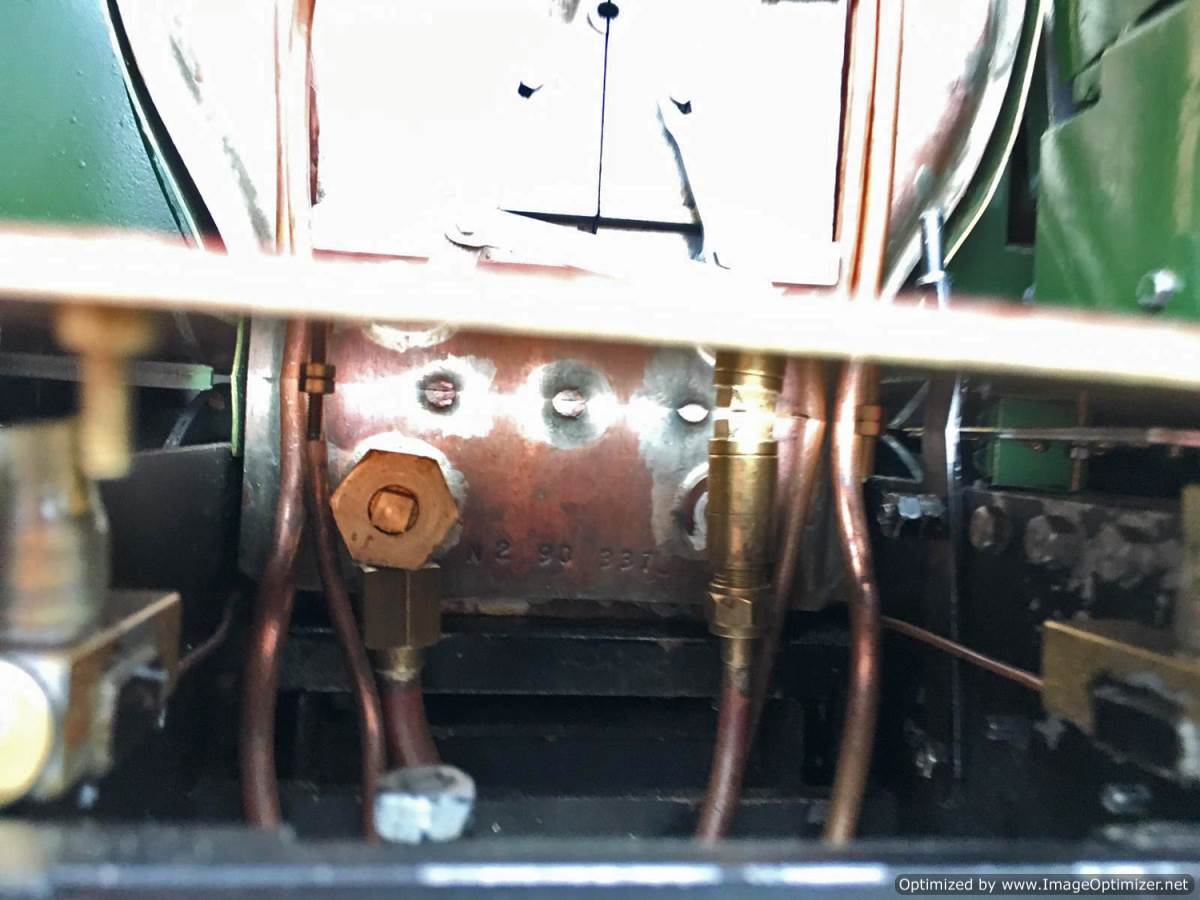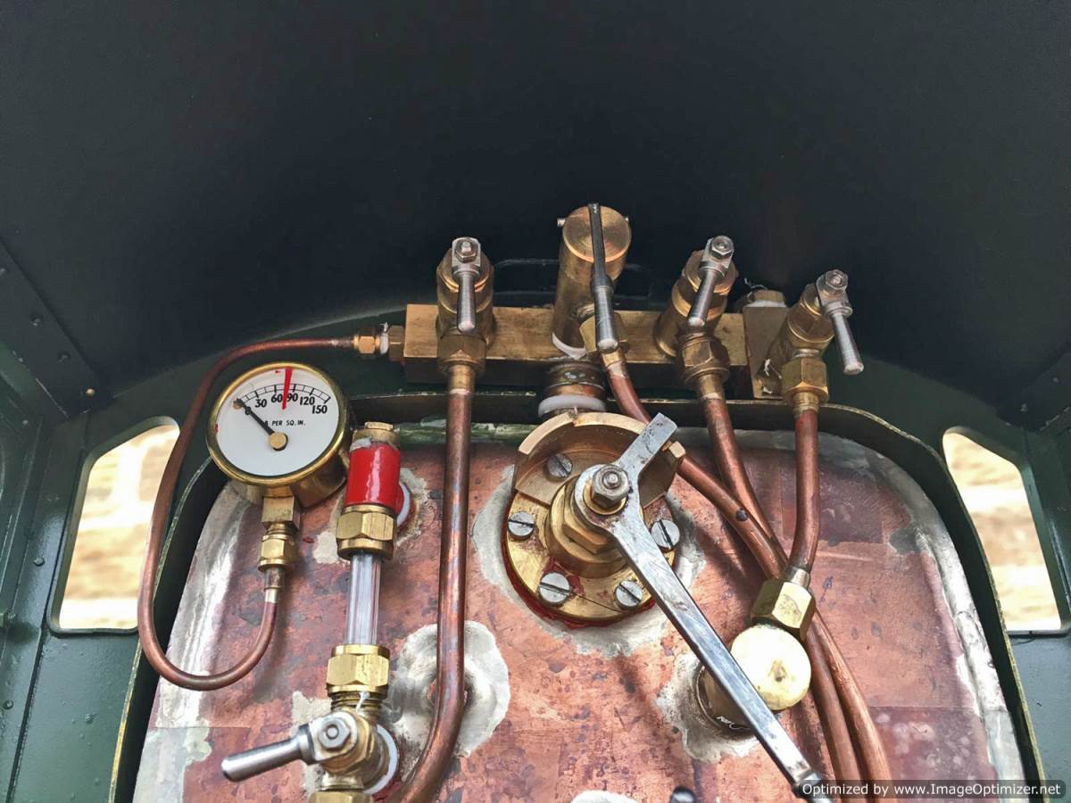 The boiler is brand new of course, silver soldered copper, and beautifully made. Water is fed from a pair of injectors as well as a crosshead pump and footplate mounted bypass valve,.... and of course there's also the hand pump in the tender.
