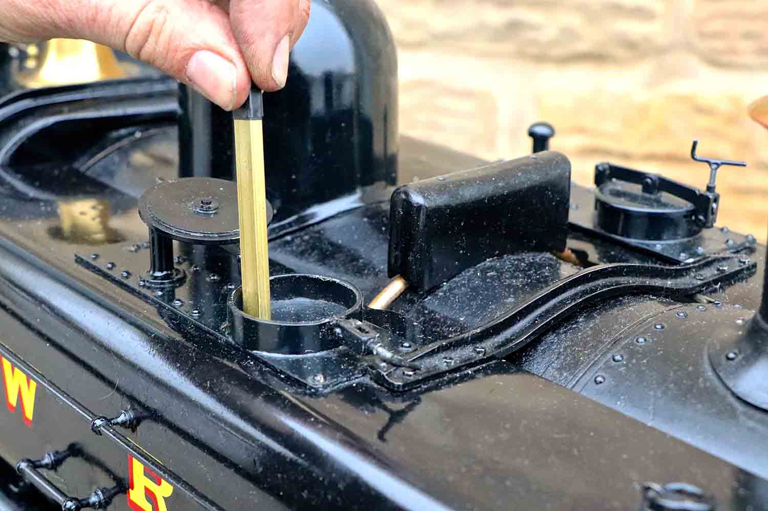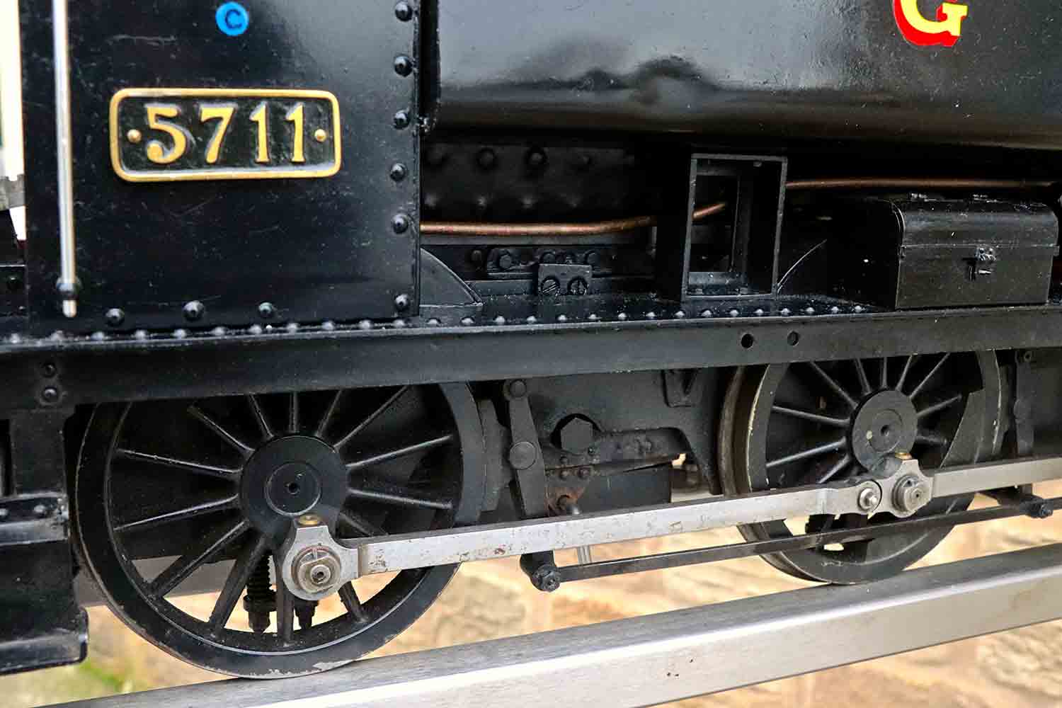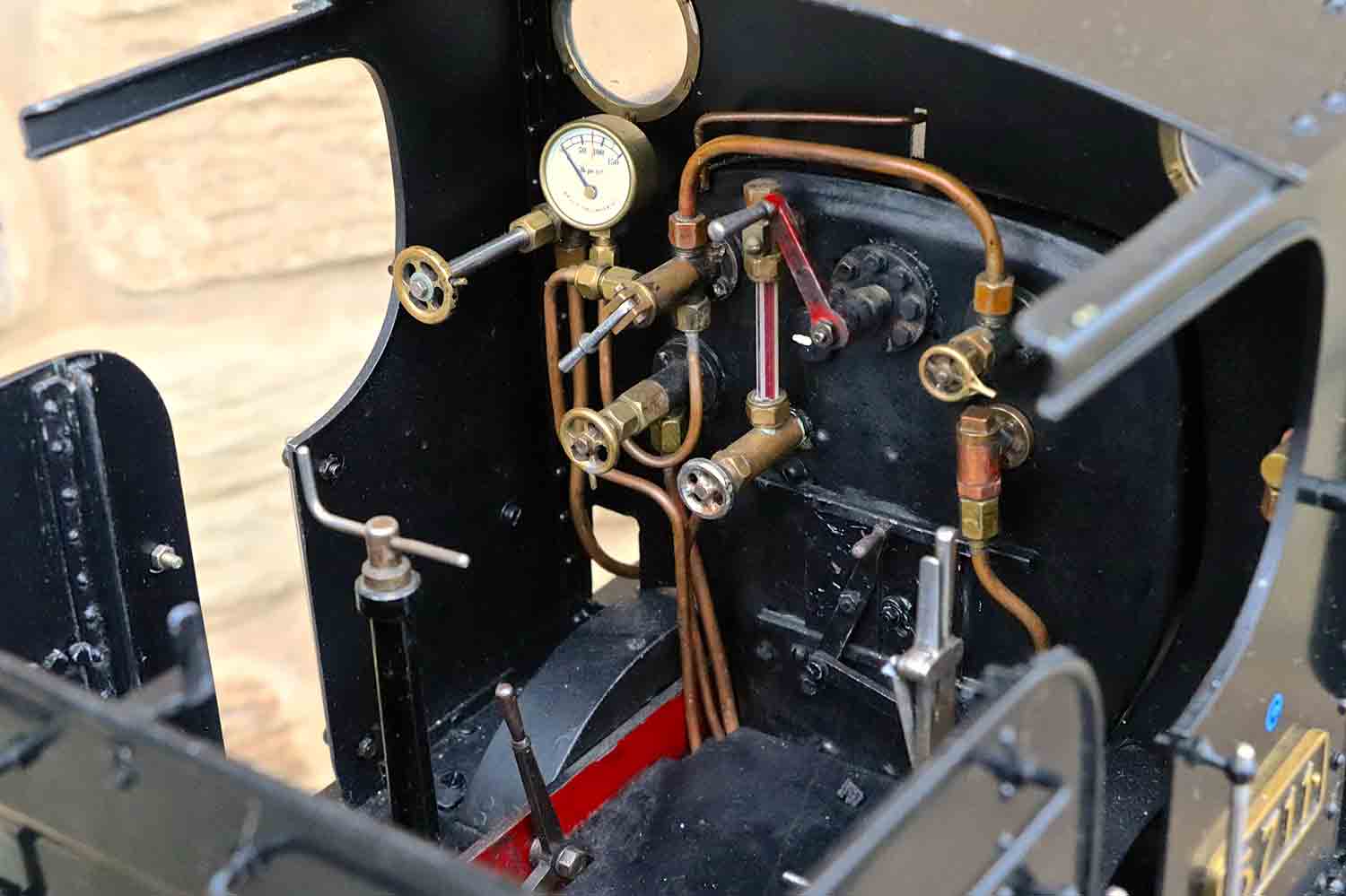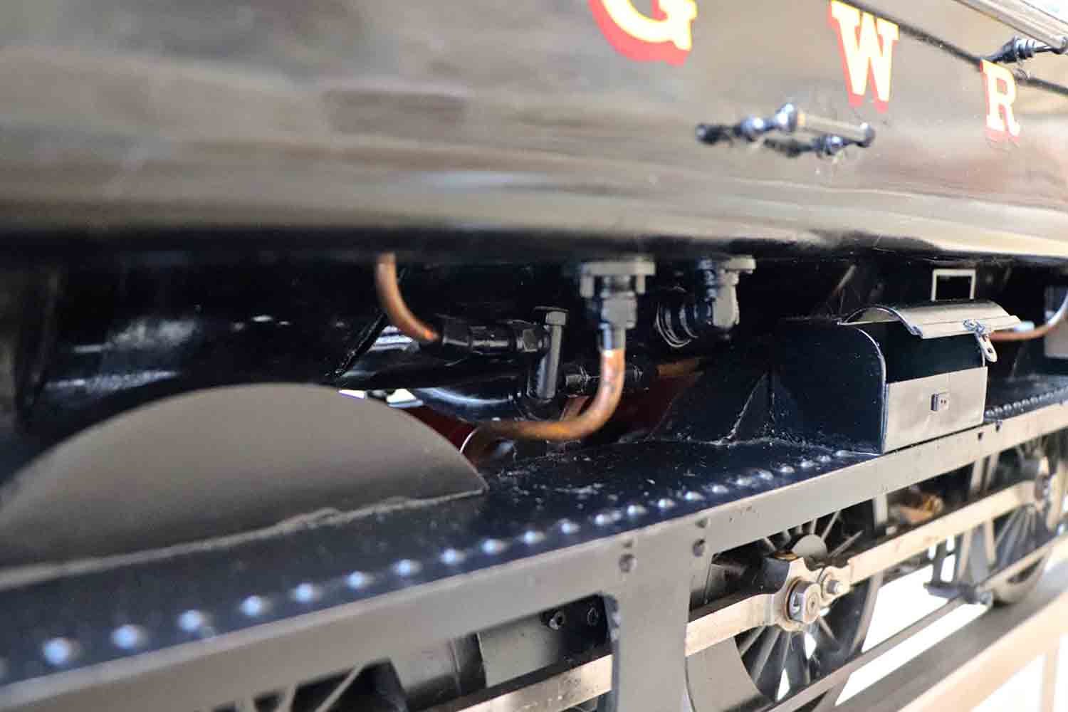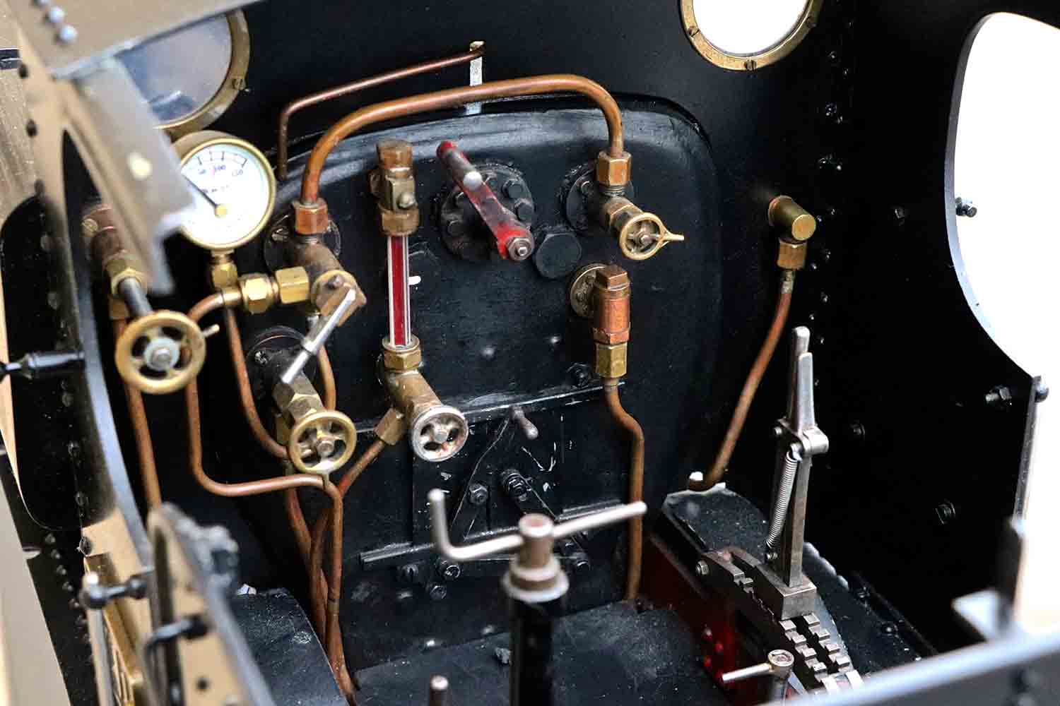 The silver soldered copper boiler is nicely made and fully certificated ready to play. There is an injector fitted, as well as an axle pump and footplate mounted bypass and of course the hand pump in the pannier tank. Lubrication is mechanical and hidden under the front running board.