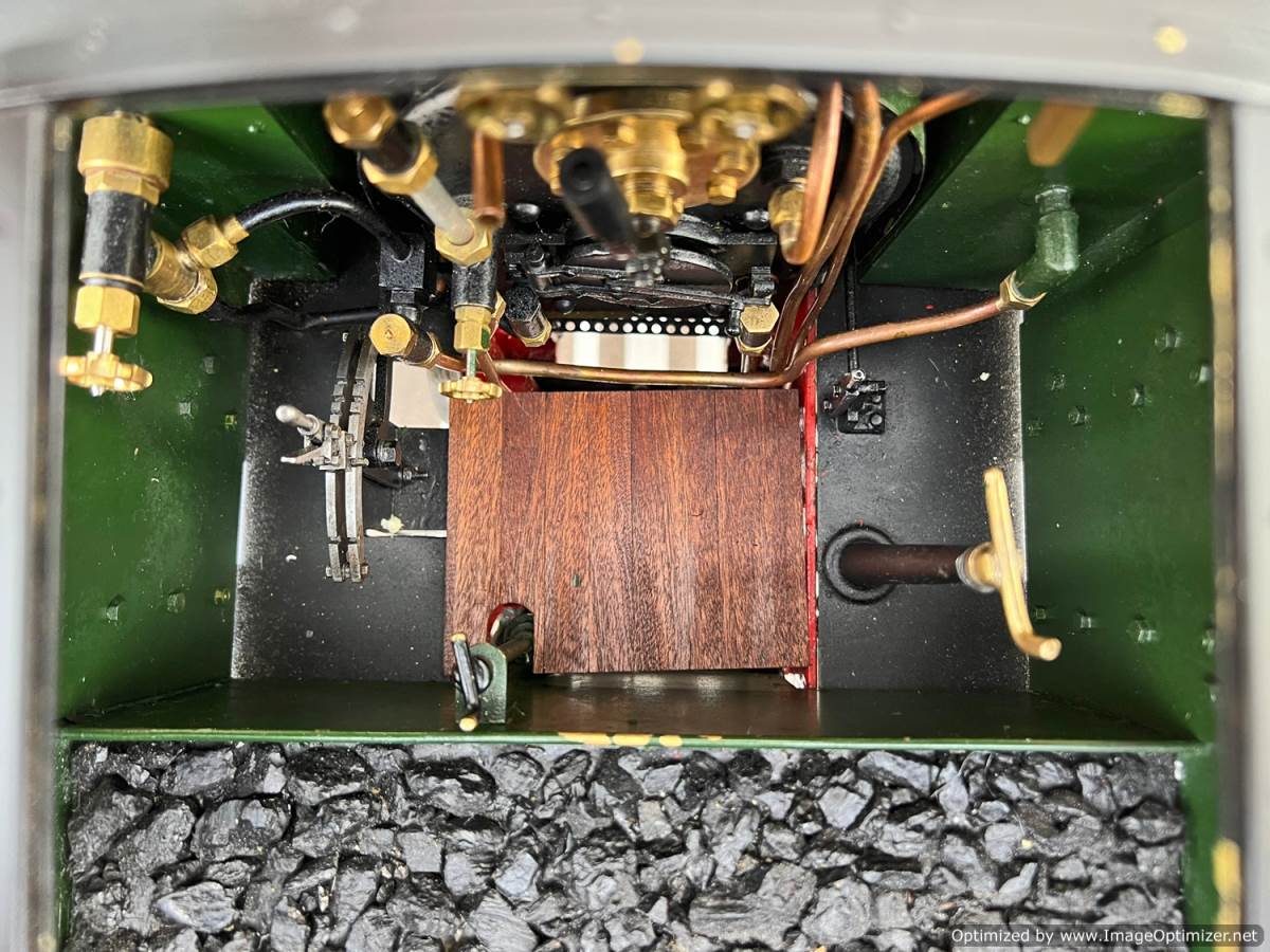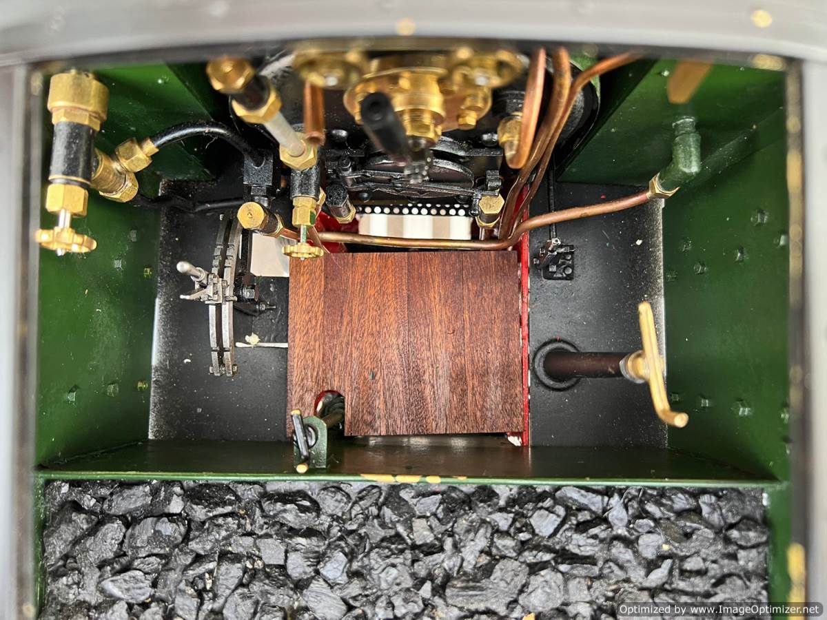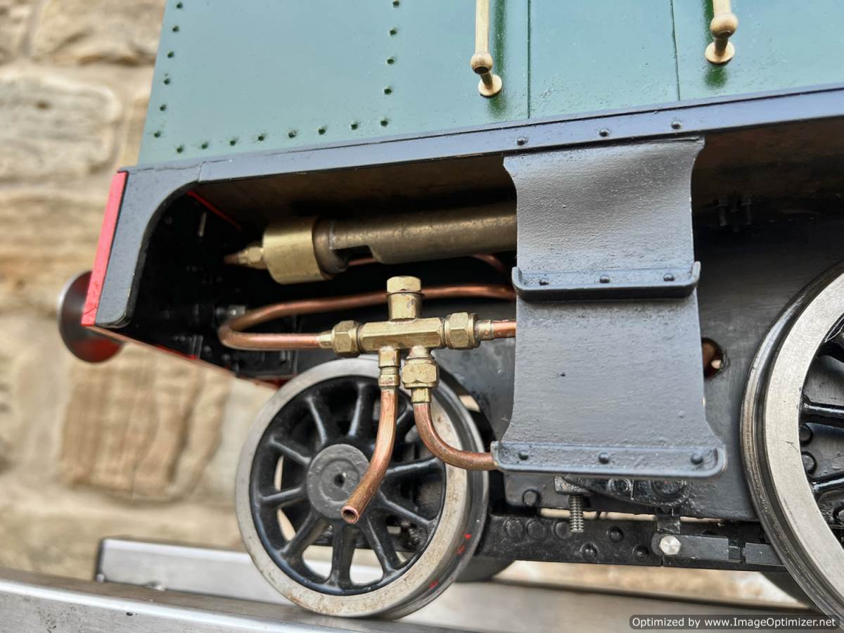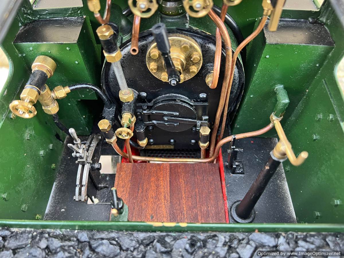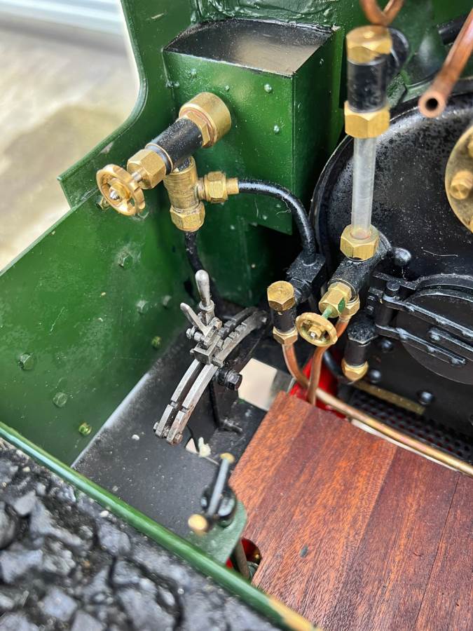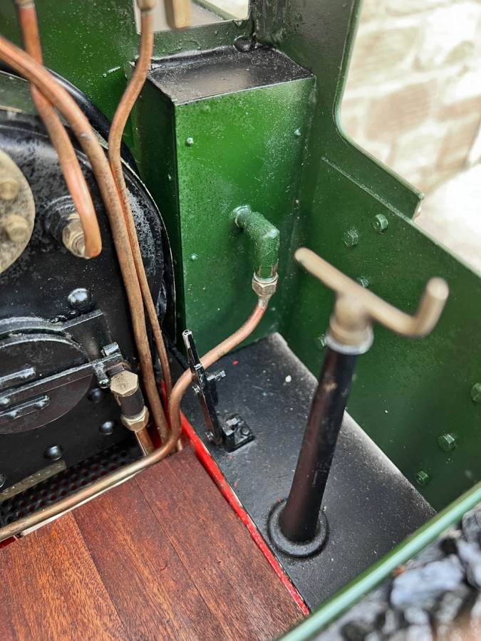 The boiler is silver soldered copper as usual and was a brand new un-steamed boiler as of 2020 when we sold it to Keith for this rebuild, and it's still only had a couple of test steaming fires in it to make sure all is well. Lubrication is mechanical and fitted under the front running boards and water is fed by an injector, a mechanical axle pump with footplate mounted bypass valve as well as a hand pump fitted into the tank.