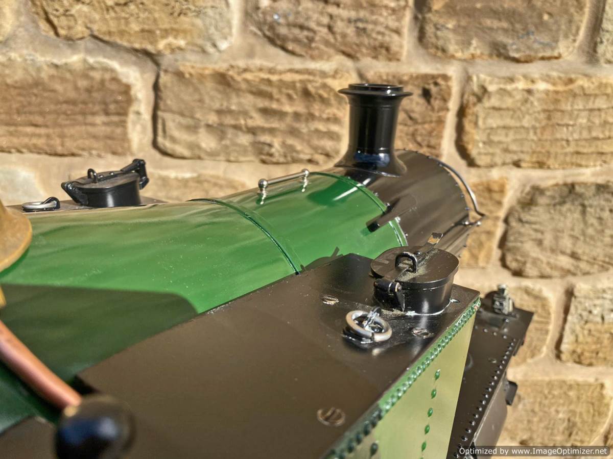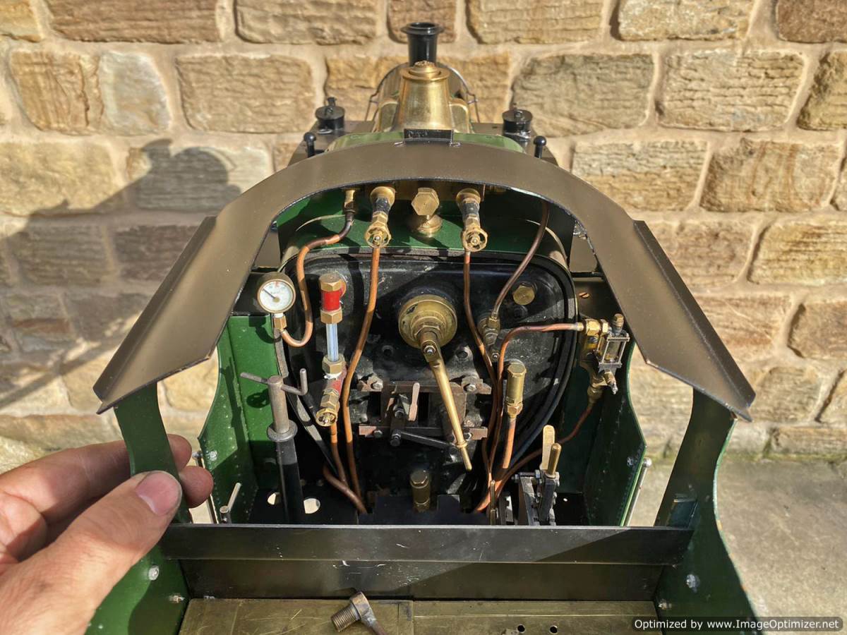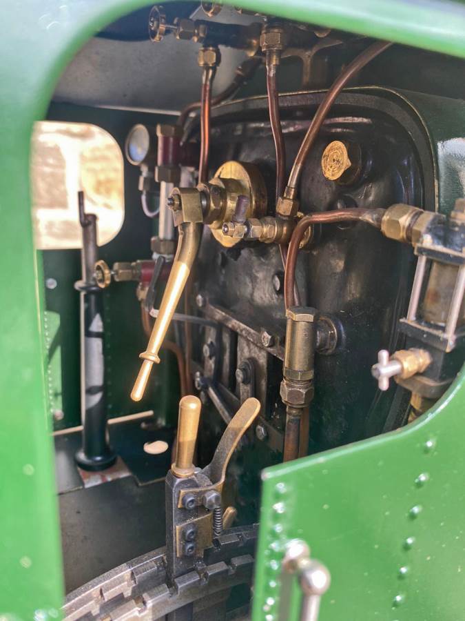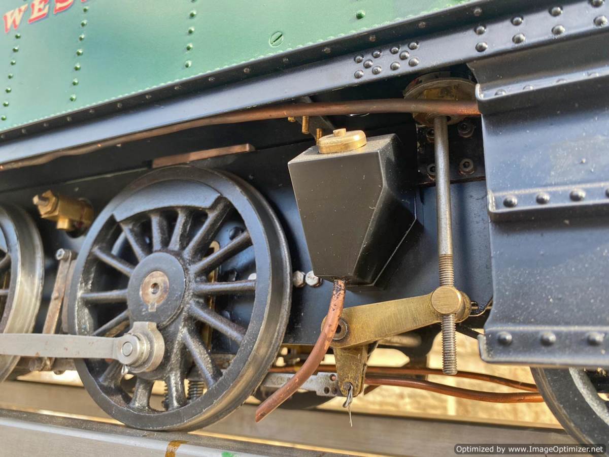 There is an injector, a hand pump in the tank and a crosshead water pump in the usual prototypical GWR location, with footplate mounted bypass valve. Draincocks are footplate operated, and lubrication on this one is via a large displacement reservoir under the footplate floor and regulateable sight feed glass in the cab.