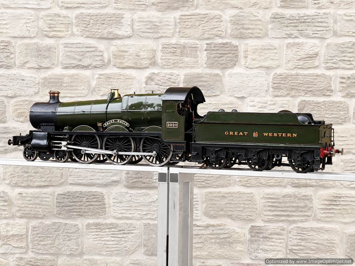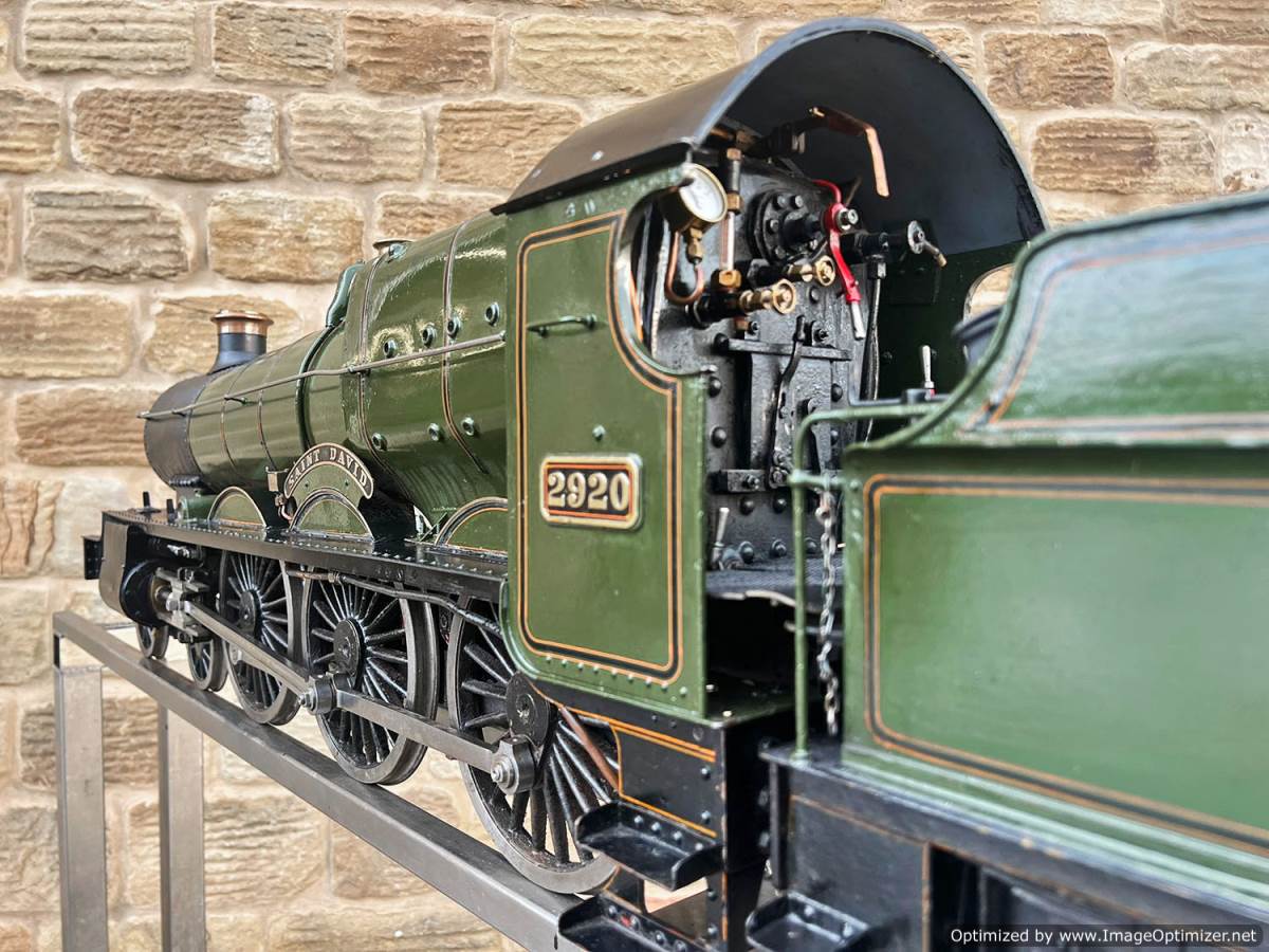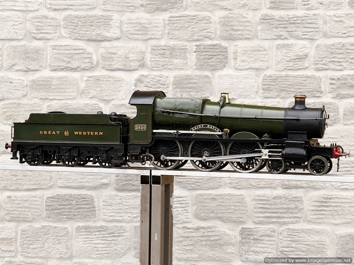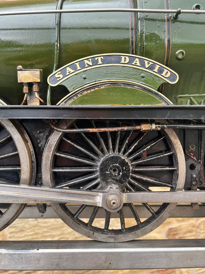Here we have a 5" gauge GWR Saint, number 29xx 'Saint David'. The locomotive was a consistent performer for it's builder who ran the loco regularly until sadly passing away. Cosmetically the firebox cladding is a little over size and clumsy, and engine bears the bumps and scuffs of use, but it’s been through our workshop and the running gear has been refurbished so we’re confident it runs well. We took the opportunity to paint the inside of the frames as well,.... so ignore the fact that in the pre-workshop photographs some of the injector plumbing was removed removed, that has all obviously been sorted now here in the works.