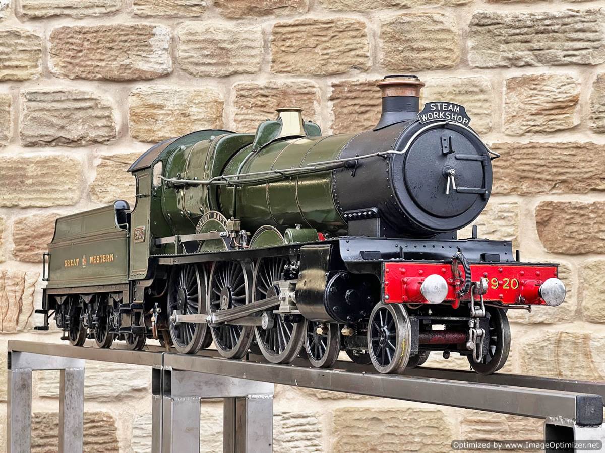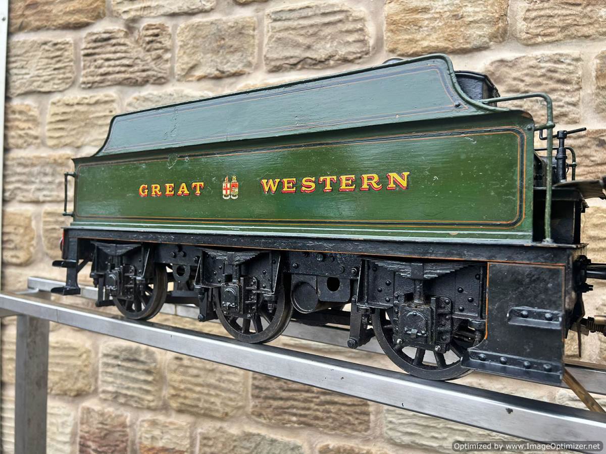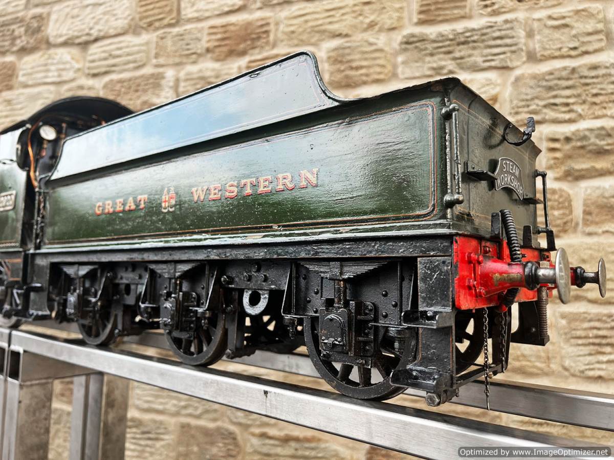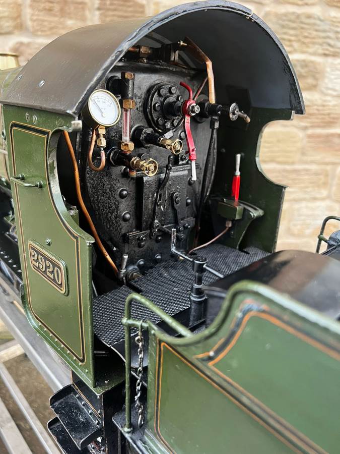 Here we have a 5" gauge GWR Saint, number 29xx 'Saint David'. The locomotive was a consistent performer for it's builder who ran the loco regularly until sadly passing away. Cosmetically the firebox cladding is a little over size and clumsy, and engine bears the bumps and scuffs of use, but it’s been through our workshop and the running gear has been refurbished so we’re confident it runs well. We took the opportunity to paint the inside of the frames as well,.... so ignore the fact that in the pre-workshop photographs some of the injector plumbing was removed removed, that has all obviously been sorted now here in the works.