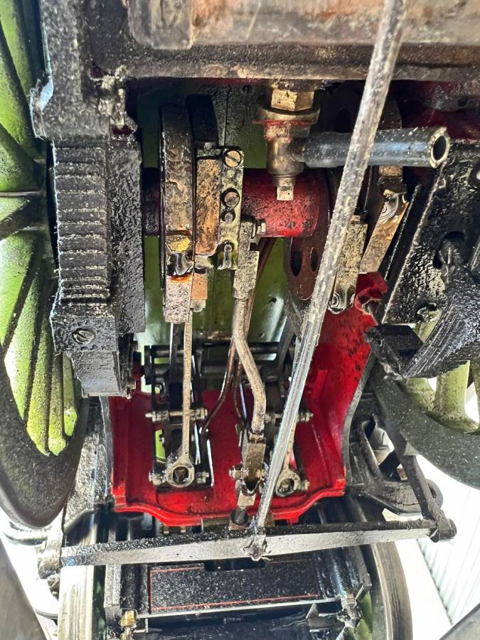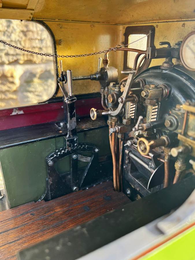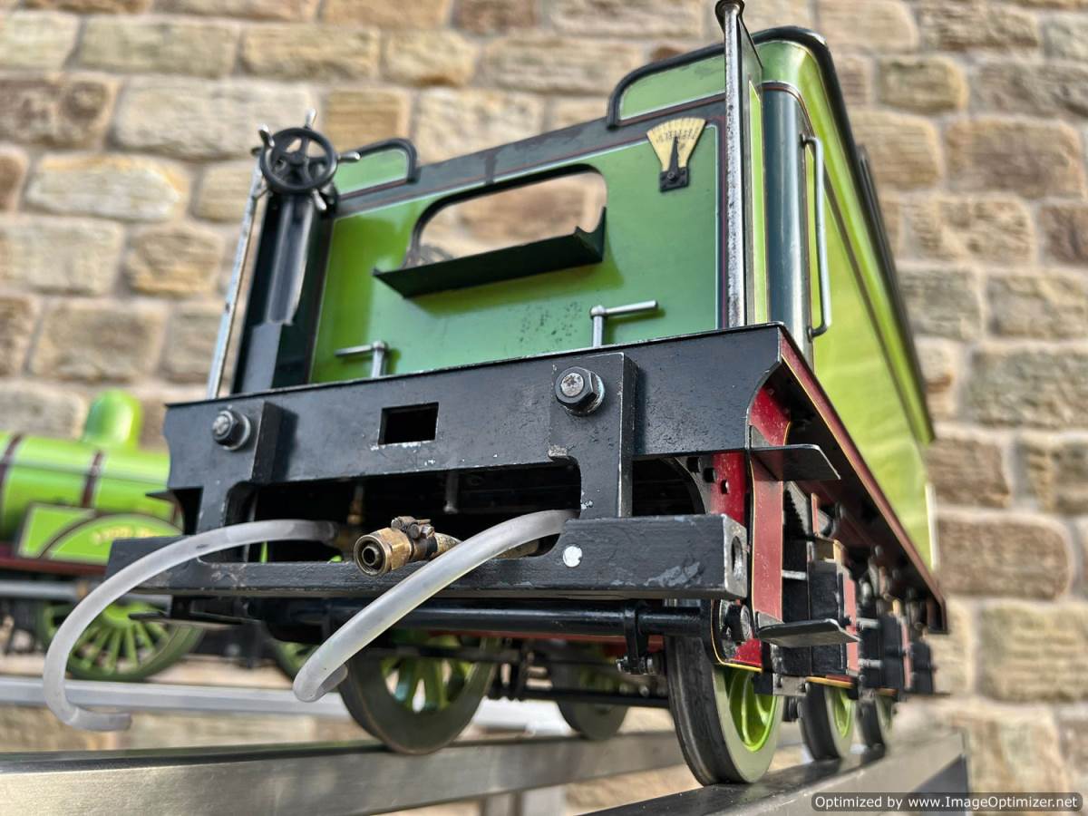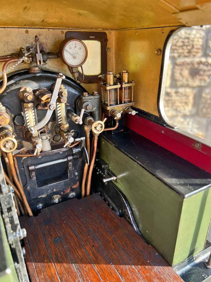 The boiler is silver soldered copper and comes with fresh Hydraulic and steam tests, and the loco is fitted with a pair of injectors and a hand pump in the tender. Lubrication is mechanical and under the front running boards. The steam brake works nicely and all in all it's a lovely, capable and beautifully controllable loco to drive.