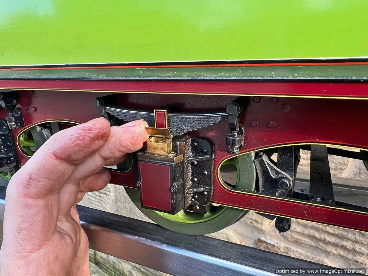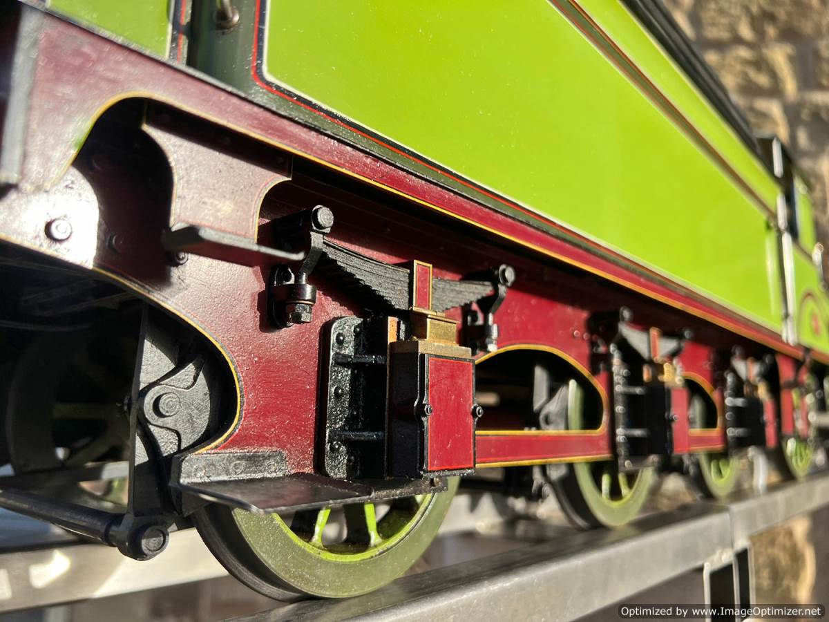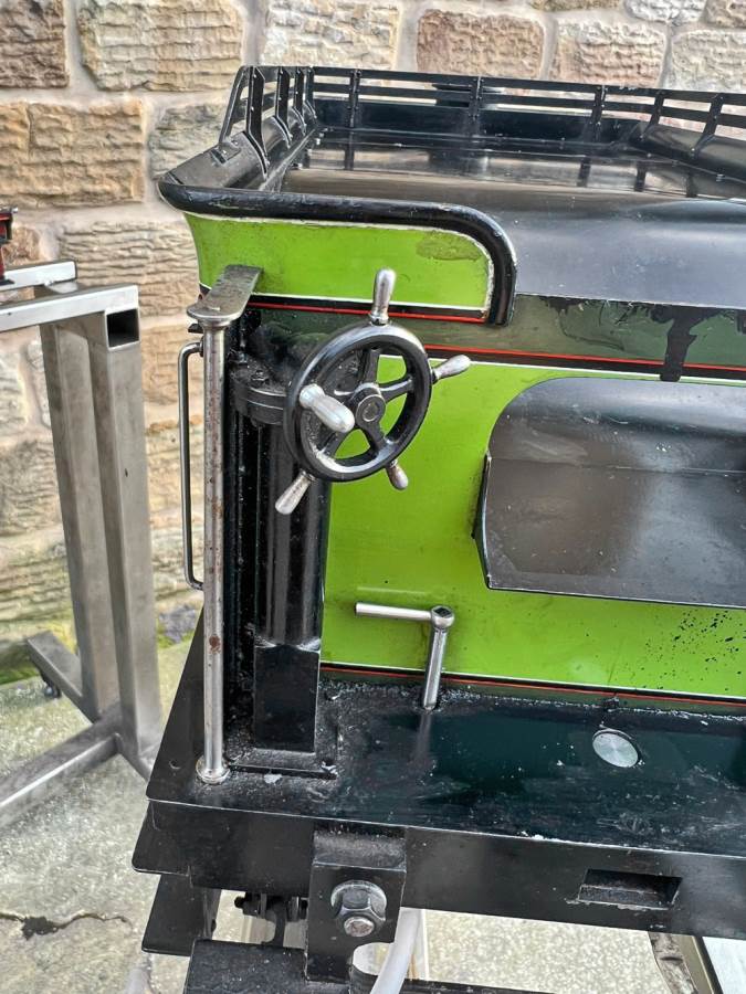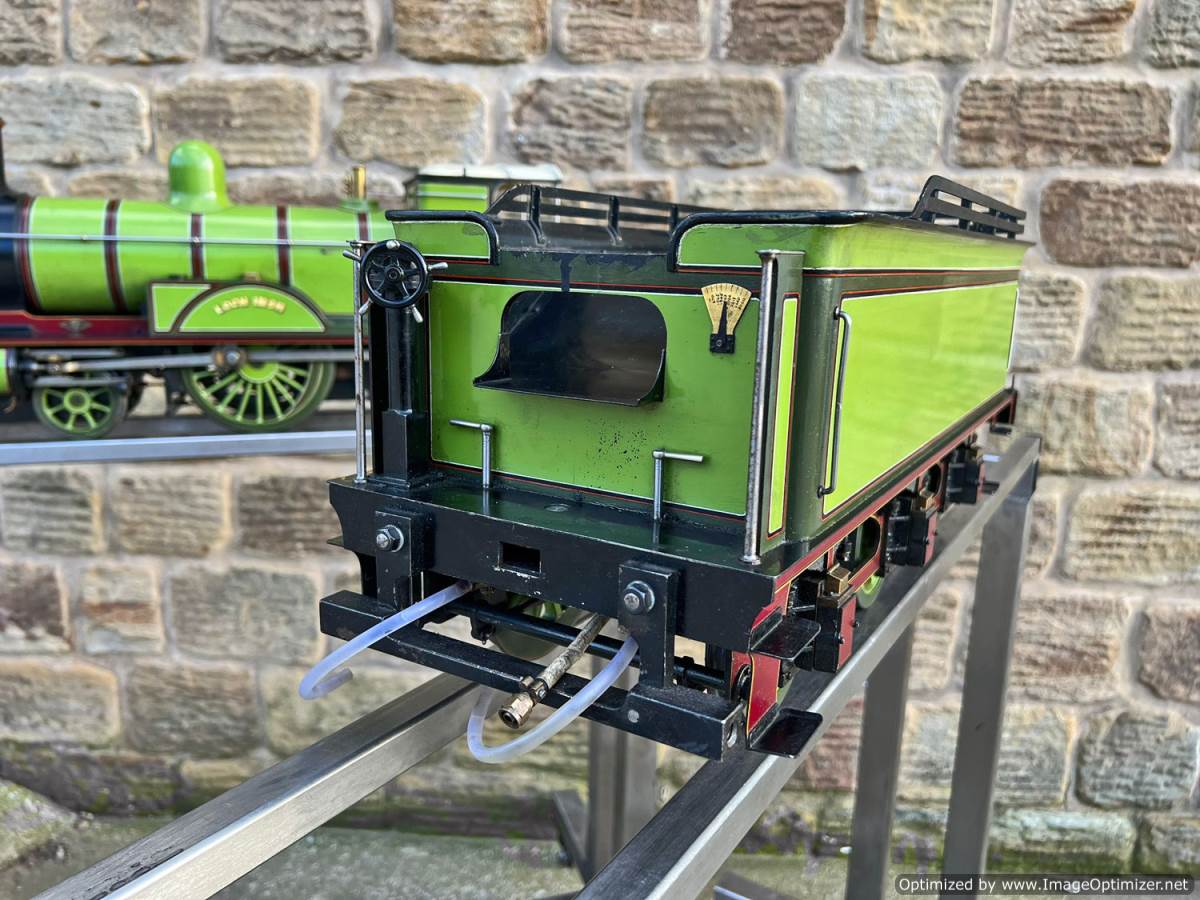 The boiler is silver soldered copper and comes with fresh Hydraulic and steam tests, and the loco is fitted with a pair of injectors and a hand pump in the tender. Lubrication is mechanical and under the front running boards. The steam brake works nicely and all in all it's a lovely, capable and beautifully controllable loco to drive.
