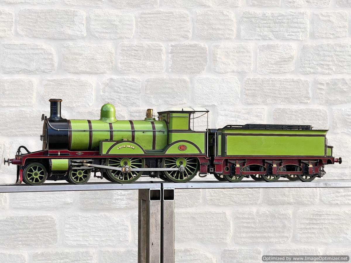 Here we have a particularly lovely and rare model. A 5" gauge Highland Railway Loch Class, 'Loch Insch'. Finely built by the late Tony Allcock, the designer of the well respected 5" LMS Jubilee design. Tony built this as one of a pair to his own design drawn from the works drawings, and the pair pre-date the later and simpler published design by Nevil Evans. Tony kept one of the models and this one was sold to be run. It's been in our personal collection here at SW for many years, and we can confirm it's a superb and capable machine.