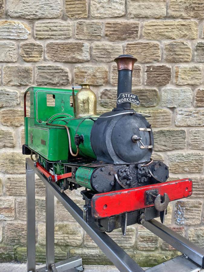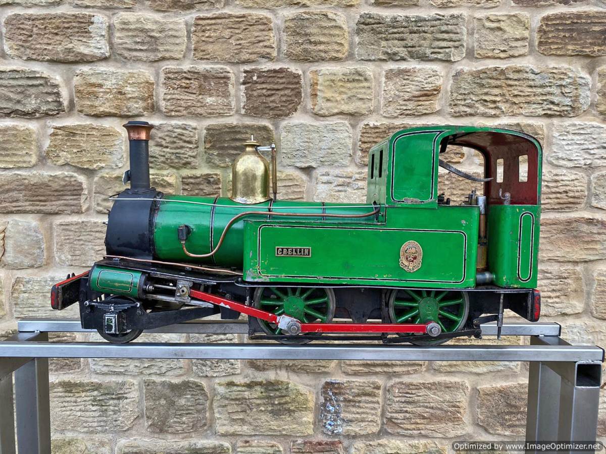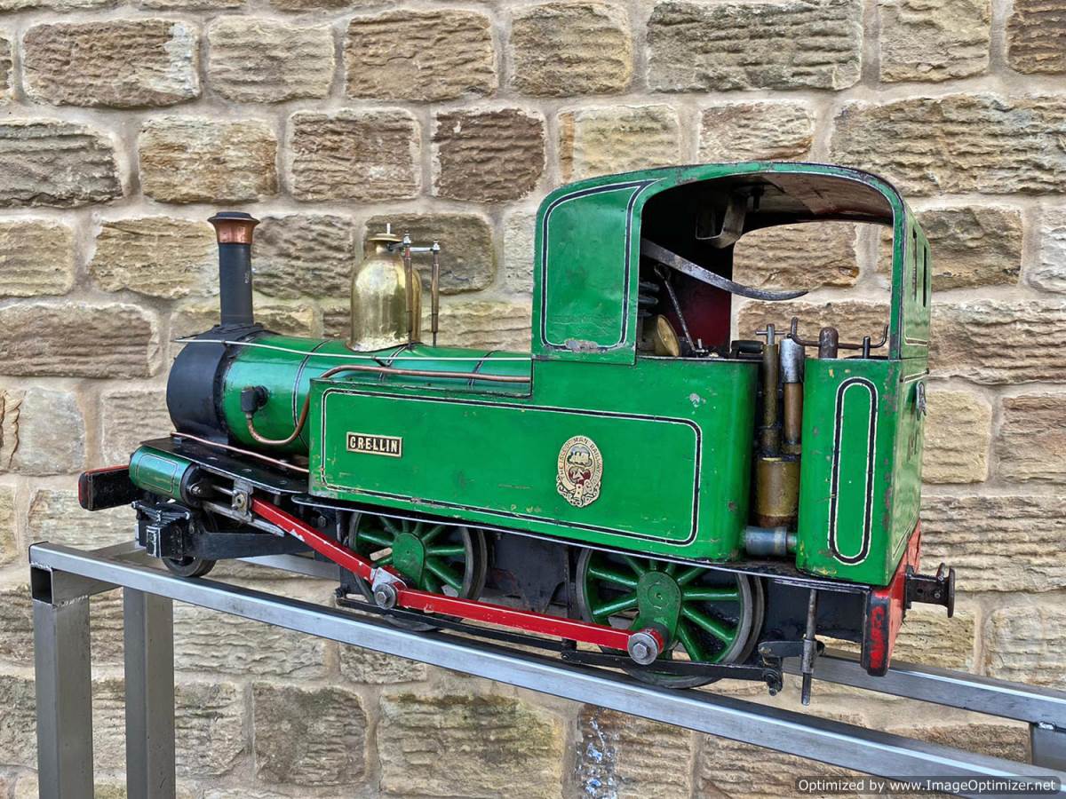 Here we have a bit of a project locomotive in the form of a 5" gauge Isle of Man Beyer Peacock 2-4-0 tank 'Crelin'.  A strange beast this one.  So oily and mucky when she arrived with us that she's clearly been a good runner, but judging by the surface rust here n there over the paintwork she's been sitting for some time.  We've included a couple of photographs of the loco in her former glory.