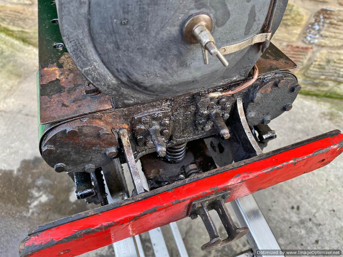 Mechanically she's pretty simply and robustly made, and it's difficult to tell if the motion work is worn, or if it was built with a bit of slop in it in the first place!  It looks like it'll run well enough, but if you don't like the odd clank it would be worth a bit of re-bushing here n there!  There is a huge lump of lead under the cab floor too, so the builder wanted the thing to grip the rails!