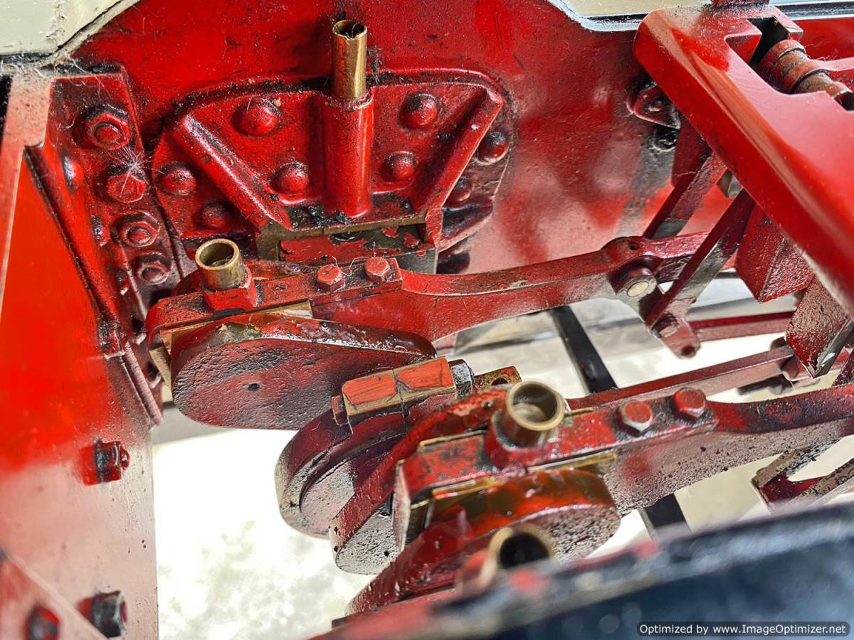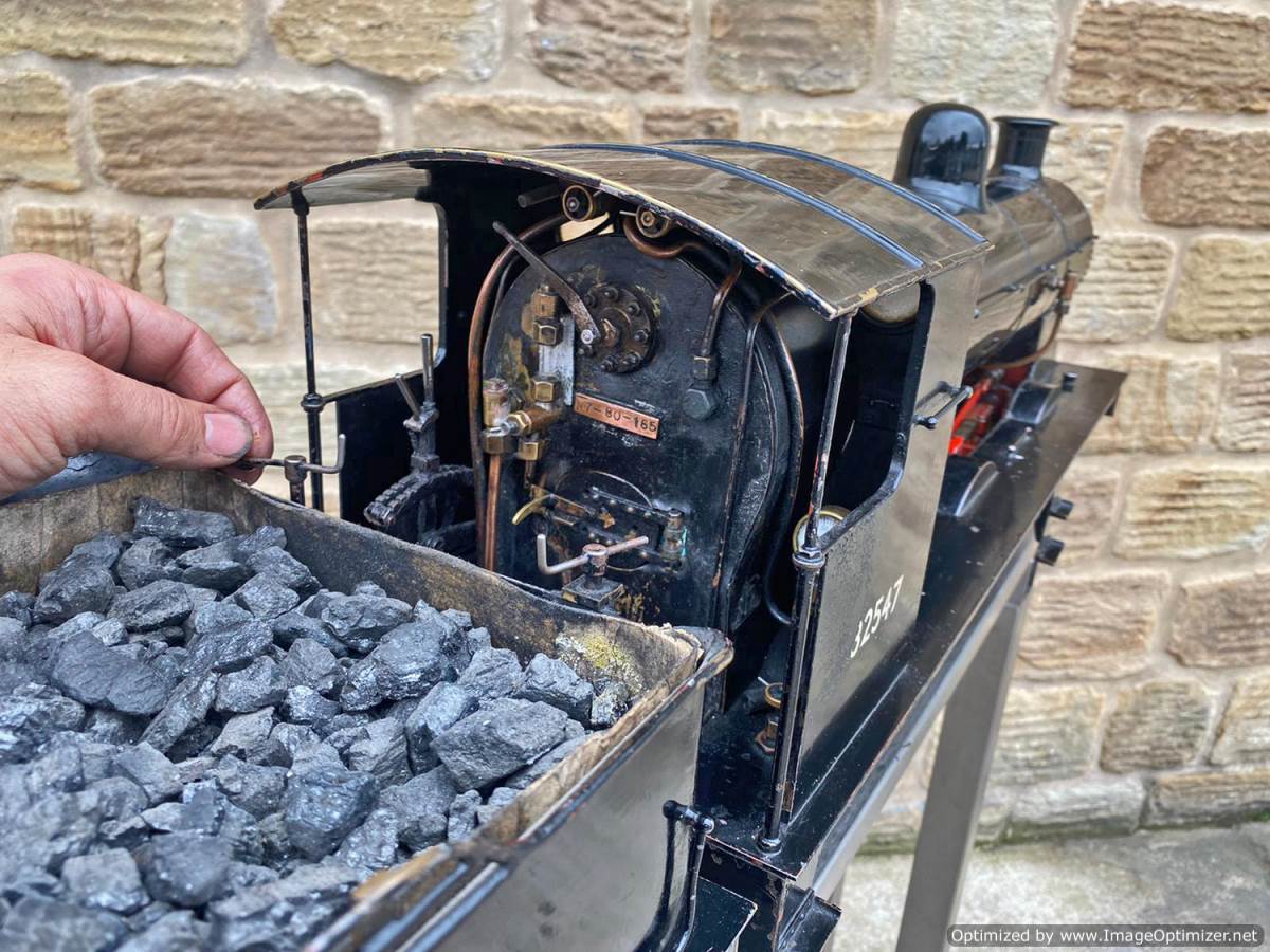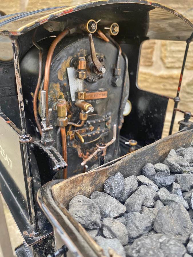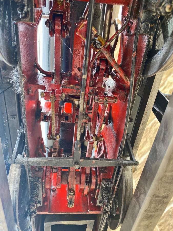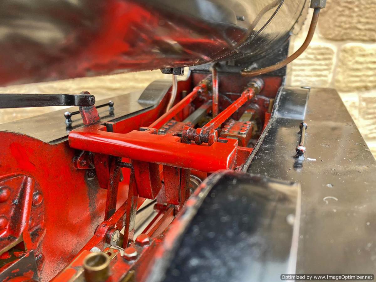 The model is most definitely in 'run' condition, and isn't going to win any exhibitions, but on a 'working engine' like this it doesn't detract too much from the model. Certainly mechanically she's in good condition. The bearings and bottom end aren't too worn and it runs very nicely. Fitted with an injector, an axle pump with footplate mounted bypass and a hand pump in the tender, and with mechanical lubrication tucked away under the front as usual. The boiler is silver soldered copper and comes freshly tested hydraulically to twice working pressure, and also fully steam tested and ready top play.