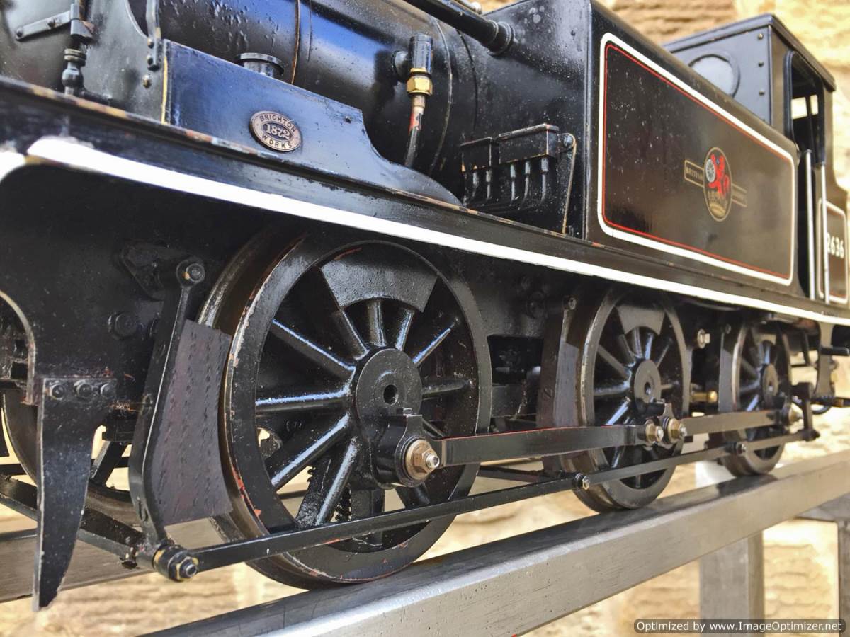 Here we have a 5" gauge LBSCR Terrier tank. Made to Martin Evans 'Boxhill' design. Although this is a cosmetically slightly tired loco, mechanically everything is still nice and tight, so she's still got plenty of life in her! Lubrication is mechanical and on the footplate so it's easy to get at without ruining the lines of the running boards. There is an injector fitted, as well as a crosshead pump between the frames and of course the hand pump inside the side tank. The little oil pots on the front of the tank are plumbed through to the axle boxes and eccentrics as well, so there has been good thought put into setting the loco up to run properly.