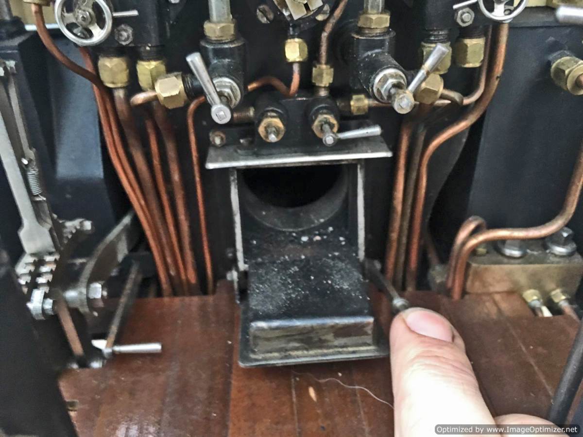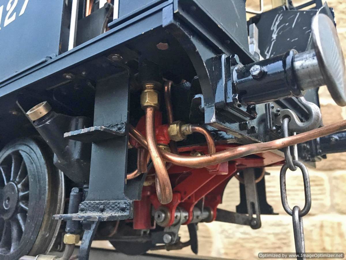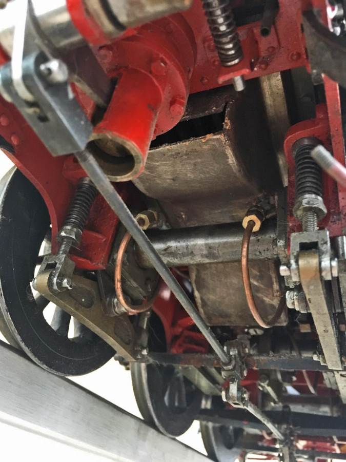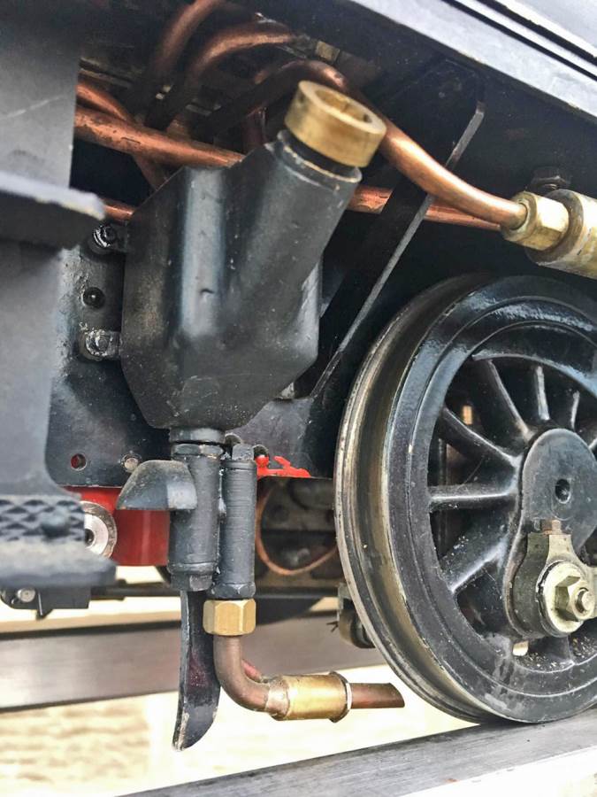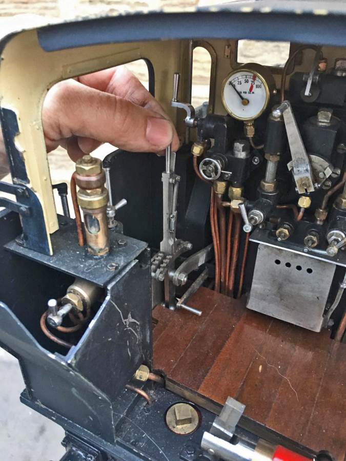 Mechanically everything is pretty tight, and although the loco has been run, it's only been fired on a couple of occasions at most as you can still see the copper & silver soldering around the front tube plate tubes.  Fitted with an injector, as well as a mechanical axle pump and footplate mounted bypass valve, and a hand pump on the footplate hidden in the bunker.  Lubrication is displacement with a sight feed again nestled in the bunker.