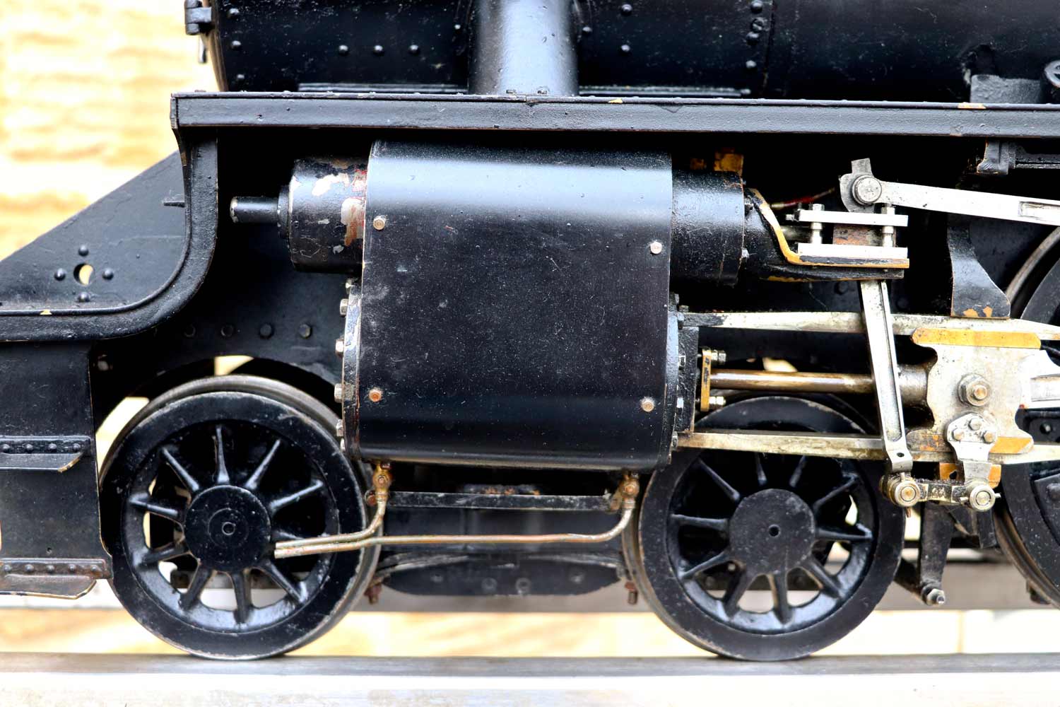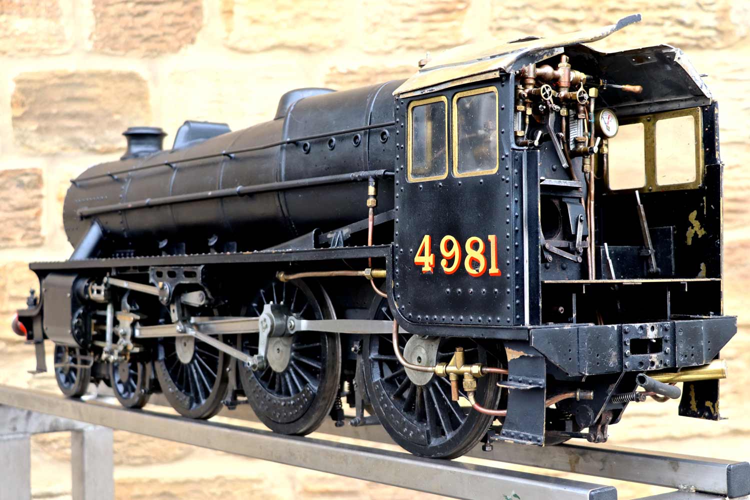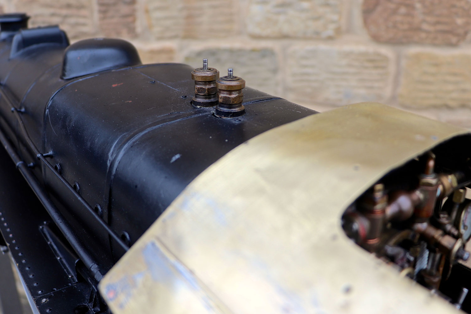 Here we have a nicely engineered 5" gauge LMS Stanier black 5. We are in the process of repairing the cab roof, which as you can see we have taken back to bare metal at the moment,...... but we are sure you'll be able to imagine what it will look like when we've sorted it! 🙂