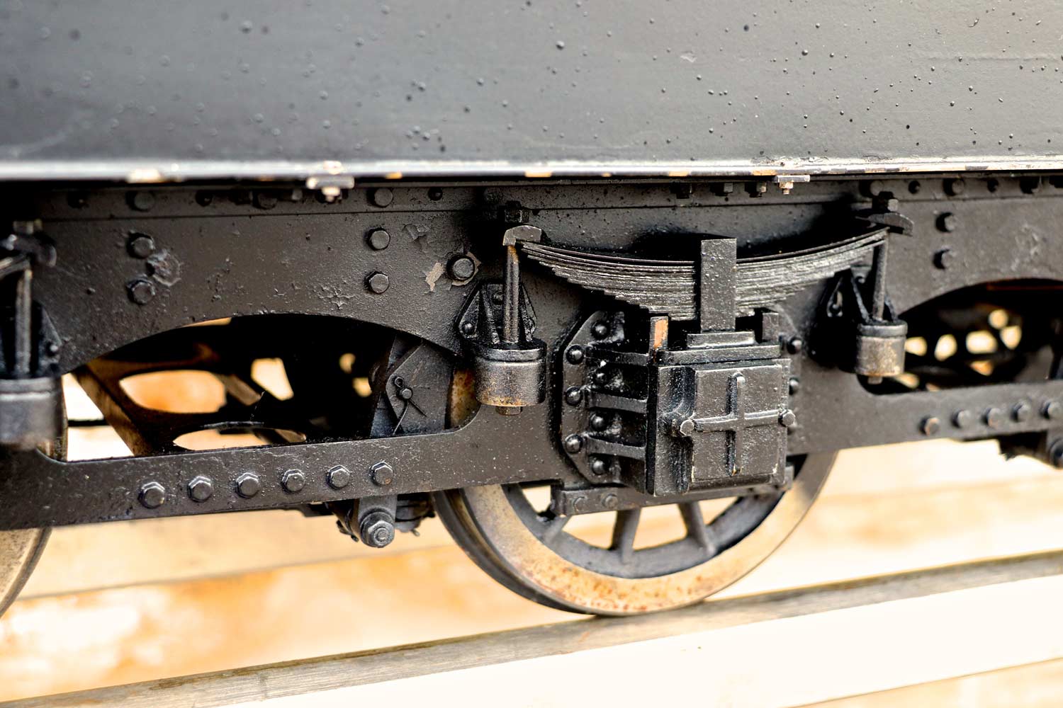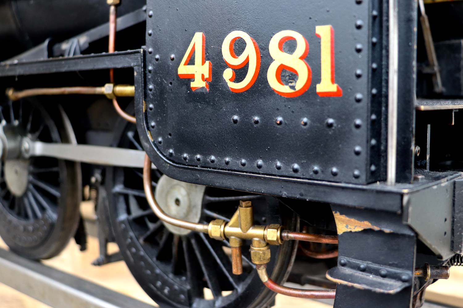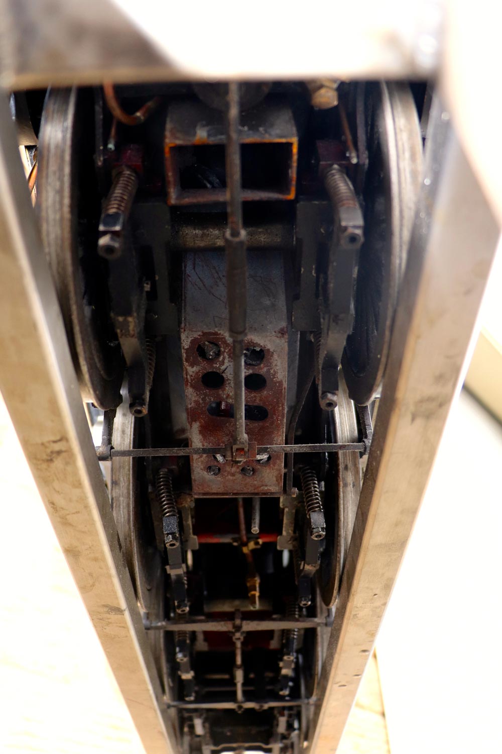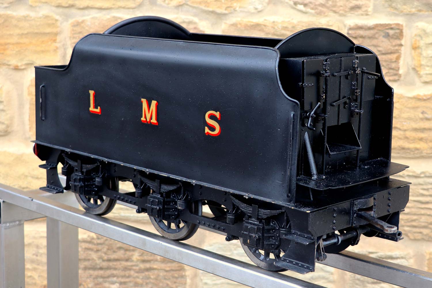 Here we have a nicely engineered 5" gauge LMS Stanier black 5. We are in the process of repairing the cab roof, which as you can see we have taken back to bare metal at the moment,...... but we are sure you'll be able to imagine what it will look like when we've sorted it! 🙂