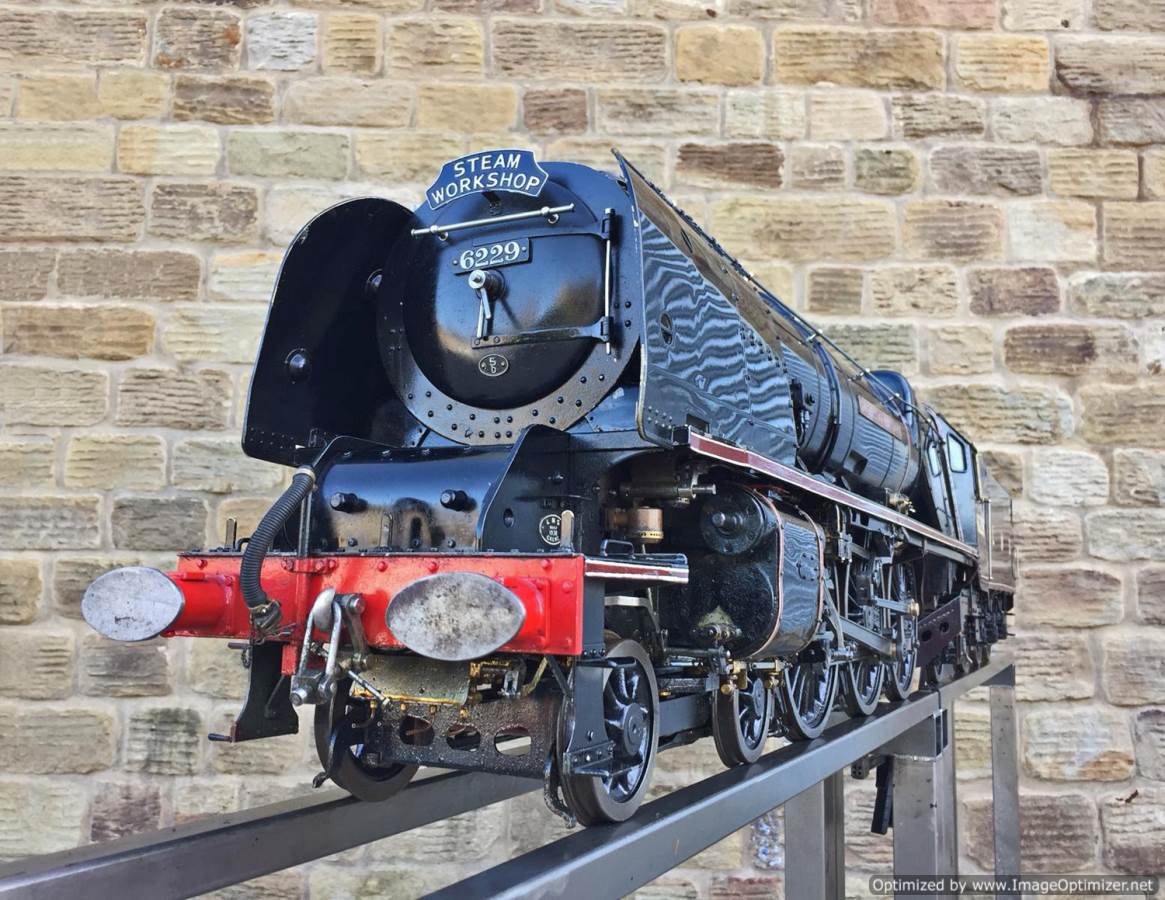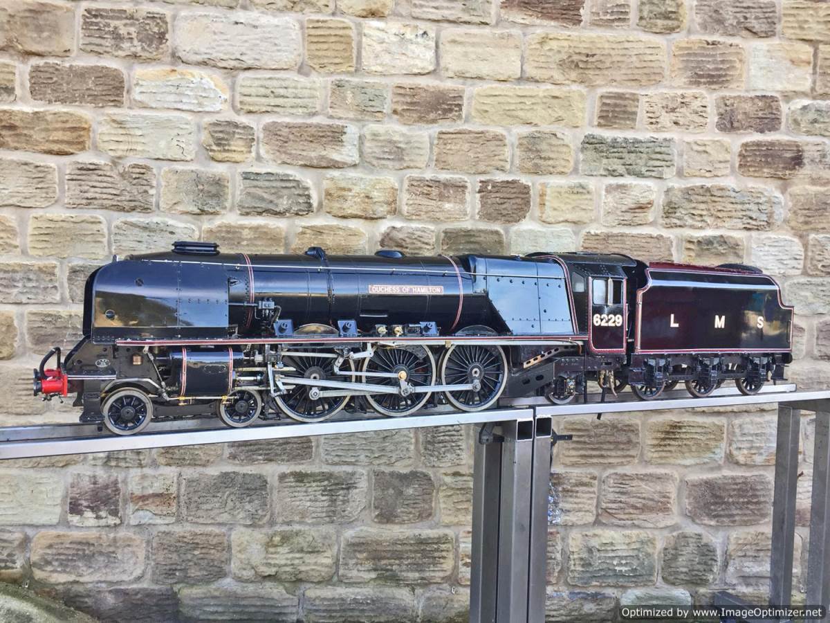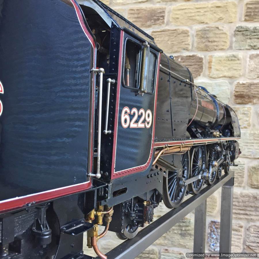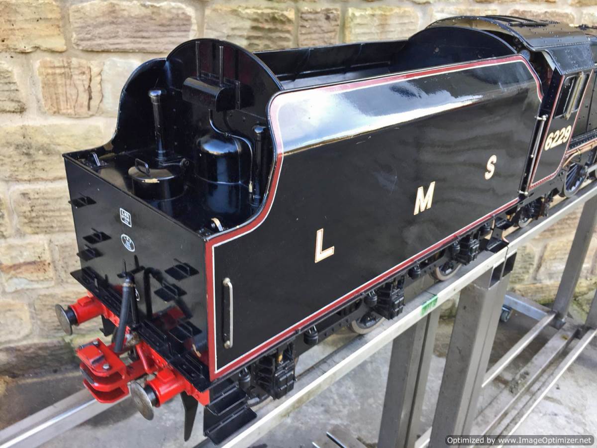 Here we have a rather impressive 5" gauge LMS Duchess, 6229 'Duchess of Hamilton. Most 5" Duchesses are seem to be painted in the more common Maroon so it's nice to see one presented in the LMS lined black. She's also a 'semi', with the slightly squashed smokebox front as built to fit inside the original streamlined casing. The casing was removed post war in 1947 and Hamilton was painted into this livery,...... but only for a year, as in 1948 the railways were nationalised and the loco was 'tweaked' into BR black.