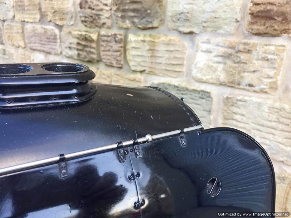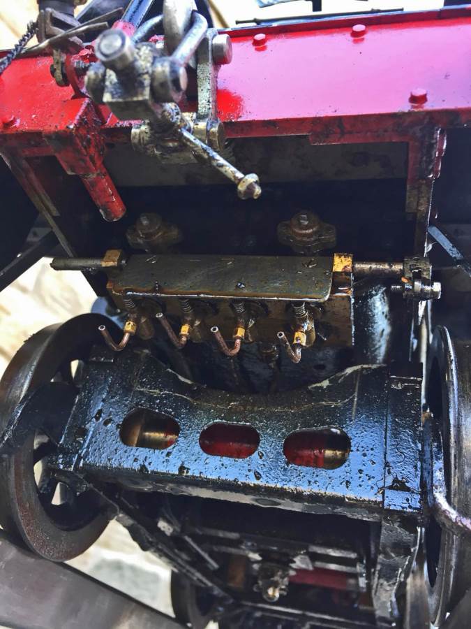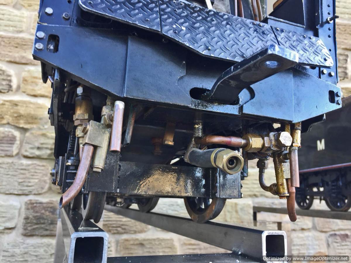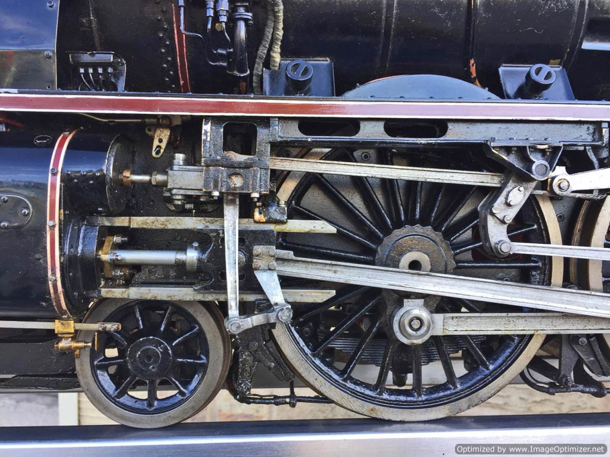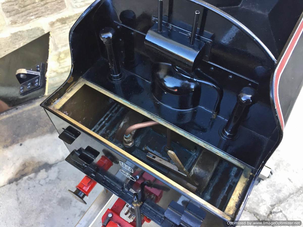 The engine of course has all 4 cylinders, and is the work of two skilled model engineers working together, and as you'd expect, she performs extremely well on track. The detail level on the outside is really nicely done, all the little pipe runs are where they should be and it makes for an impressive looking machine. The backhead has been purposefully simplified to be driven rather than to be displayed, so although it's not prototypically accurate it is certainly easy to use! The two scale mechanical lubricators on the running boards are functional, and were the loco's original lubricators, however they are currently disconnected, the builder having decided to put in a much larger reservoir under the fireman's seat on the footplate. There are little oil pots all over the model to feed into the difficult to get to internal bits.