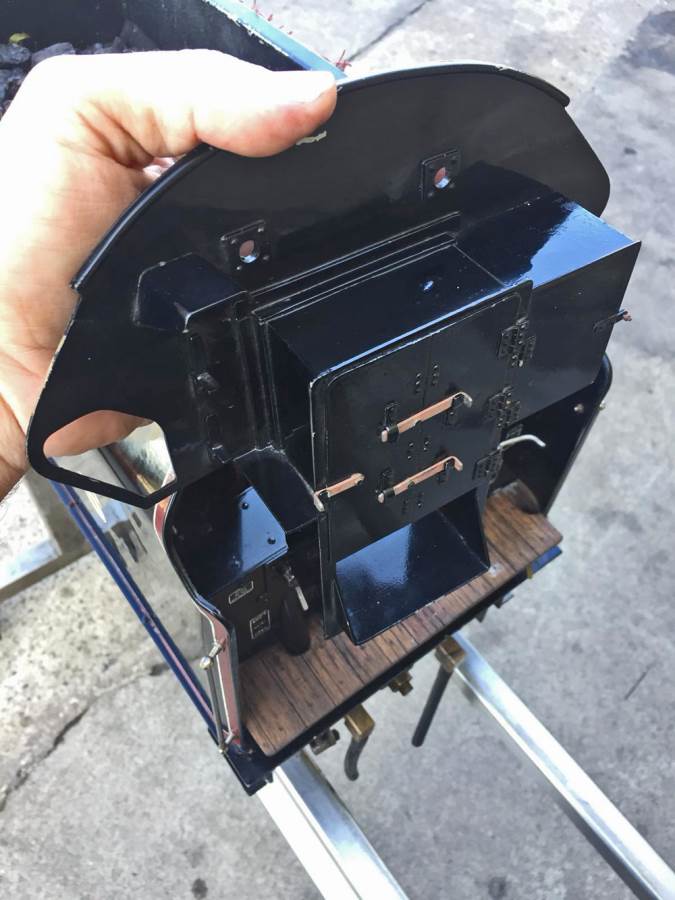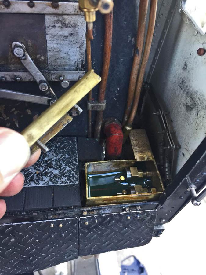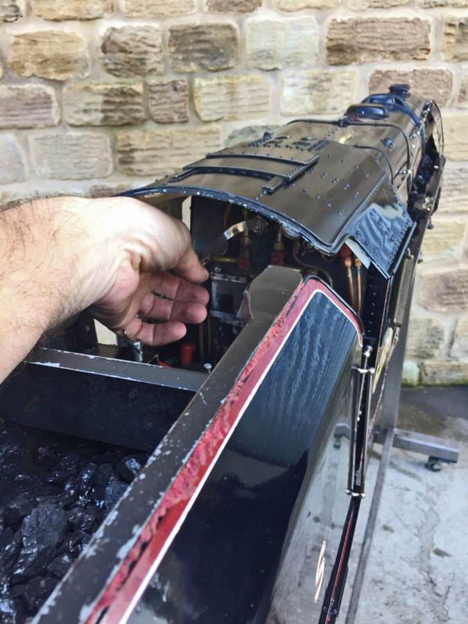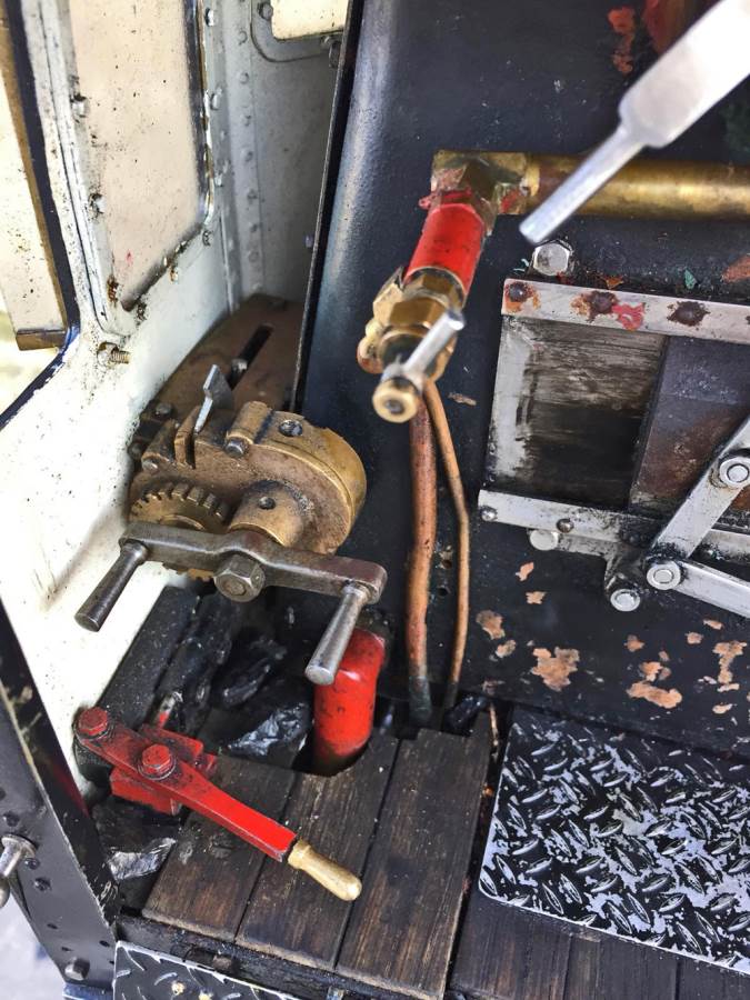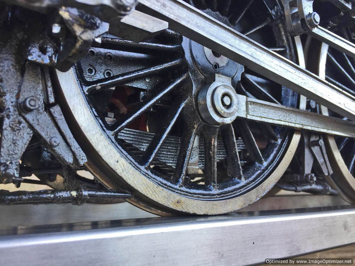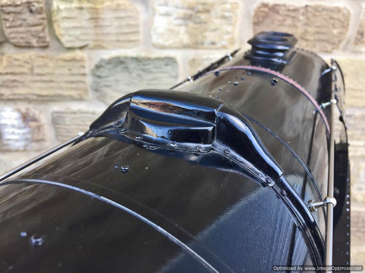 The engine of course has all 4 cylinders, and is the work of two skilled model engineers working together, and as you'd expect, she performs extremely well on track. The detail level on the outside is really nicely done, all the little pipe runs are where they should be and it makes for an impressive looking machine. The backhead has been purposefully simplified to be driven rather than to be displayed, so although it's not prototypically accurate it is certainly easy to use! The two scale mechanical lubricators on the running boards are functional, and were the loco's original lubricators, however they are currently disconnected, the builder having decided to put in a much larger reservoir under the fireman's seat on the footplate. There are little oil pots all over the model to feed into the difficult to get to internal bits.