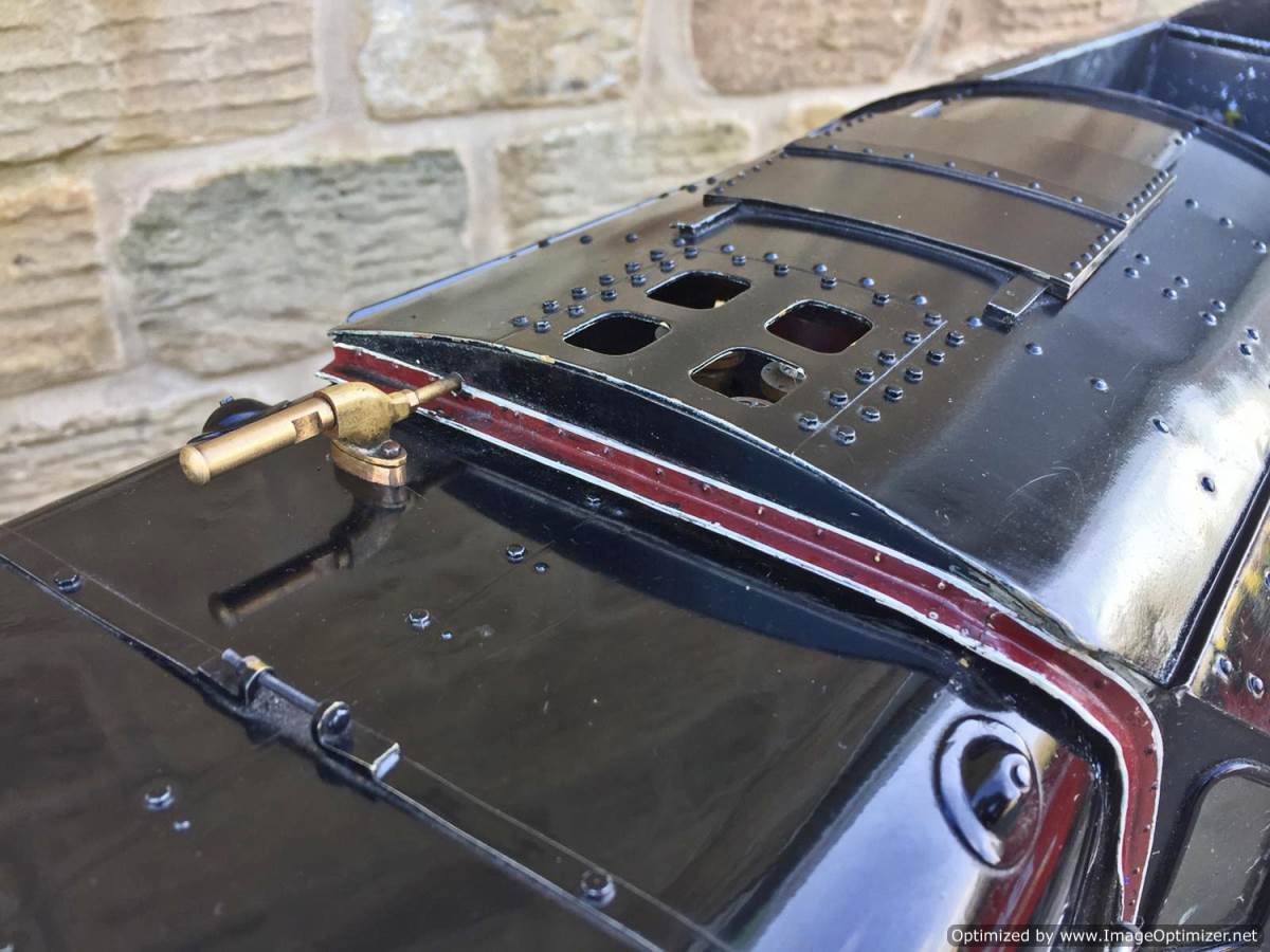 Water is fed by two injectors as well as a hand pump in the tender. The boiler is silver soldered copper and she comes fully tested with all her boiler history and ready to play! This isn't a brand new model, so there is the odd chip and scuff here n there on the paint, but it's nothing too untoward and the bottom end is still nicely tight. It's a cool toy this,.... big, fast and impressive, with a nicely unusual twist in the livery and the 'semi' smokebox,.... she will certainly turn a few heads at any club track!