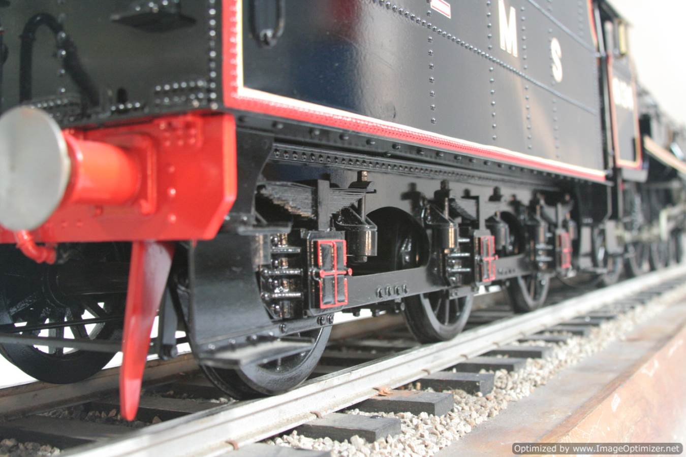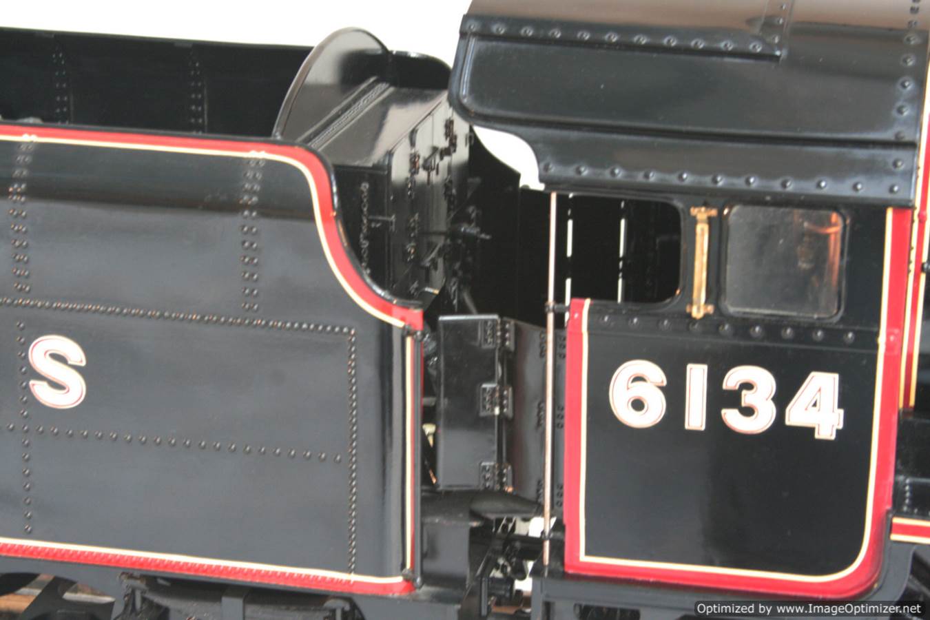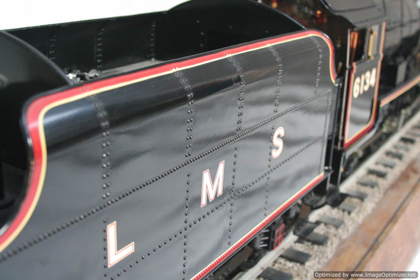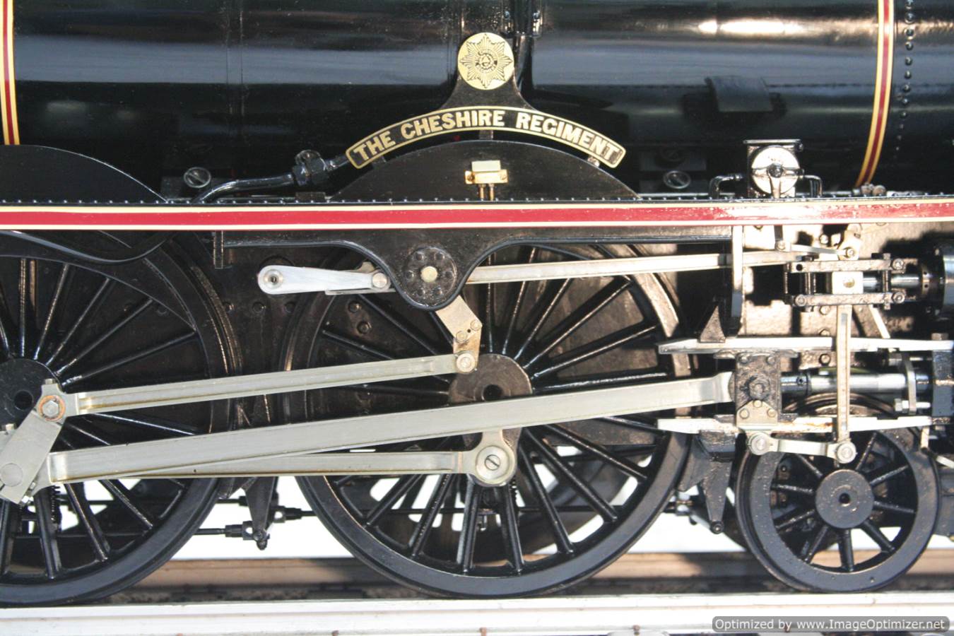 Here we have another lovely and pretty rare model. A Brand new and unsteamed 5" full 3 cylinder LMS Stanier Rebuillt Royal Scott, 6134 'The Cheshire Regiment'. She's in lined LMS Black livery and has been built to the Martin Evans 'King's Own' design, this is an exceptionally neatly made model from the workshop of an experienced model engineer. We've seen a few of these made, but they mostly seem to be the simpler 2 cylinder versions rather than the fully authentic 3 cylinder machines. The model was made as a runner, and as such has a straight martin Evans backhead rather than a more scale detailed affair, but ultimately the builder decided to keep the model in as new, un-fired condition on a plinth in his dining room whilst running all his other models instead.