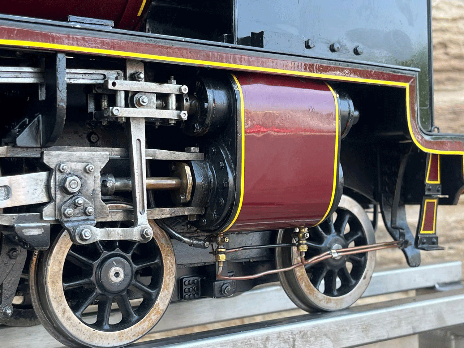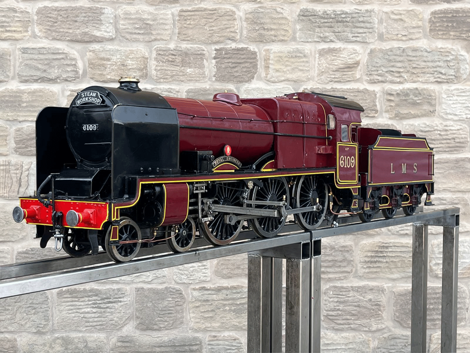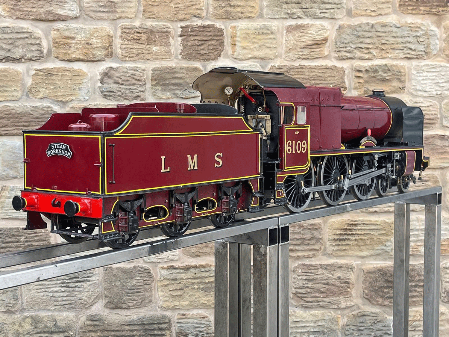 Here we have a 5" LMS Fowler Royal Scot. The simplified 2 cylinder version so there's no awkward fiddling about between the frames. Freshly repainted by the previous owner she comes fully tested both hydraulically and on steam and is ready to run.