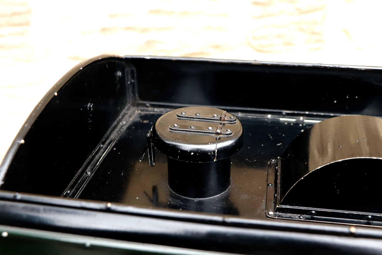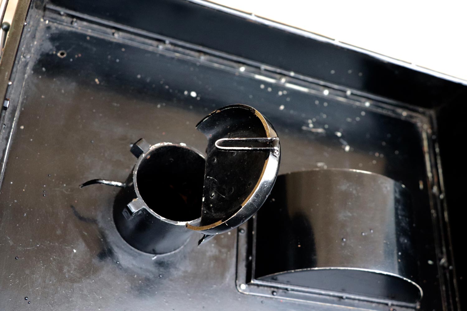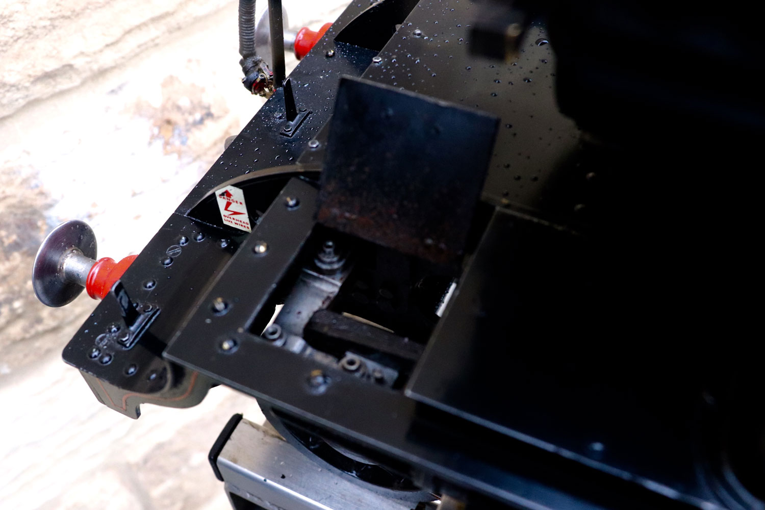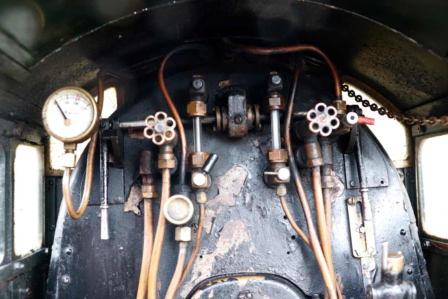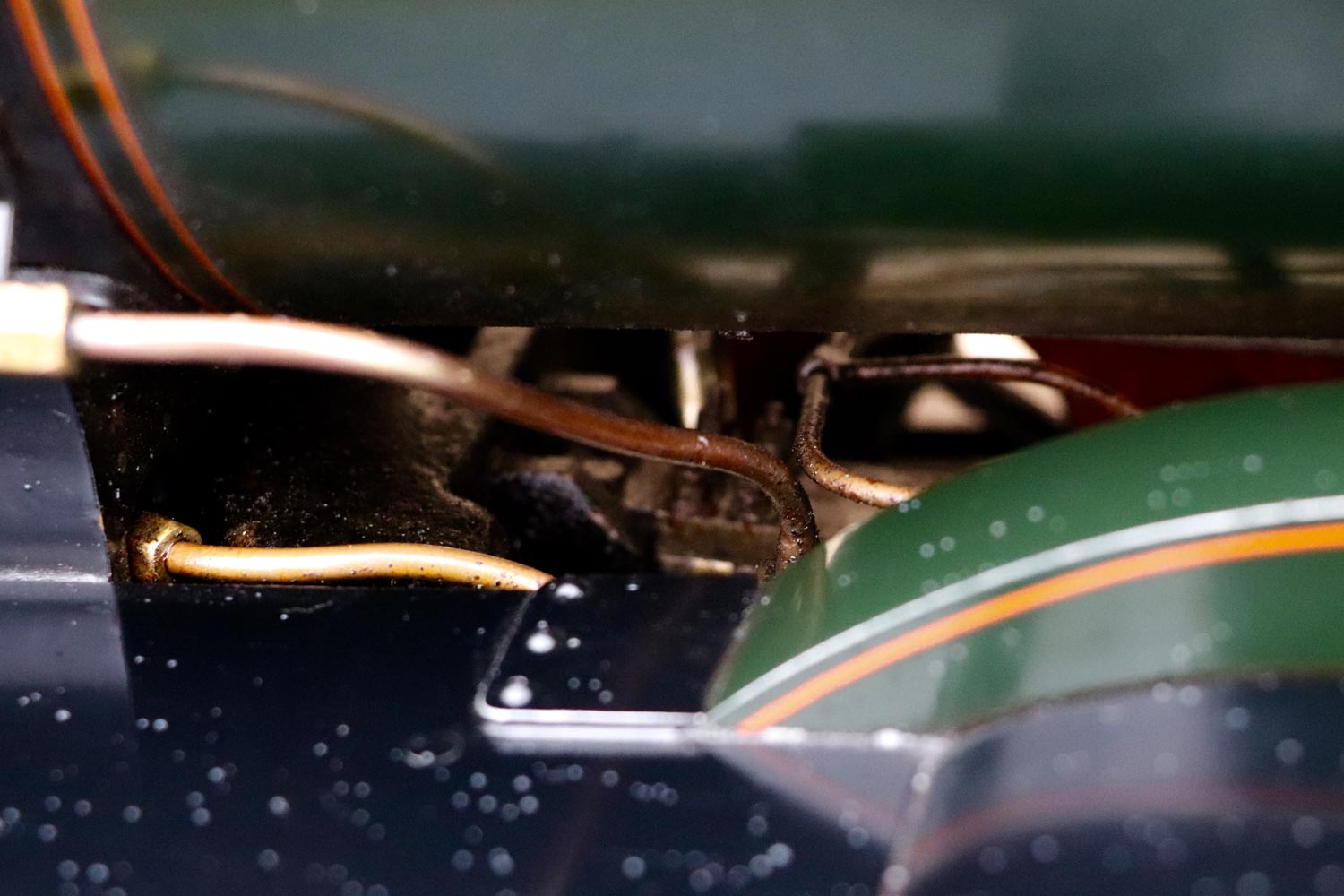 Mechanically as you've no doubt just read, she will be refreshed and ready to go, and the machining work done by the builder is lovely, crisp and neat. The running boards have little trap doors in them for oiling the motion from the top, and they drop closed with that reassuring 'pop' that you only get with a model where the builder knew how to make things properly! The boiler is of course copper and silver soldered, comes with a large wedge of old certificates back to the original date of construction which was 1990. She can of course come with fresh certificates and will be tested and ready to hit the rails.