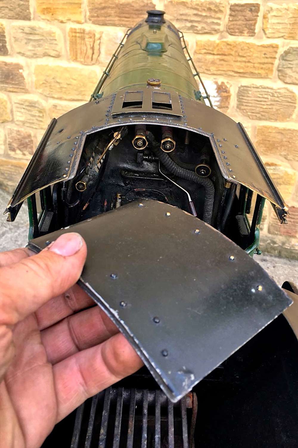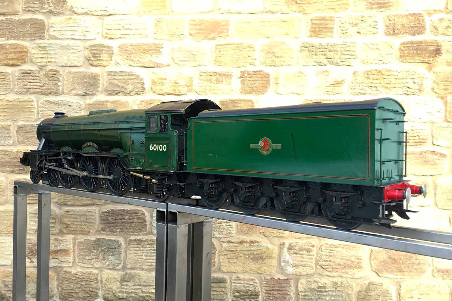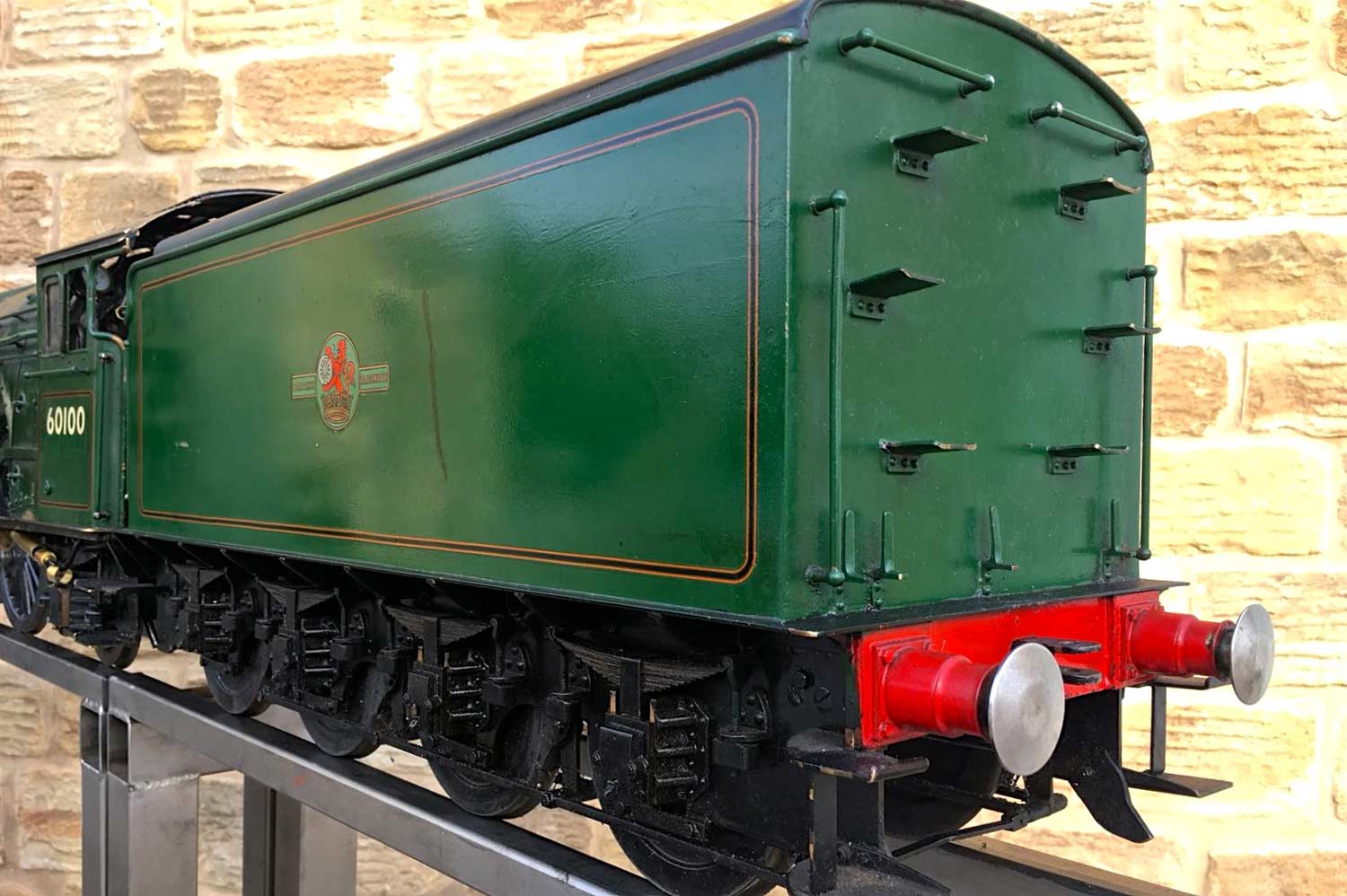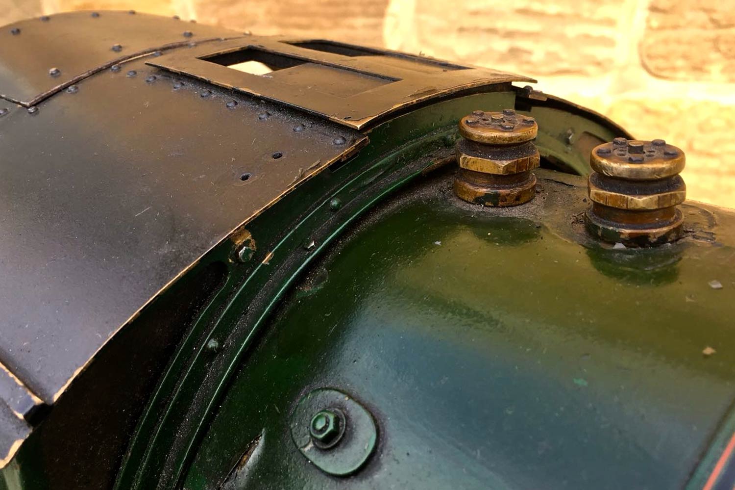 Here we have, for sale on behalf of a customer, the second of the 5" LNER A3s currently in stock. In this case, 60100 'Spearmint'. She's a full 3 cylinder machine, but mechanically and cosmetically this one is a little on the tired side. Everything has actually been made originally pretty well, with tidy machining work and delicate touches here and there. You could simply run her tomorrow, but the valve gear is a bit on the worn side, and the engine would benefit hugely from a general overhaul. The paintwork on the tender and cab are ok, if showing a heavy patina of age and use,...... the barrel, on the other hand has at some point been painted by VanGough's illigitimate son,...... the bold brush strokes giving a disquieting glimpse into the tortured depths of the artists soul.