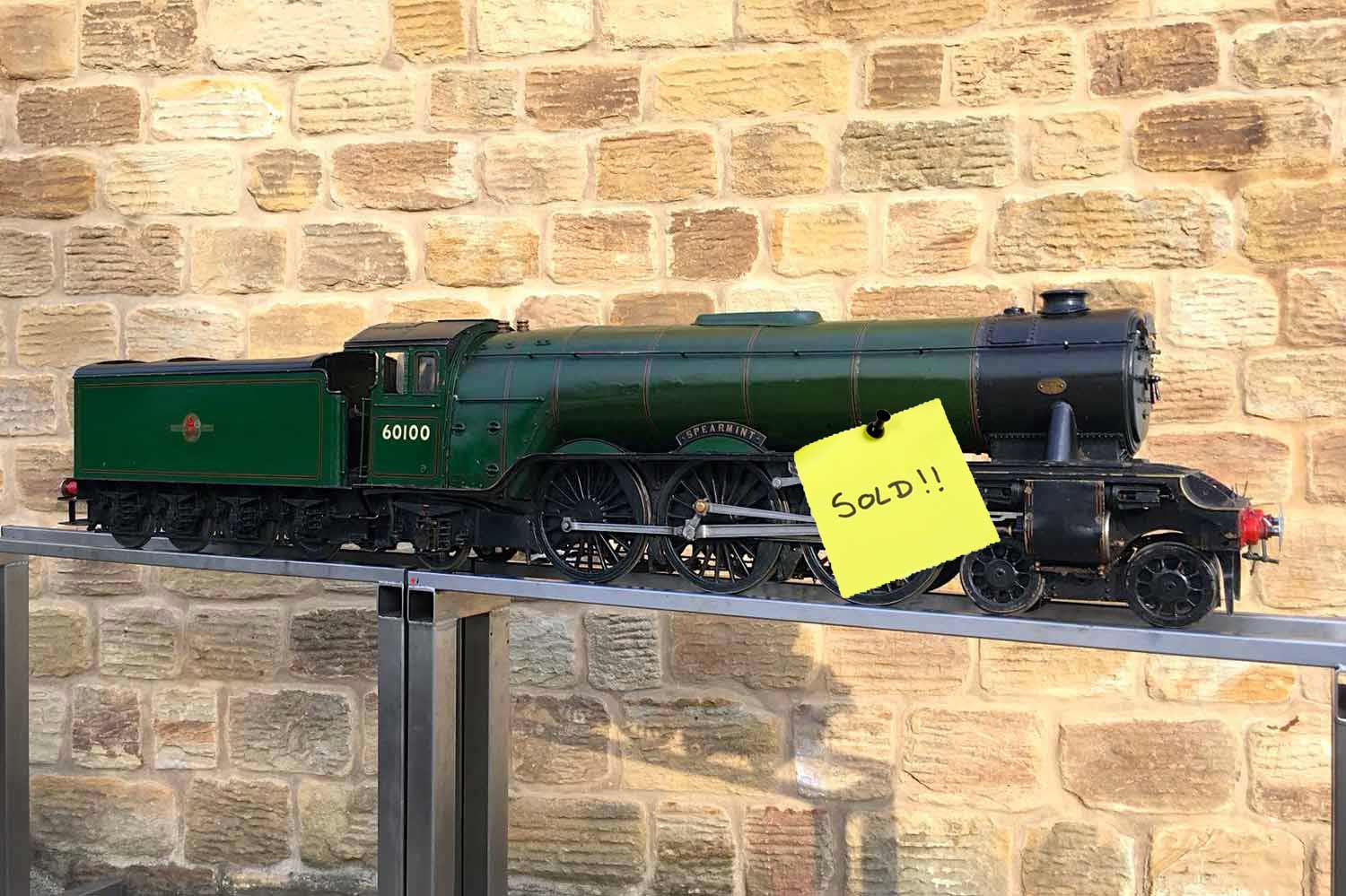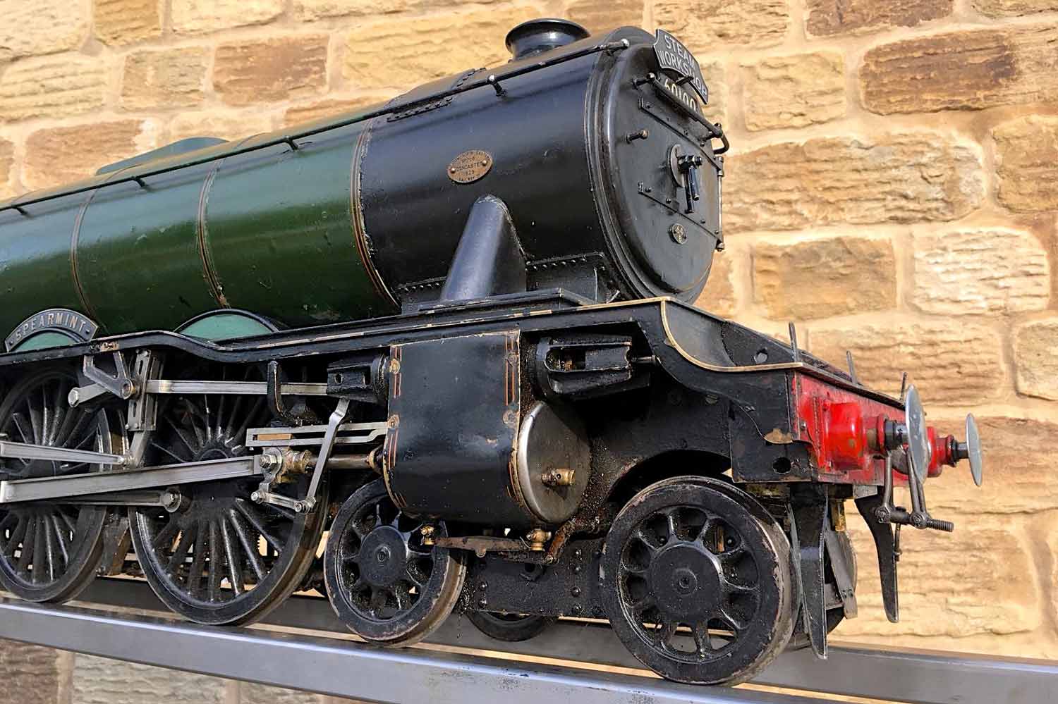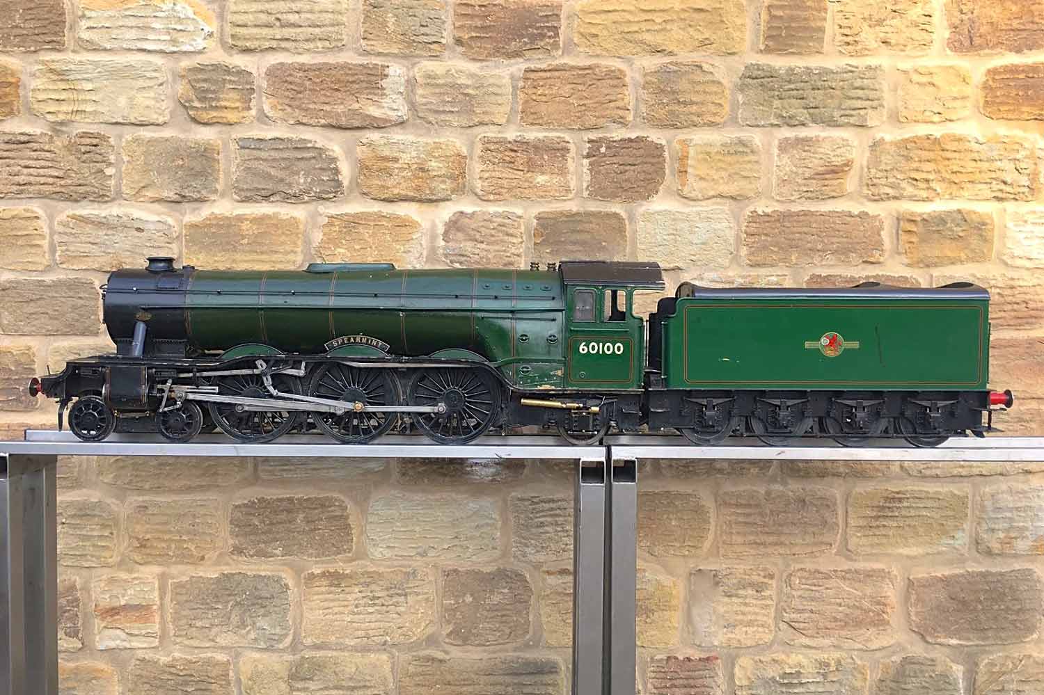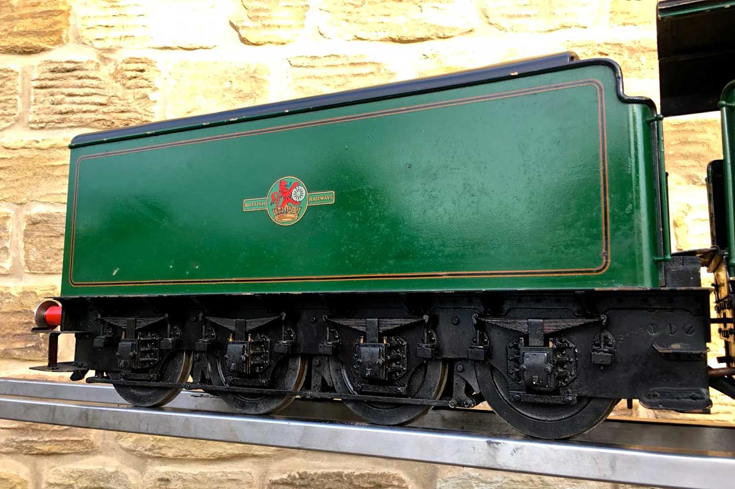 Here we have, for sale on behalf of a customer, the second of the 5" LNER A3s currently in stock. In this case, 60100 'Spearmint'. She's a full 3 cylinder machine, but mechanically and cosmetically this one is a little on the tired side. Everything has actually been made originally pretty well, with tidy machining work and delicate touches here and there. You could simply run her tomorrow, but the valve gear is a bit on the worn side, and the engine would benefit hugely from a general overhaul. The paintwork on the tender and cab are ok, if showing a heavy patina of age and use,...... the barrel, on the other hand has at some point been painted by VanGough's illigitimate son,...... the bold brush strokes giving a disquieting glimpse into the tortured depths of the artists soul.