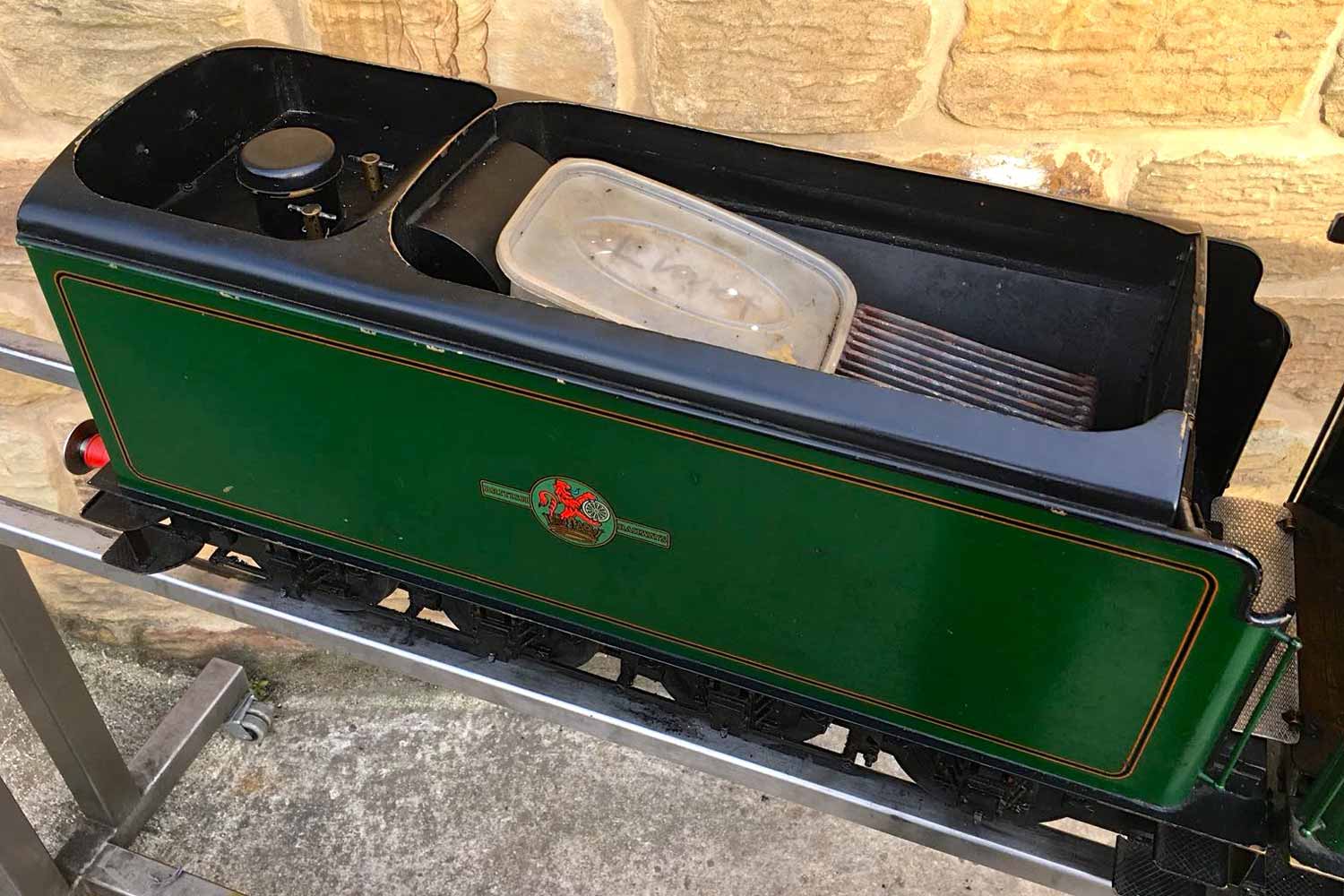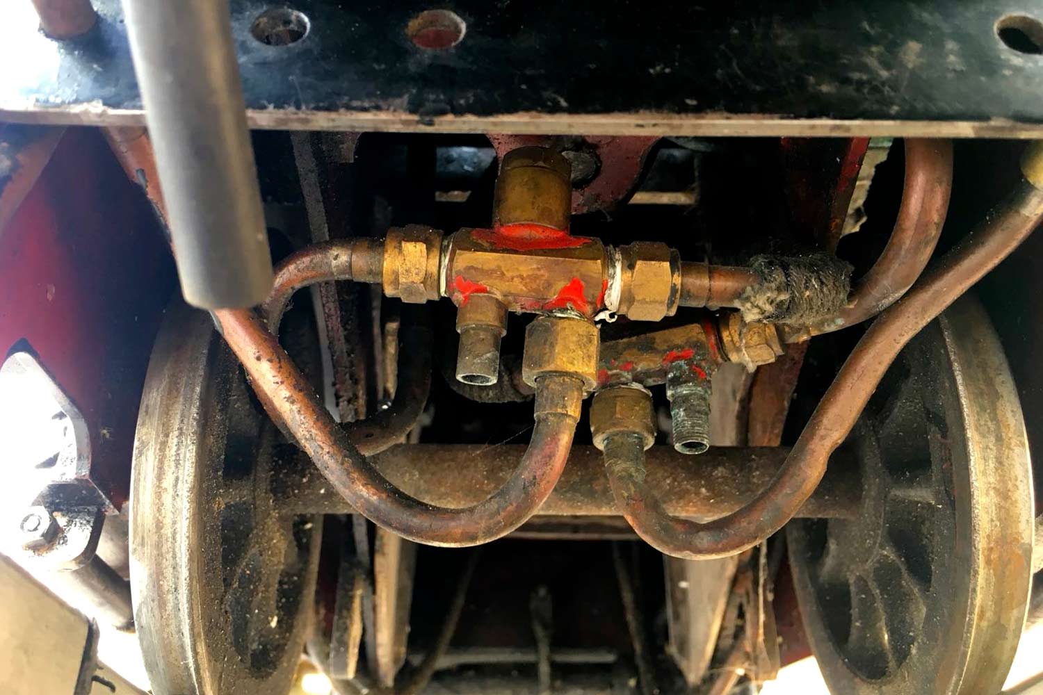 The boiler is silver soldered copper and is good to go, there is previous boiler paperwork, and she can come from us with a fresh hydraulic test and a fresh annual steam test. Water is fed by and injector, and axle pump with footplate mounted bypass and of course the hand pump in the tender. Lubrication is mechanical and under the front footplate.