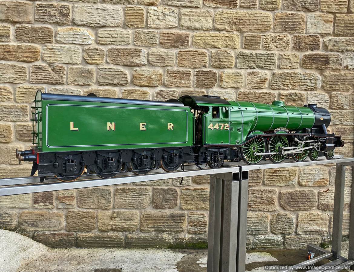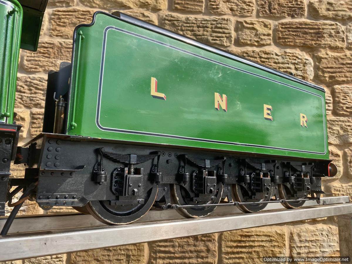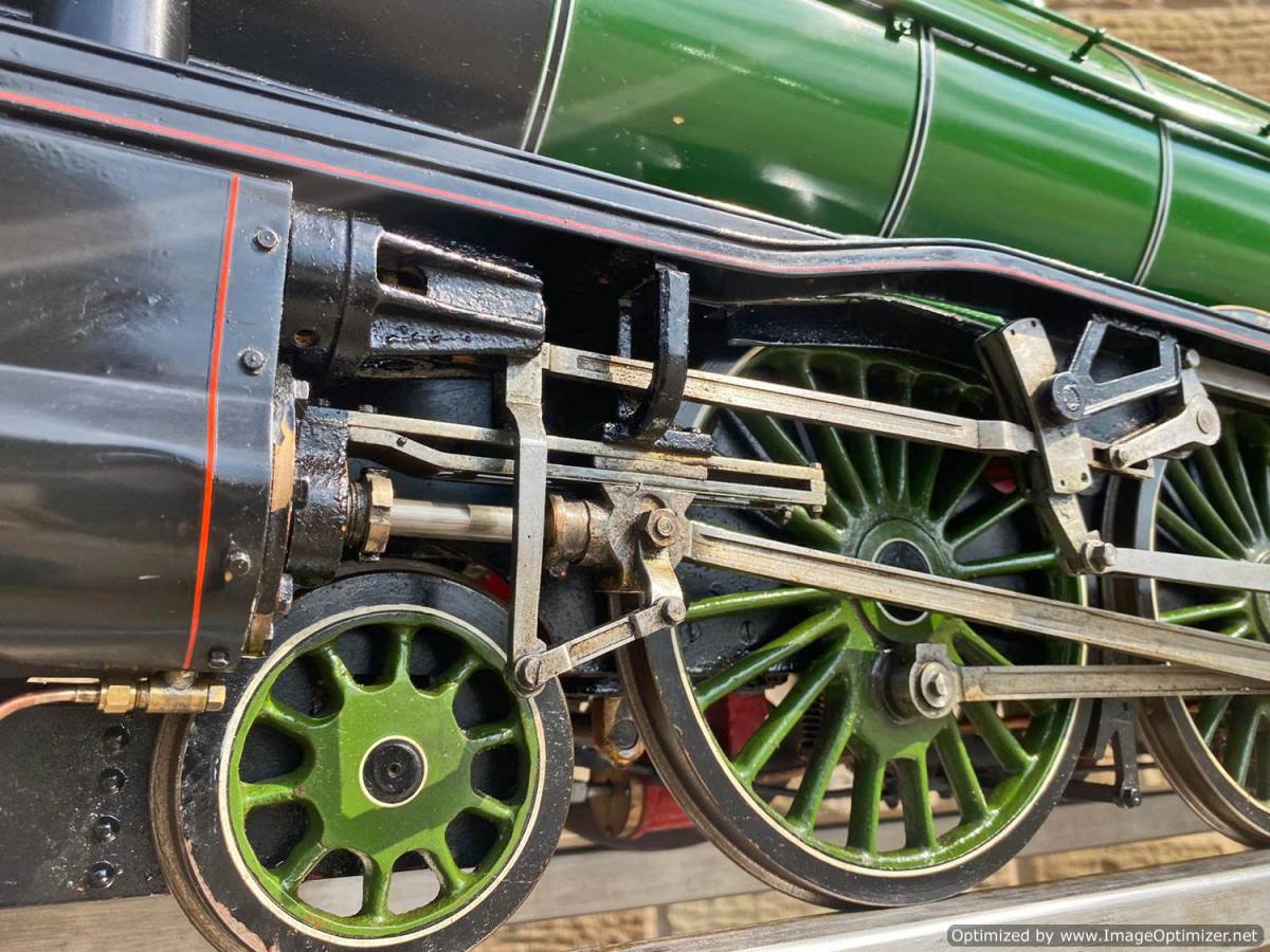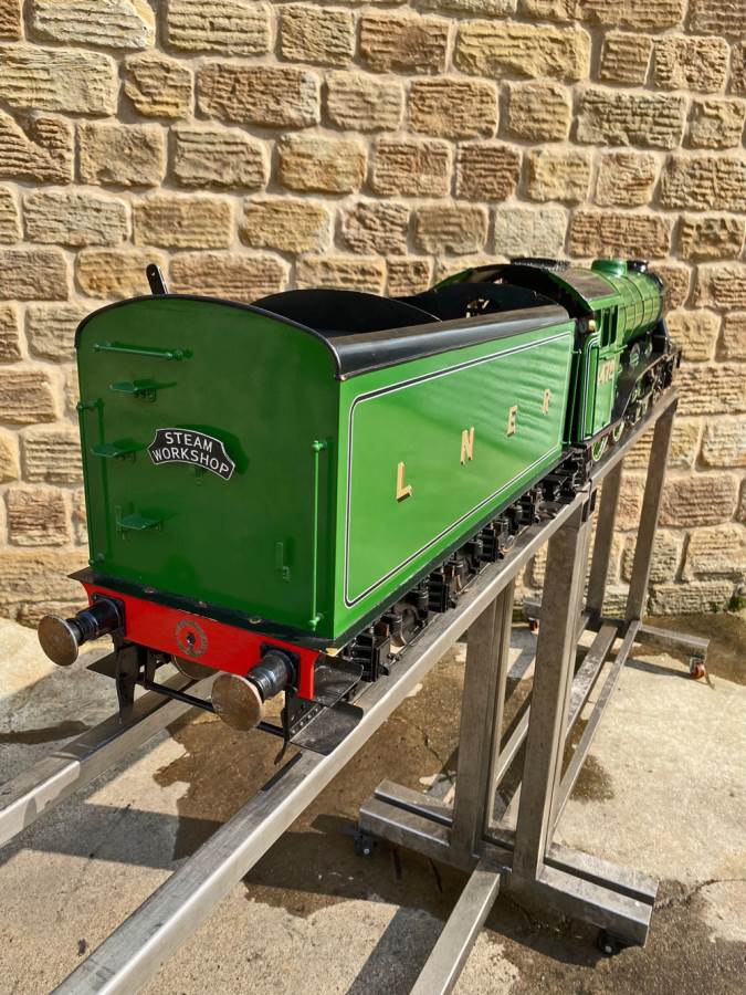 Here we have a pretty much brand new LNER Gresley A3, 4472 Flying Scotsman. Only test steamed on a couple of occasions to make sure everything is working as it should! Technically the model is slightly a halfway house between the original Gresley A1 and the later A3, the cab being the earlier one, the dome not being the banjo and various other detailing differences, but the model is neatly made and sports essentially a brand new professionally made silver soldered copper boiler. We lit the first fire in the model and did the initial tweaks and commissioning, and were pleasantly surprised that there's not too much needing to be done here in the works before she was ready to go.