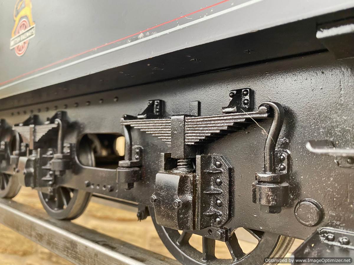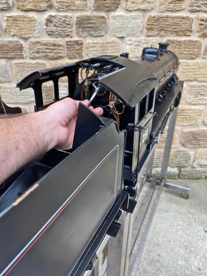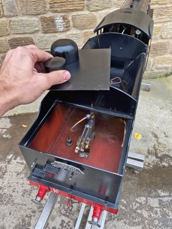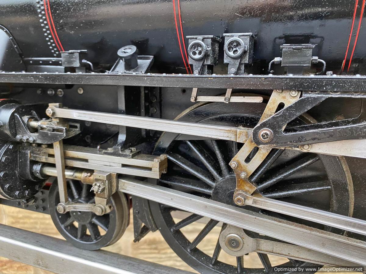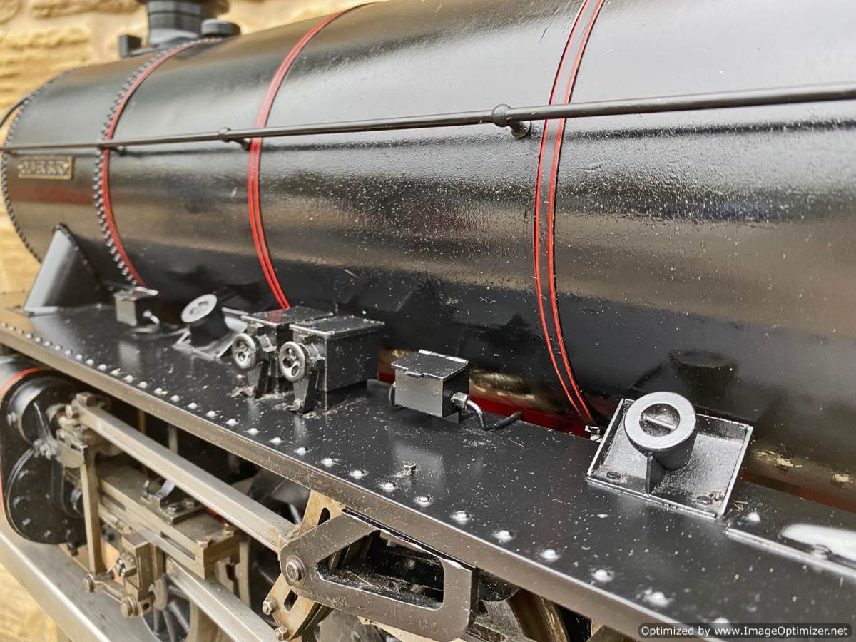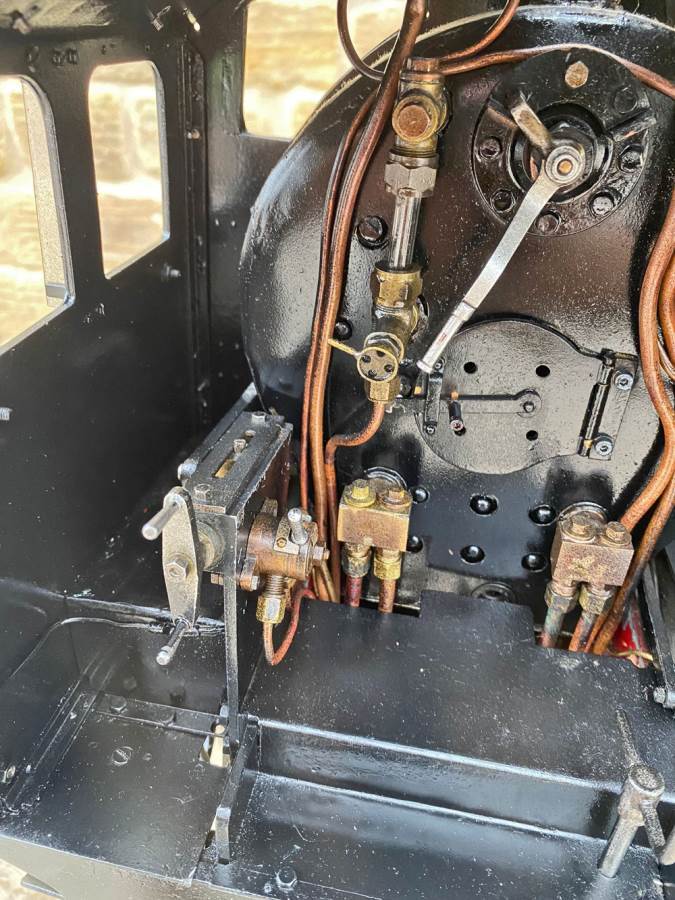 Mechanically the valve gear is particularly nicely made with the lovely little oil pots machined in as per the prototype. There's a big lubricator hidden under the front running boards feeding both cylinders independently. There are twin axle pumps with footplate mounted bypass valve as well as two injectors and a hand pump in the tender, so getting water in shouldn't be an issue!