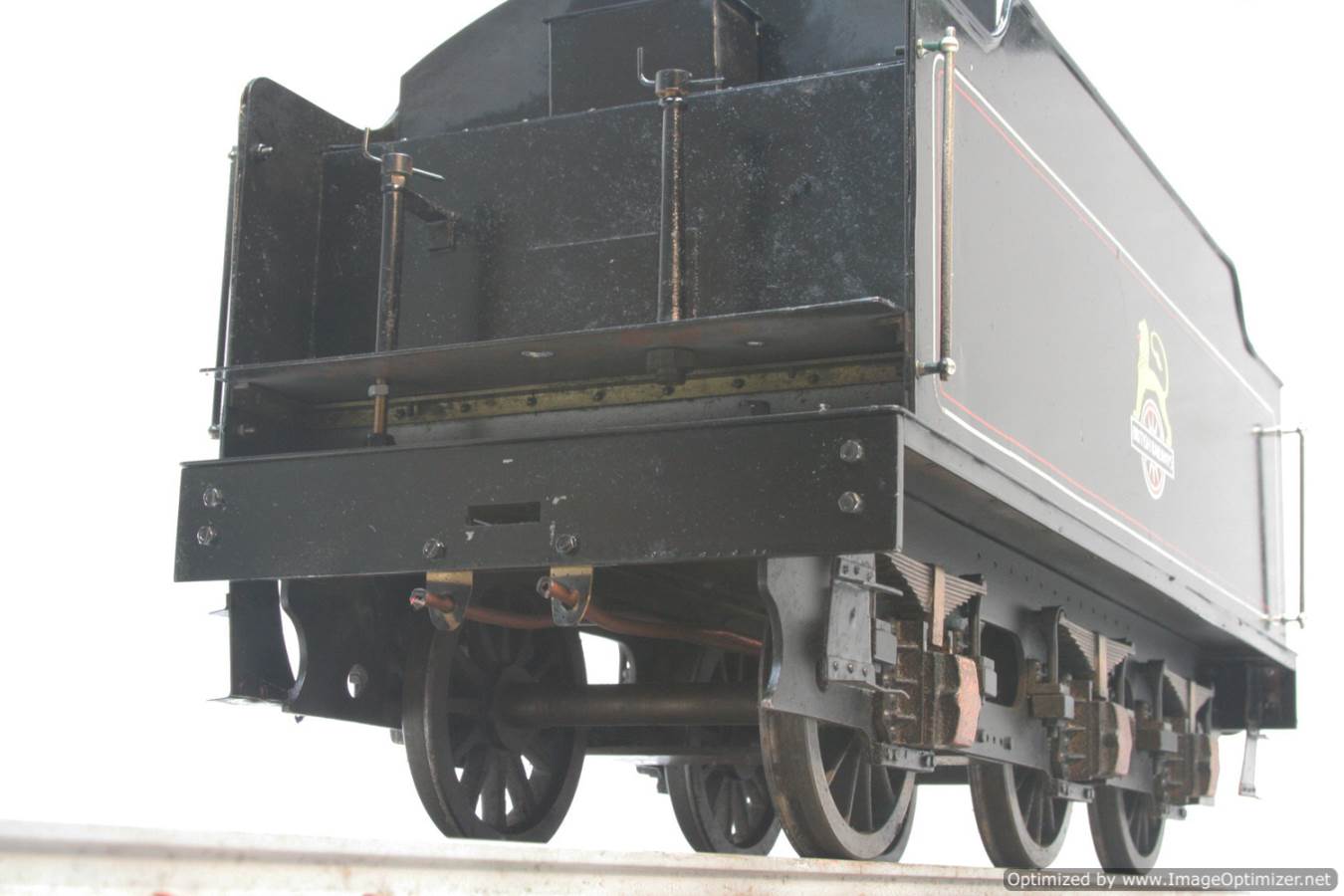 Here we have a brand new and unsteamed 5" gauge LNER B1, built to the ever popular and well proven Martin Evans 'Springbok' design.  The engine is essentially finished and ready to be commissioned.  We decided that as we are a little busy in the workshops, rather than doing the work in house and adding the value to this one, we would let you have it cheaper in order to do the little tweaks and bits and bobs yourself.  Now this one came into us recently as part of an estate following the passing of the owner.  He collected mostly professionally built models which he then plinthed and kept purely for display purposes.  This one doesn't quite have the feel of a professionally built model, (although of course there are 'professionals' and there are professionals!),...... but everything appears to be in the right places and the machining is of acceptable, if not spectacularly beautiful quality.