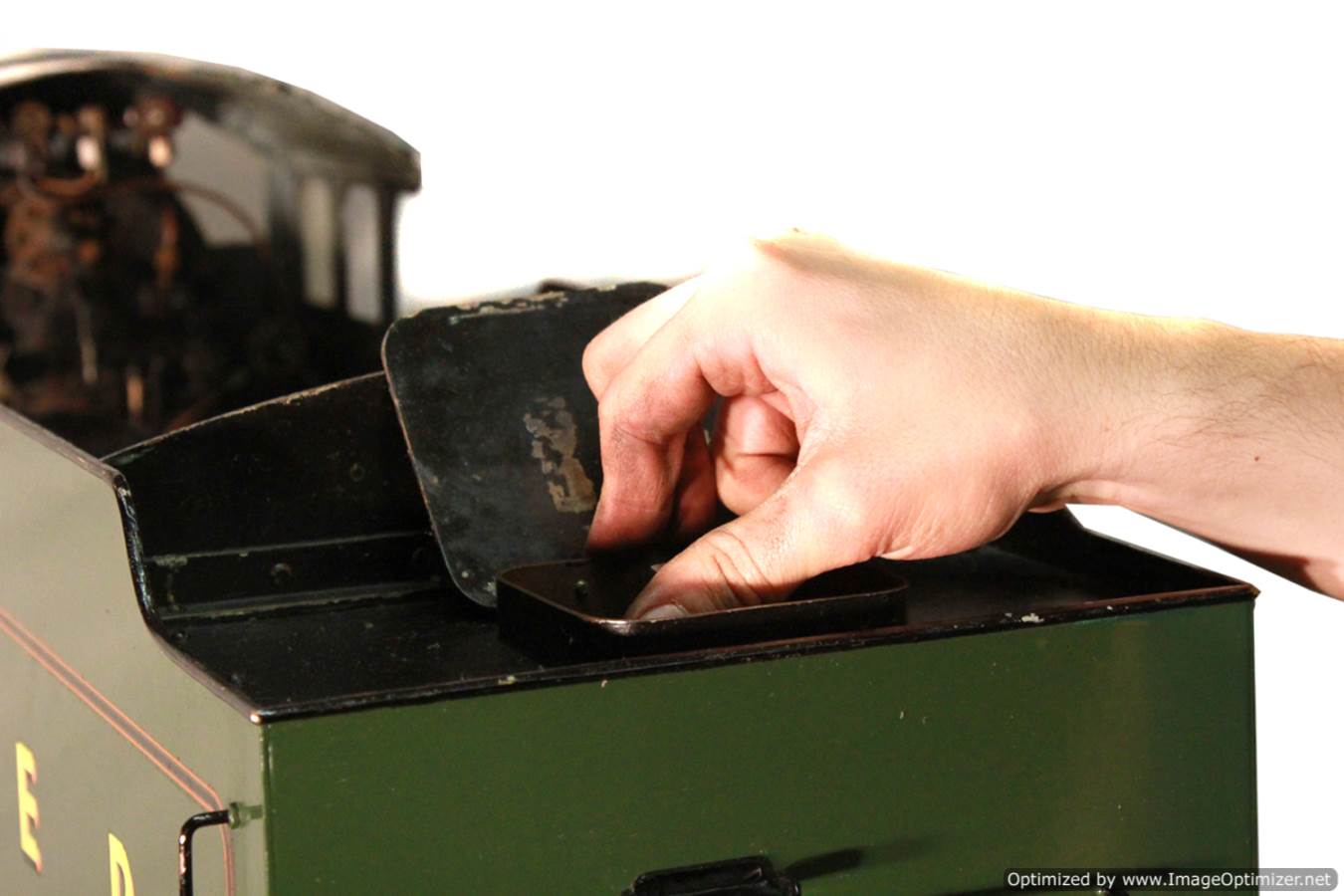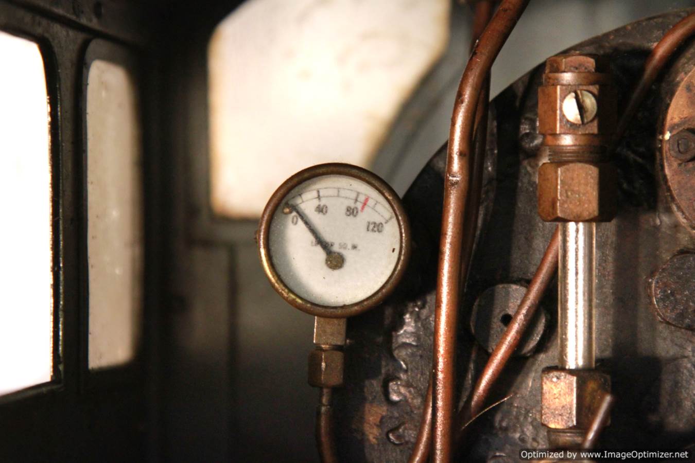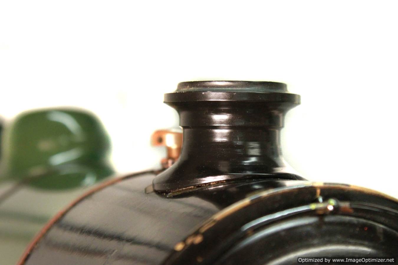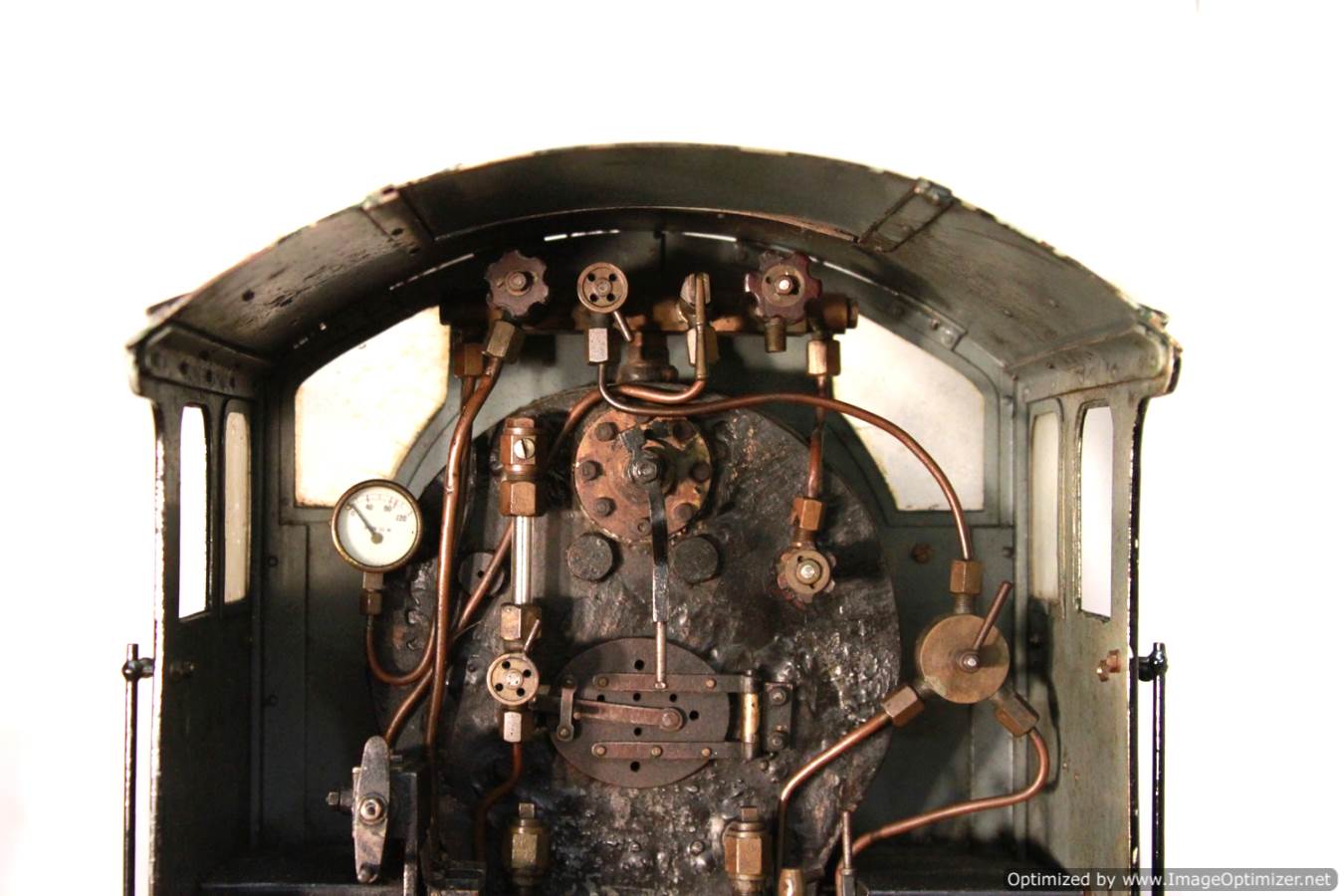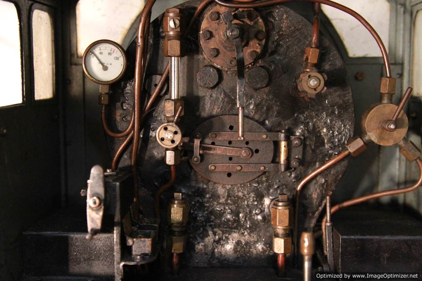 She is fitted with an injector, a mechanical axle pump with footplate fitted bypass valve and of course a big hand pump in the tender.  Lubrication is from a large mechanical reservoir on the running board, so you should be able to run most of the day without having to worry too much about stopping to top up all the time!  The backhead is pretty much standard Springbok, and although the paint has clearly been clattered with the shovel on a decent number of occasions, everything is free and feels exactly as it should.