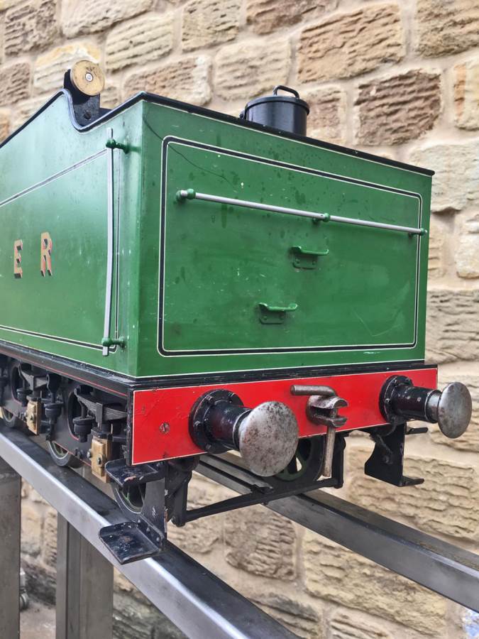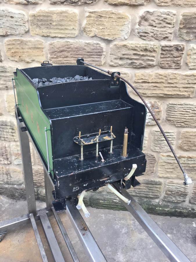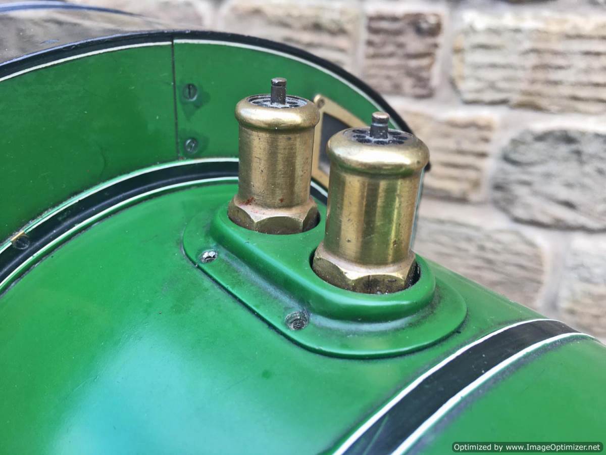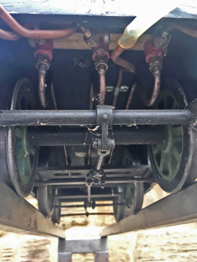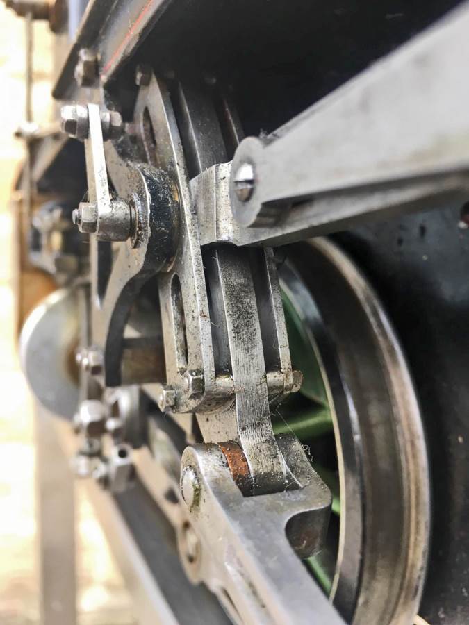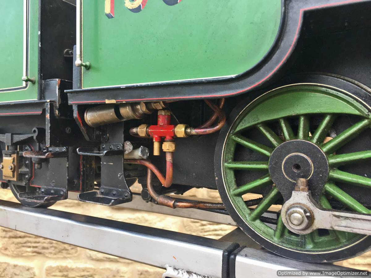 Mechanically this is a nicely made model, and certainly has the feel of a good runner about it. There's not a great deal of mechanical wear and tear in the valve gear or bottom end that we can see, and we've spoken to friends of the builder who confirm that it's free steaming and a good engine to drive. The boiler is of course silver soldered copper and comes with a fresh 4 year hydraulic test as well as a fresh annual steam test. Lubrication is mechanical and fed from the large reservoir on the running board. There is an injector of course, as well as an axle pump for the water, as well as a hand pump in the tender for if things all get out of hand!