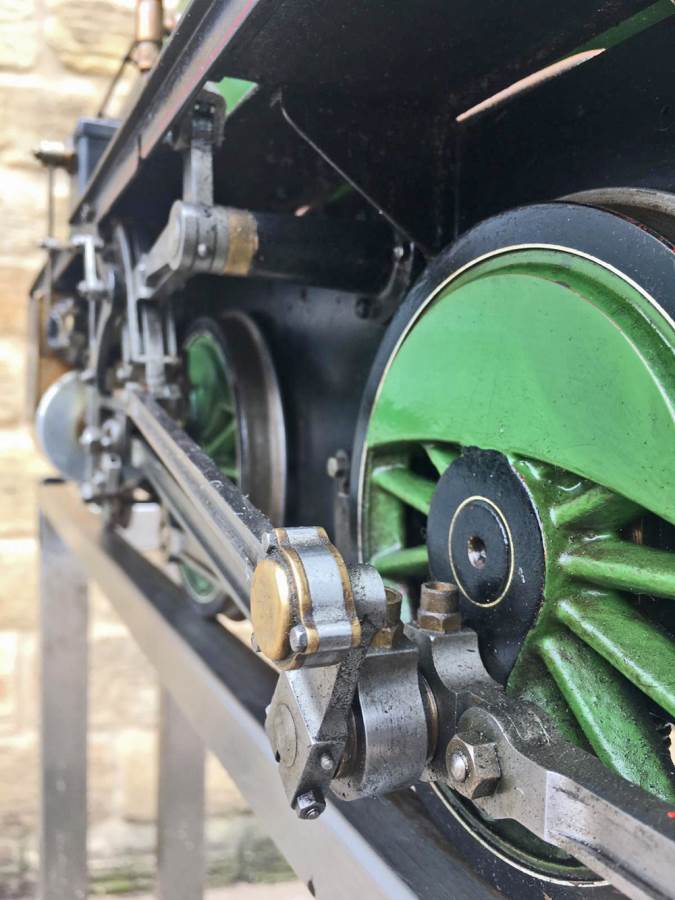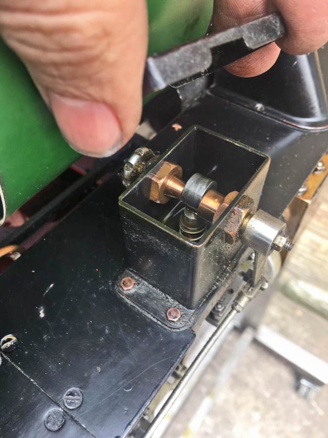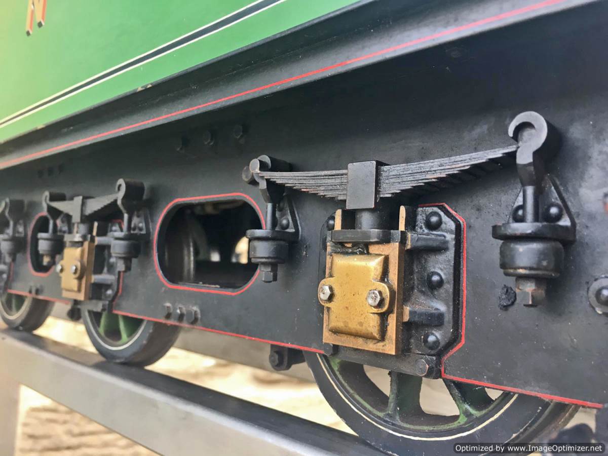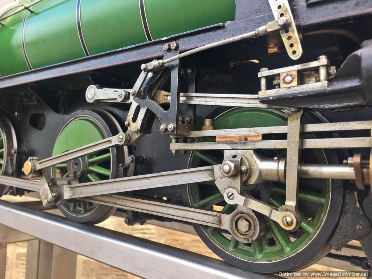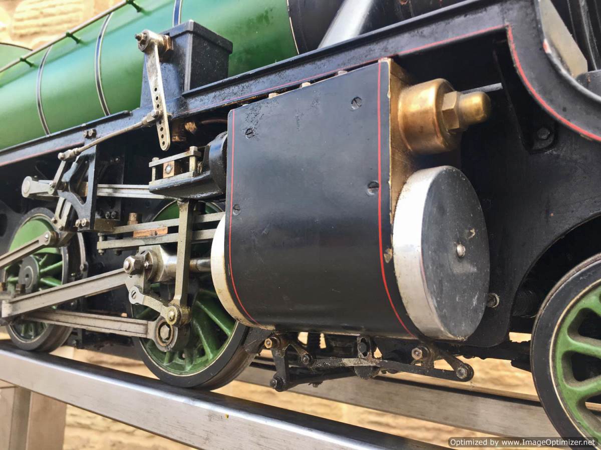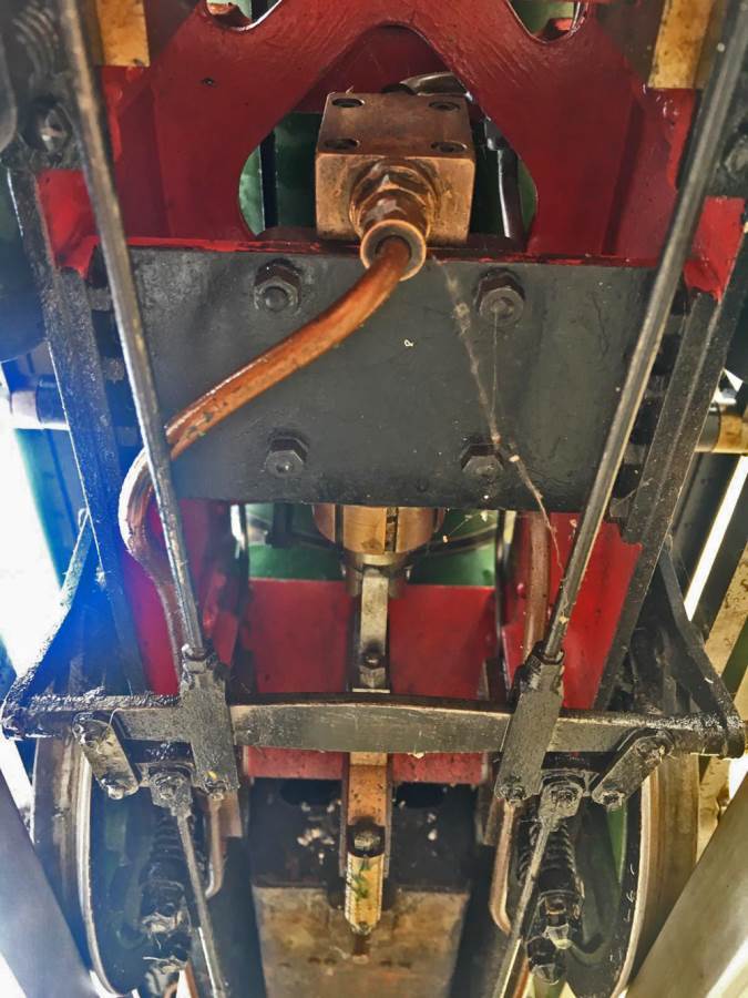 Mechanically this is a nicely made model, and certainly has the feel of a good runner about it. There's not a great deal of mechanical wear and tear in the valve gear or bottom end that we can see, and we've spoken to friends of the builder who confirm that it's free steaming and a good engine to drive. The boiler is of course silver soldered copper and comes with a fresh 4 year hydraulic test as well as a fresh annual steam test. Lubrication is mechanical and fed from the large reservoir on the running board. There is an injector of course, as well as an axle pump for the water, as well as a hand pump in the tender for if things all get out of hand!