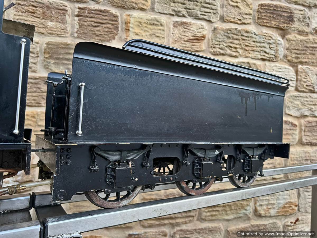 Here we have another example of the LNER O1 to the 'Nigel Gresley' design by Martin Evans. We've not had one of these for about 3 years, then this is the third one is as many weeks! Funny how these things go! This is a crisply made and solidly machined model with very little wear and tear. Detail wise it's certainly plain and the paint work is utilitarian rather than fine. It's suffered a little as well cosmetically for lack of use in a dusty garage, although mechanically she's perfectly fine. The boiler is a neatly made silver soldered copper boiler, fully ticketed and ready to play.