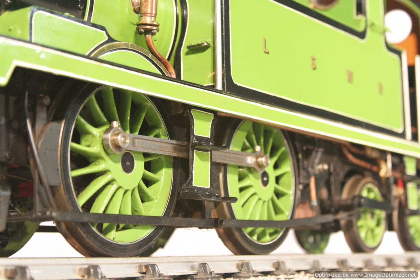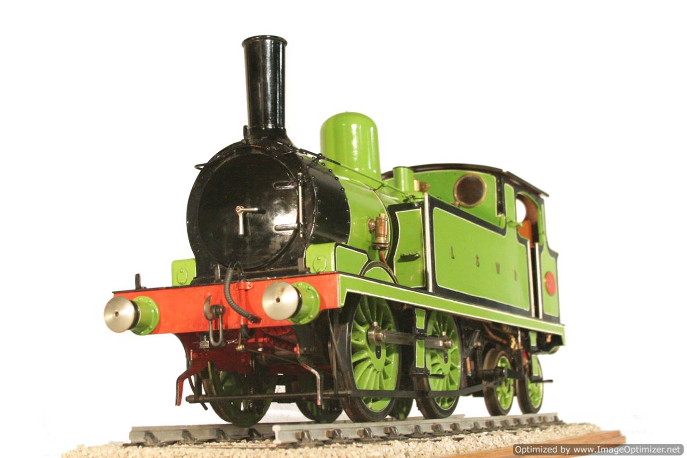 Here we have another nice little 5" gauge LSWR O2, made, we think to the Don Young drawings.  This model comes to us from a known builder,.... in fact one of our personal toys, the lovely little 1868 Caledonian Railway Connor 2-4-0 was from the same chap.  That's a lovely little runner, and we are sure this one will be as well,... (we will throw a fire in it soon!).  This isn't a super detail display model, rather a model built to run, by a builder who knew what he was doing.  That said, it's also nicely finished, and the backhead detail level is lovely, and it's in the beautiful LSWR original livery which is always nice to see.  It comes with a nice boiler certificate history trail, and can go with a fresh 4 year hydraulic and annual steam test ready to hit the rails.