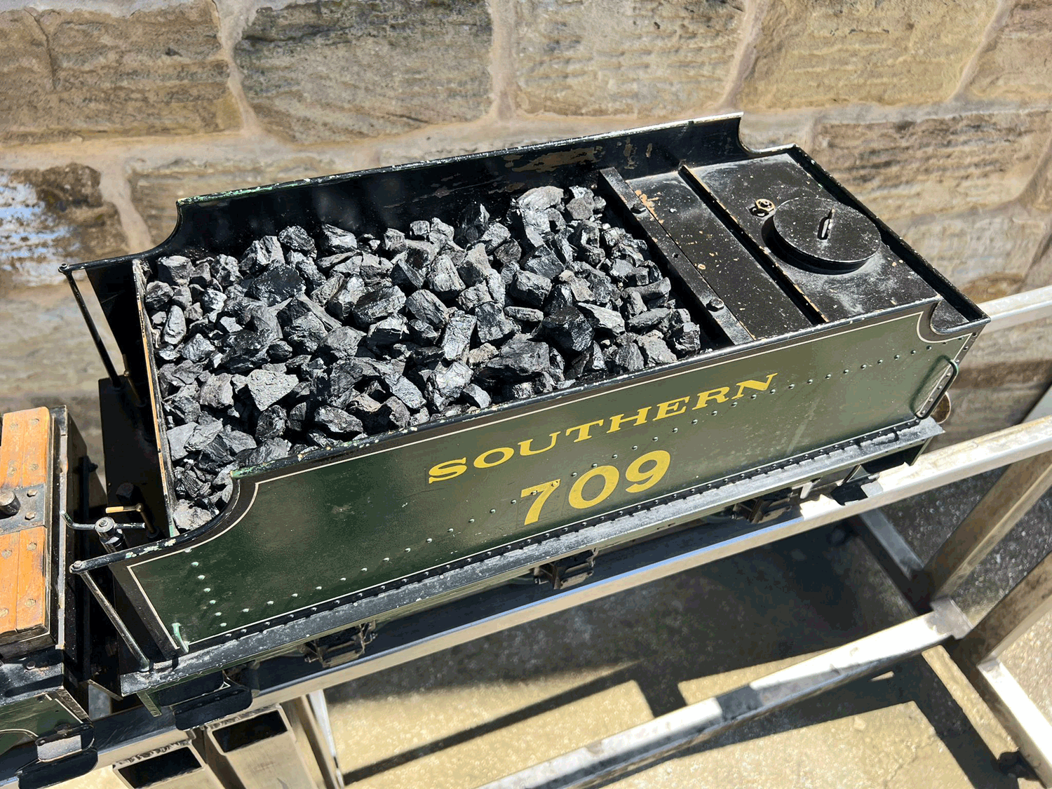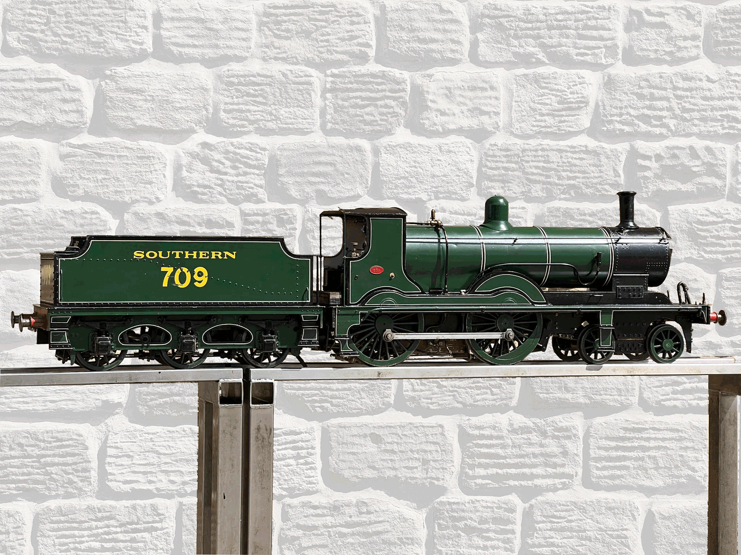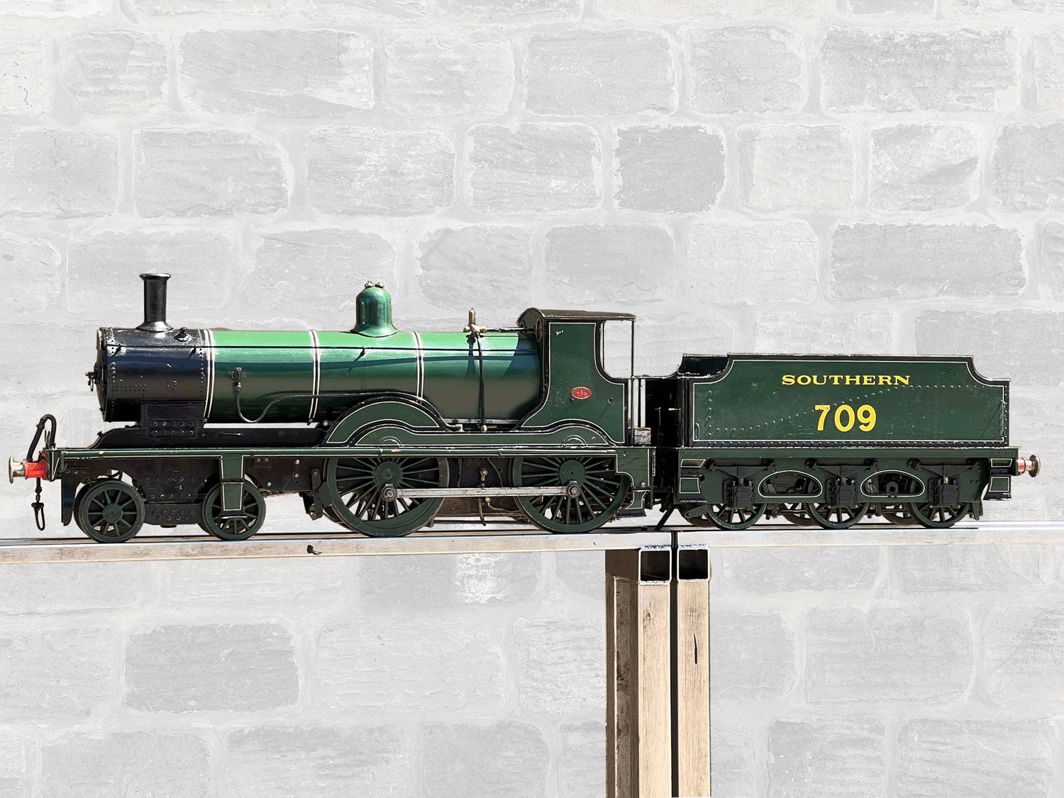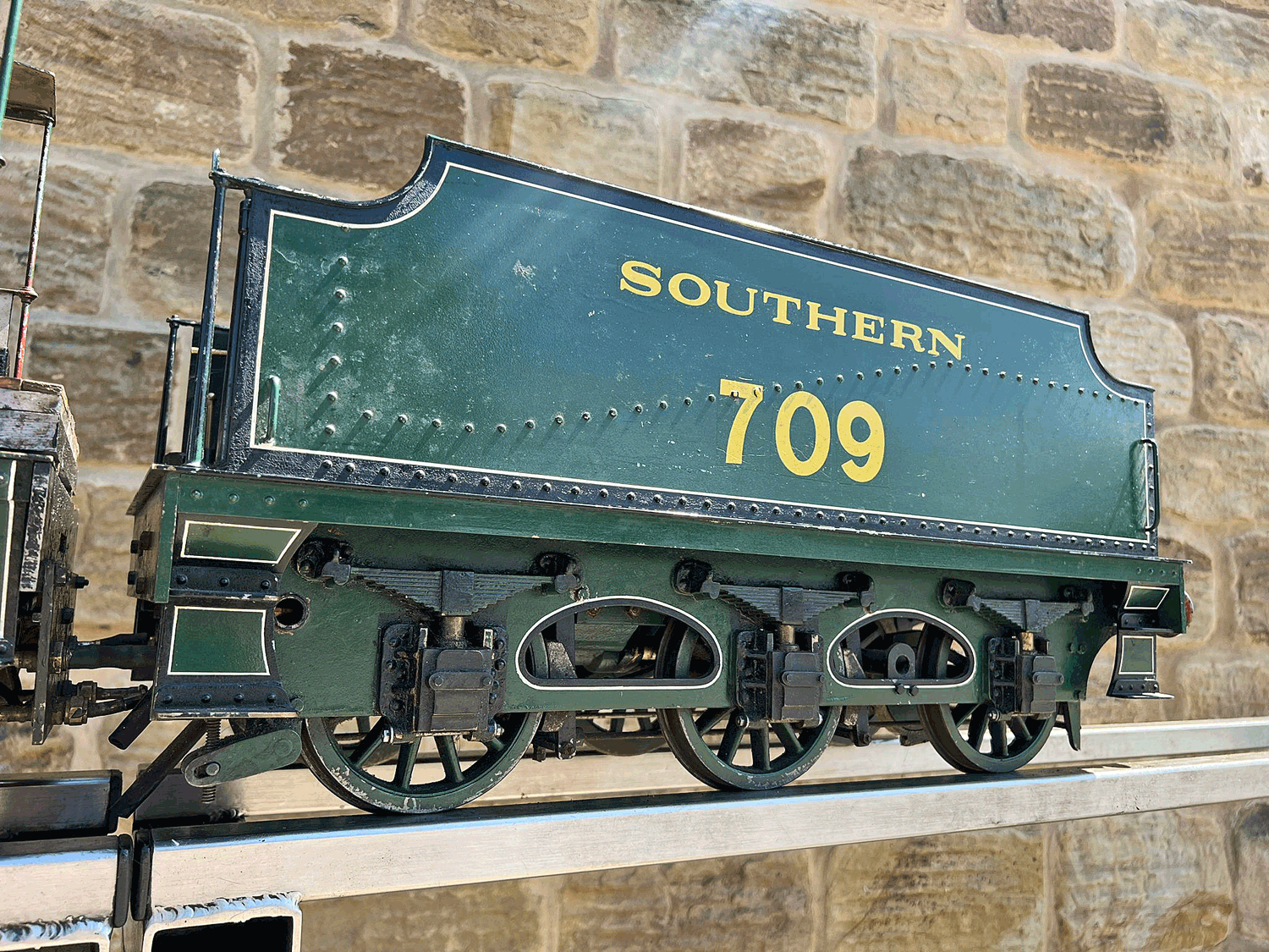 Here we have a rarely modeled 5" gauge LSWR T9. A well engineered model, that looks like it is going to run well. Cosmeticaly it's a little scruffy here n there, and the builder hasn't quite captured the exact proportions of the T9,...... but it's certainly a fair attempt, and possibly with a new chimney and dome it would look a lot more like the real thing!
