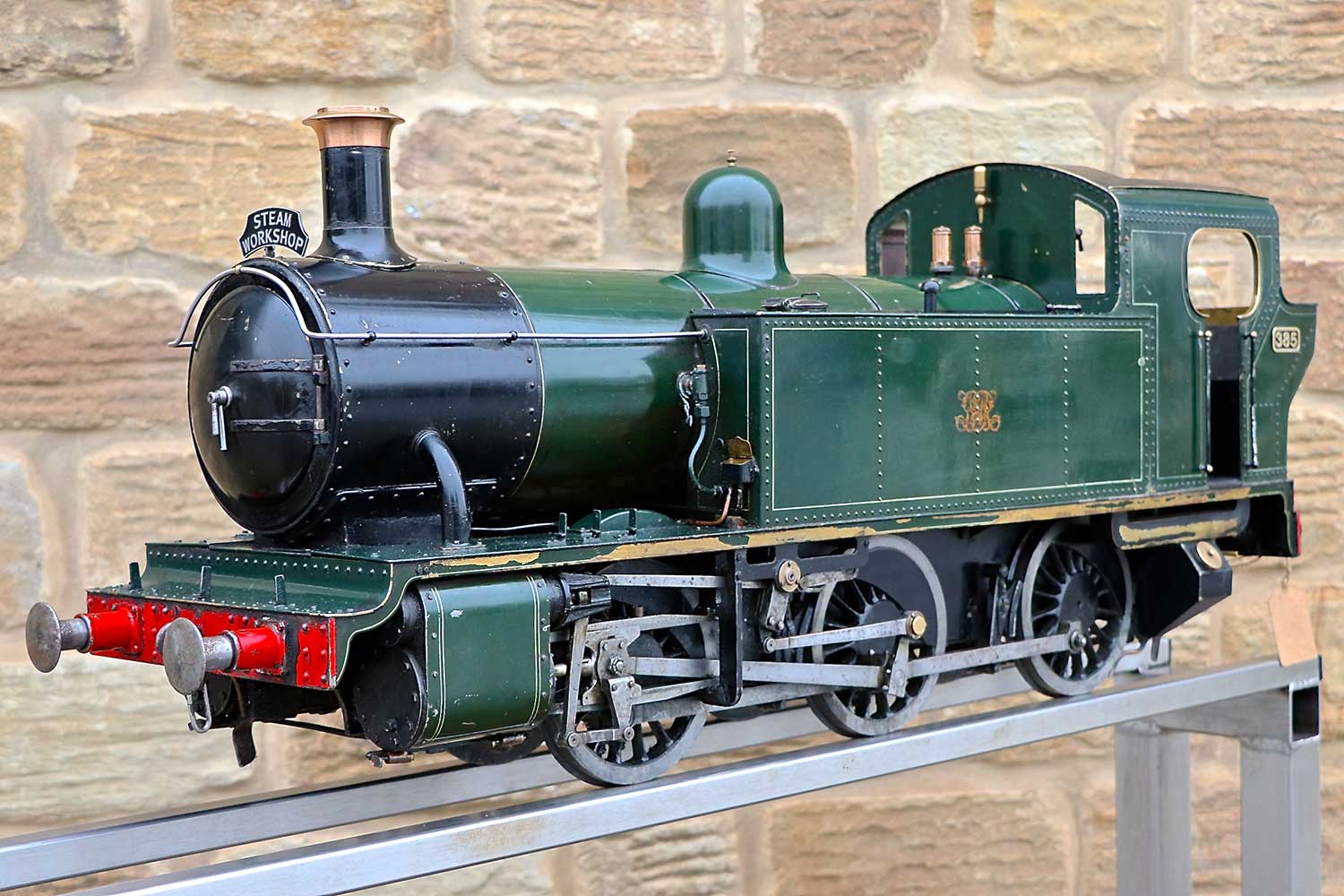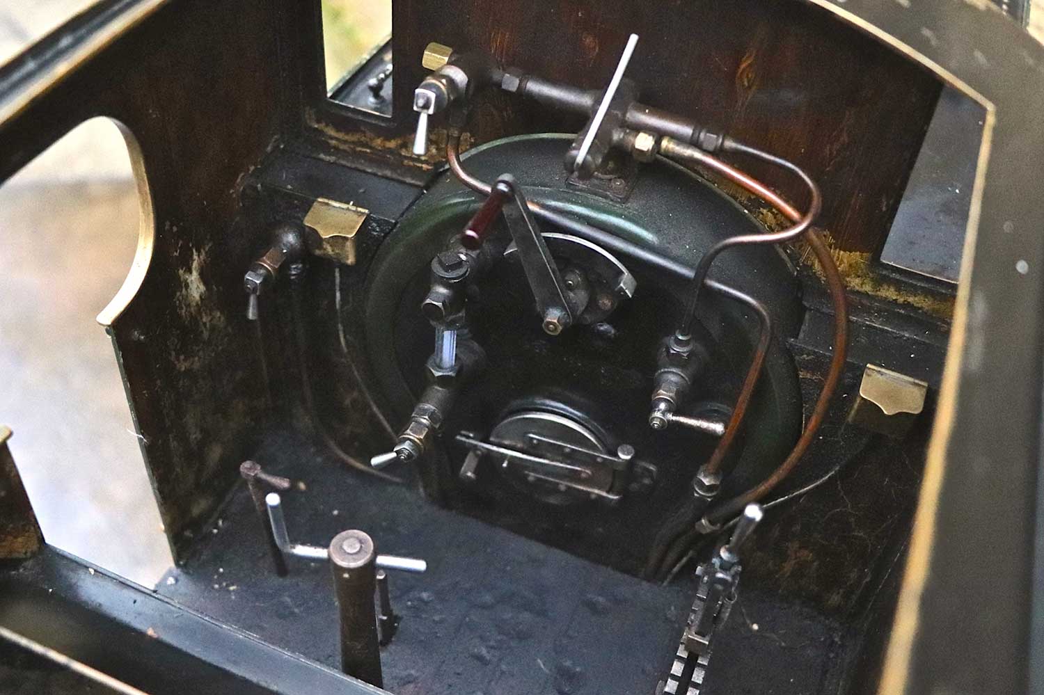 Here we have an unusual freelance 5" gauge 0-6-0.  At first glance you could be forgiven for thinking it's a Simplex, but no.  It's quite a bit bigger than a simplex, and different, subtly in virtually every detail.  Extremely well made too, the metal bashing work on the bunker is particularly well done.  The builder has put a lot of thought and skill into it's build.  Sadly, the boiler has a weep on it, and it's not one that we can economically attempt to fix in house.  One of the super heater tubes appears to be weeping quite badly in the tube plate under hydraulic, and it's almost certainly a boiler off job to attempt a fix.