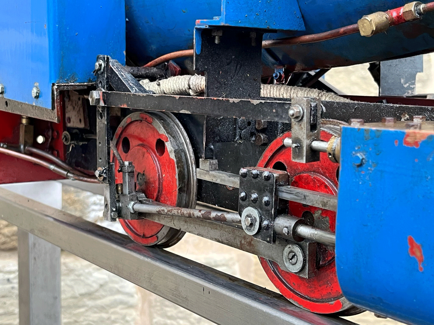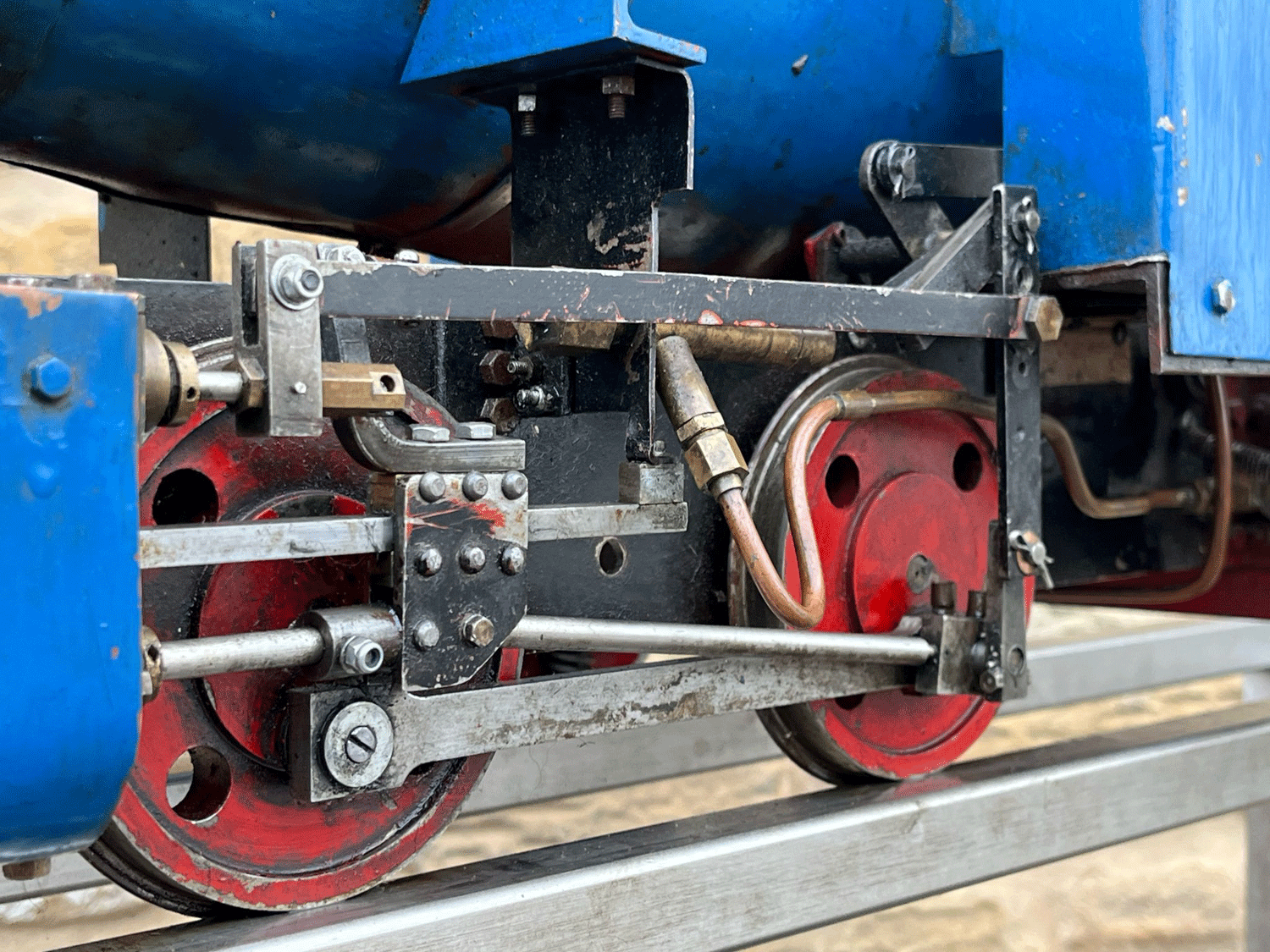Here we have a nice little project for someone. A 5" 0-4-0, of freelance design and we think made from Maxitrak parts. It looks pretty much immediately viable, but as you can see from the photos it's fairly rough and ready in terms of the fit and finish, so we've decided to pass this one on as a project rather than put it through our workshops and add any more value. Hopefully a nice, inexpensive route into a simple and ultimately easy to run 5" steam loco.