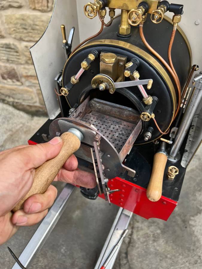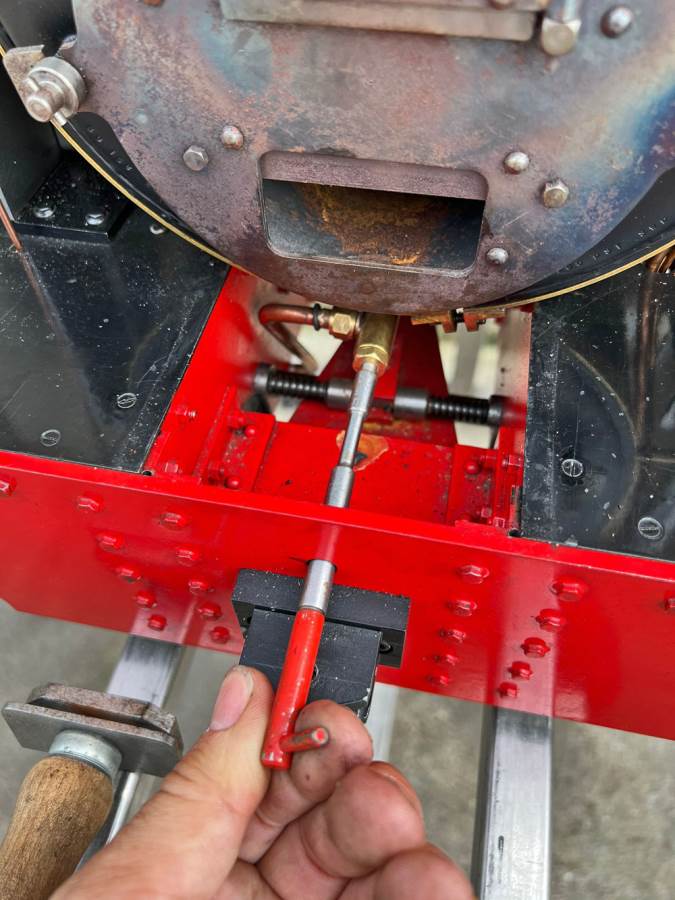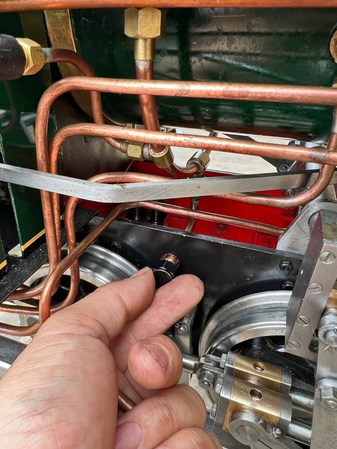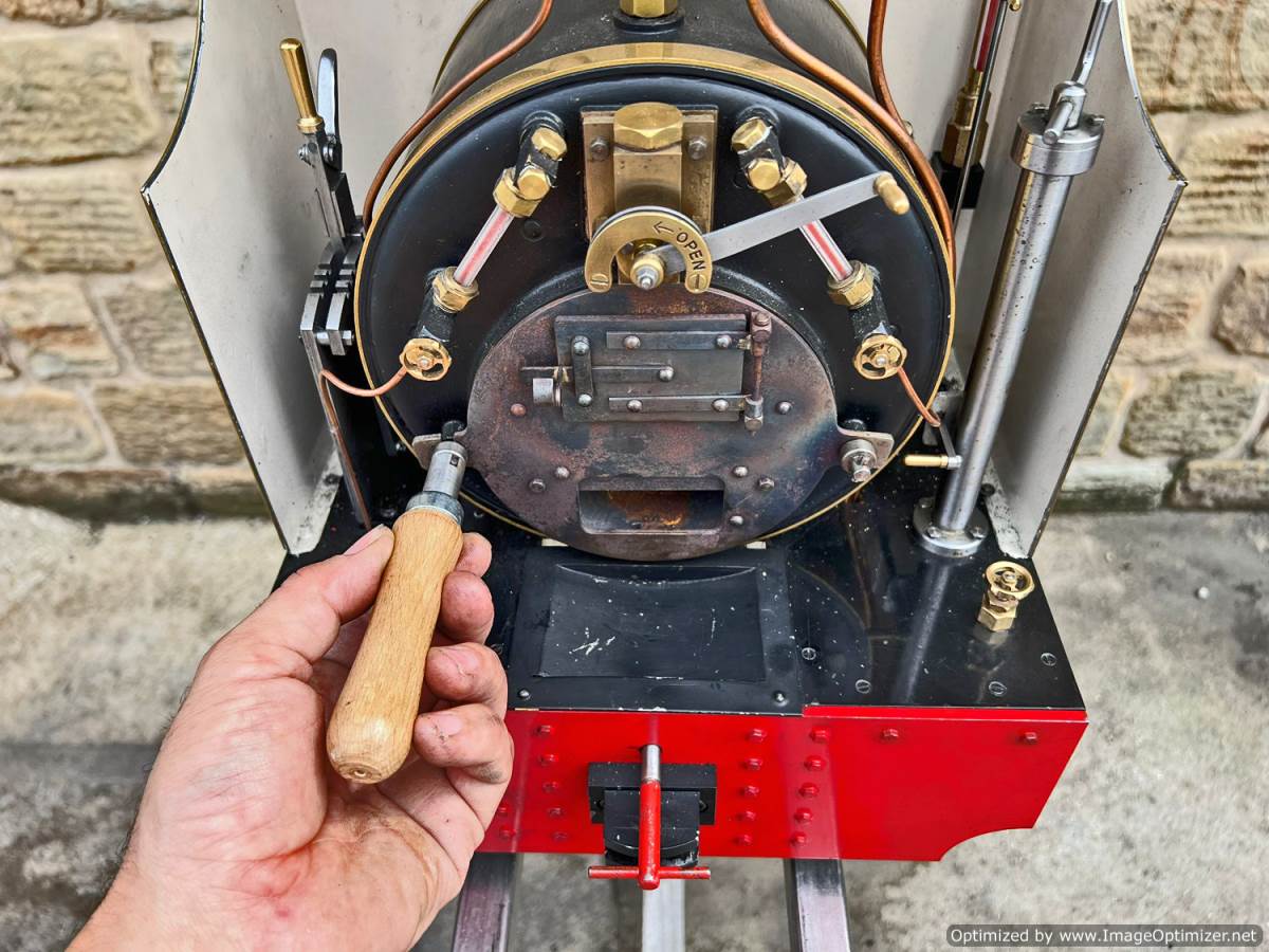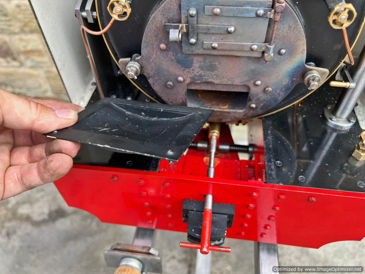 Lots or really crisp model engineering has gone into this one, including several really nice touches. The wheels are a unique design, having been modeled in CAD and then CNC milled from solid steel. The steam pump on the front end pumps water into the boiler beautifully, although there is also an injector fitted and an axle pump with footplate mounted bypass valve. Lubrication is mechanical with a reservoir and pump fitted to each side. The builder has put a lot of thought into the layout and function of the loco and there is a full set of bespoke tools included for handling the removal of the ash pan and grate as well as blowing down and draining the saddle tank. The grate it's self is a nicely designed rosebud set up that again looks well thought out.