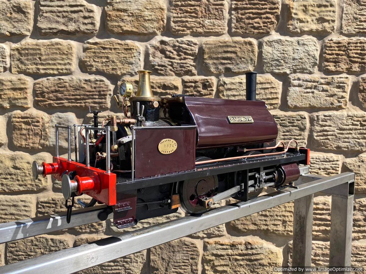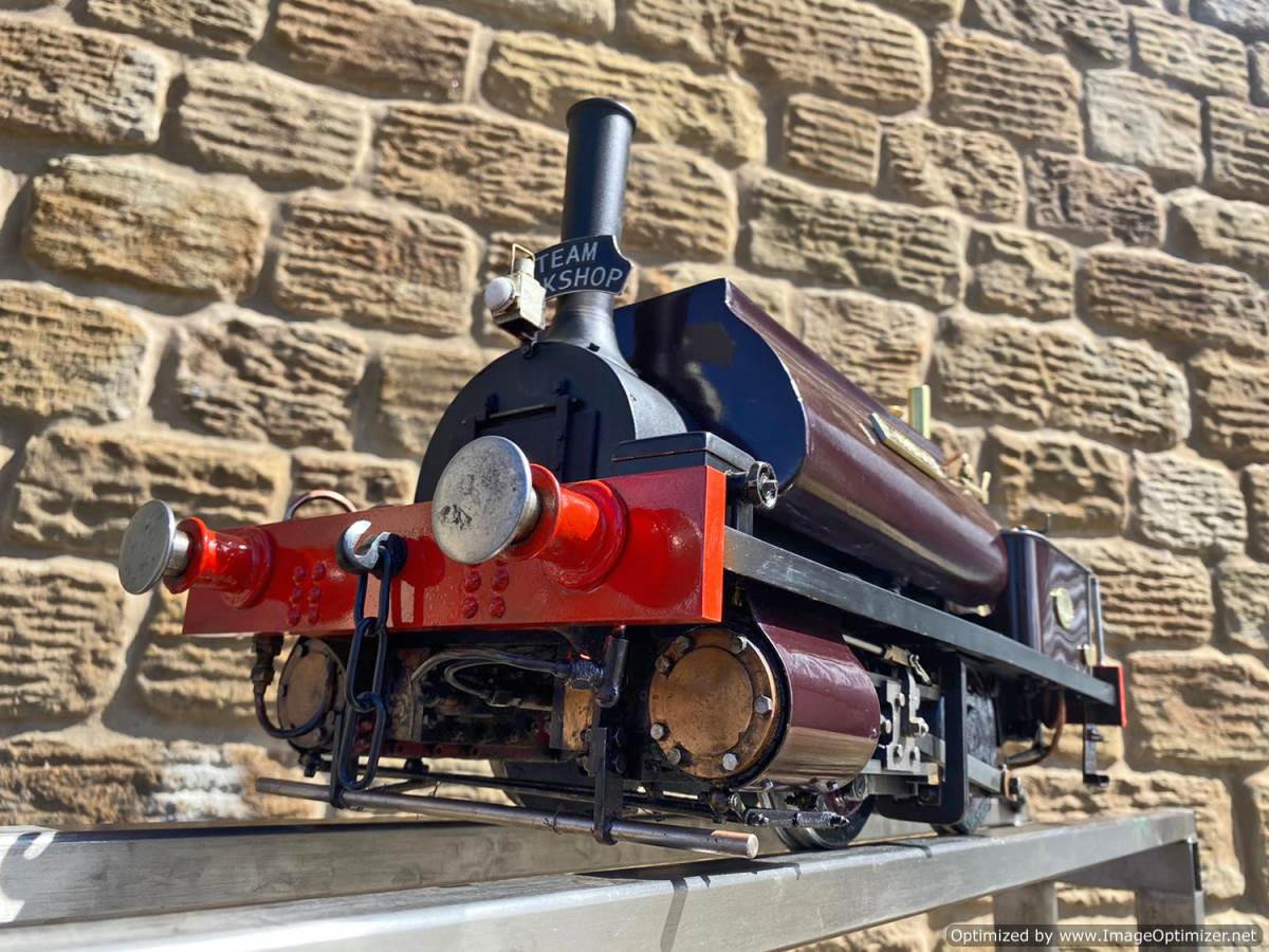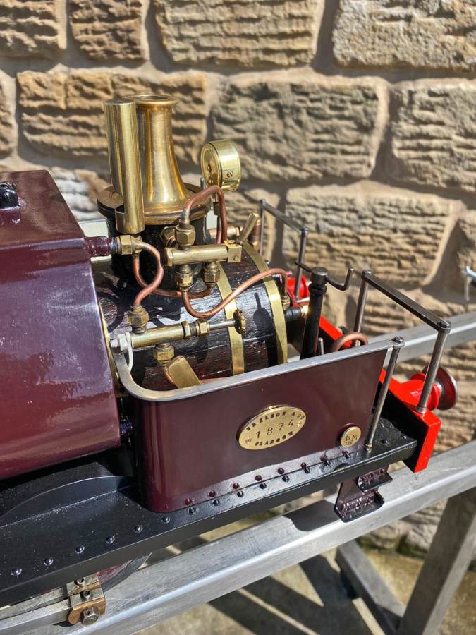Here we have a super pretty little 5" gauge Neilson & Co. Coffee Pot saddle tank. Built to the published 'Gemma' design by D Malcom. The prototype was originally produced in 1874, and Neilson's built a good number of locos to this basic design and supplied them to all manner of industry. Even the GER and subsequently the LNER has a few which they classified as Y5's. The name plate incidentally is currently just popped on with blu-tack and the tank is un-marked beneath them, so it can go nameless or indeed be 'personalised' if you so wish.