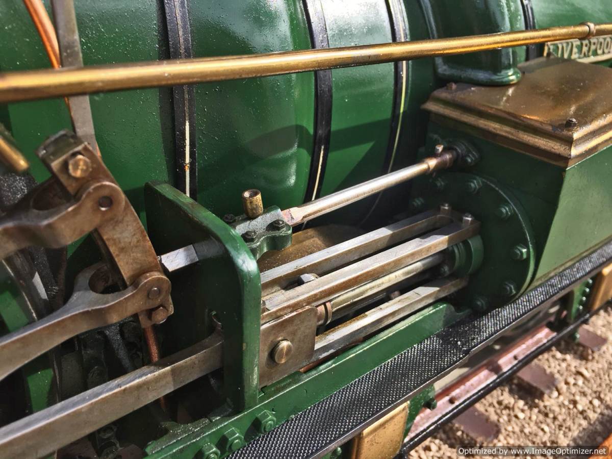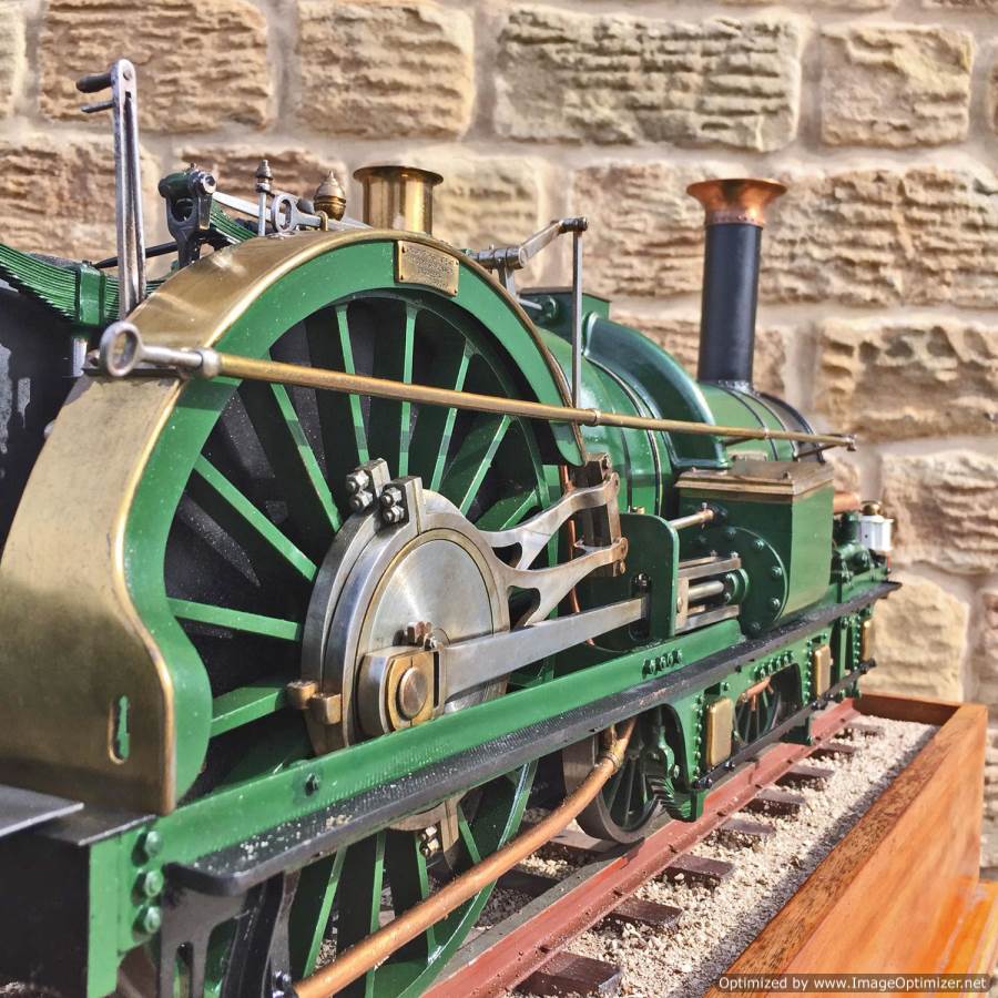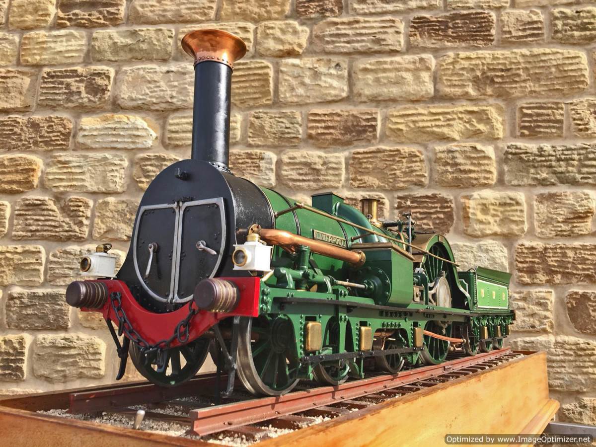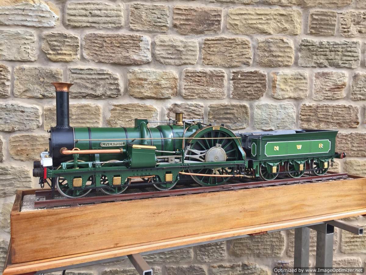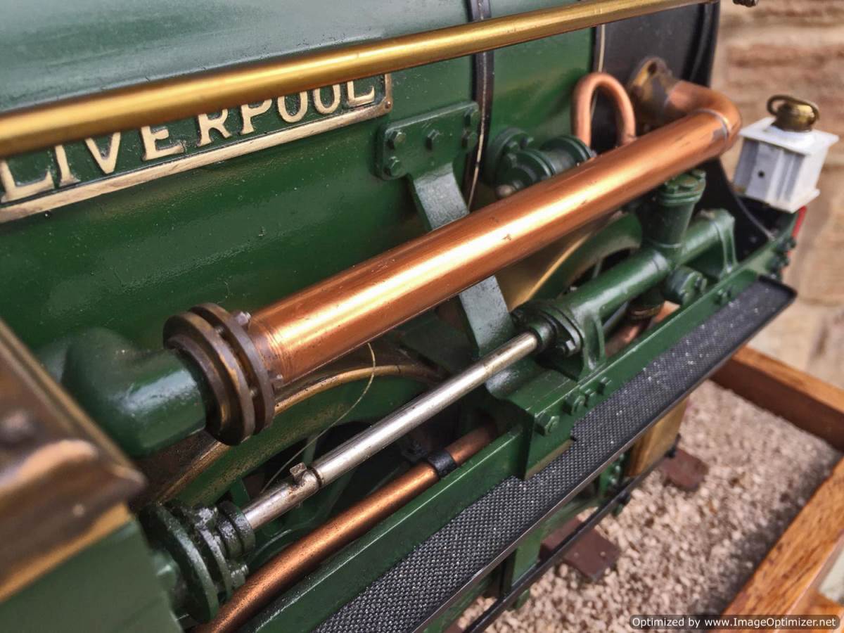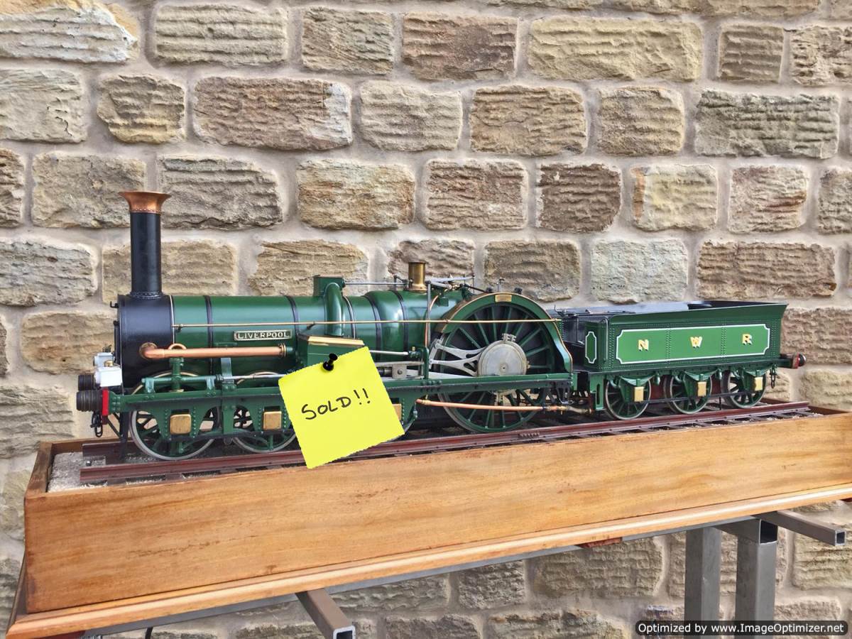 Here we have a superbly made and beautifully detailed 5" gauge Liverpool and Manchester Railway Crampton 'Liverpool'. Scratch built to the original full size loco design rather than the published and simplified model engineering design. Although mechanically she is built essentially as a working model, the boiler is not real, the backhead and smoke box details and fittings also being modelled for display. The wooden base is fitted with an electric motor so the driving wheel can be made to spin with the switch on the end of the display plinth. If we had more time here in the works we would have been putting a boiler on this one and turning her into a runner. The detail is so nicely done it is a shame that we can't just throw a fire in it! That said, as a beautiful display model it is a very worthy model to grace any mantlepiece!