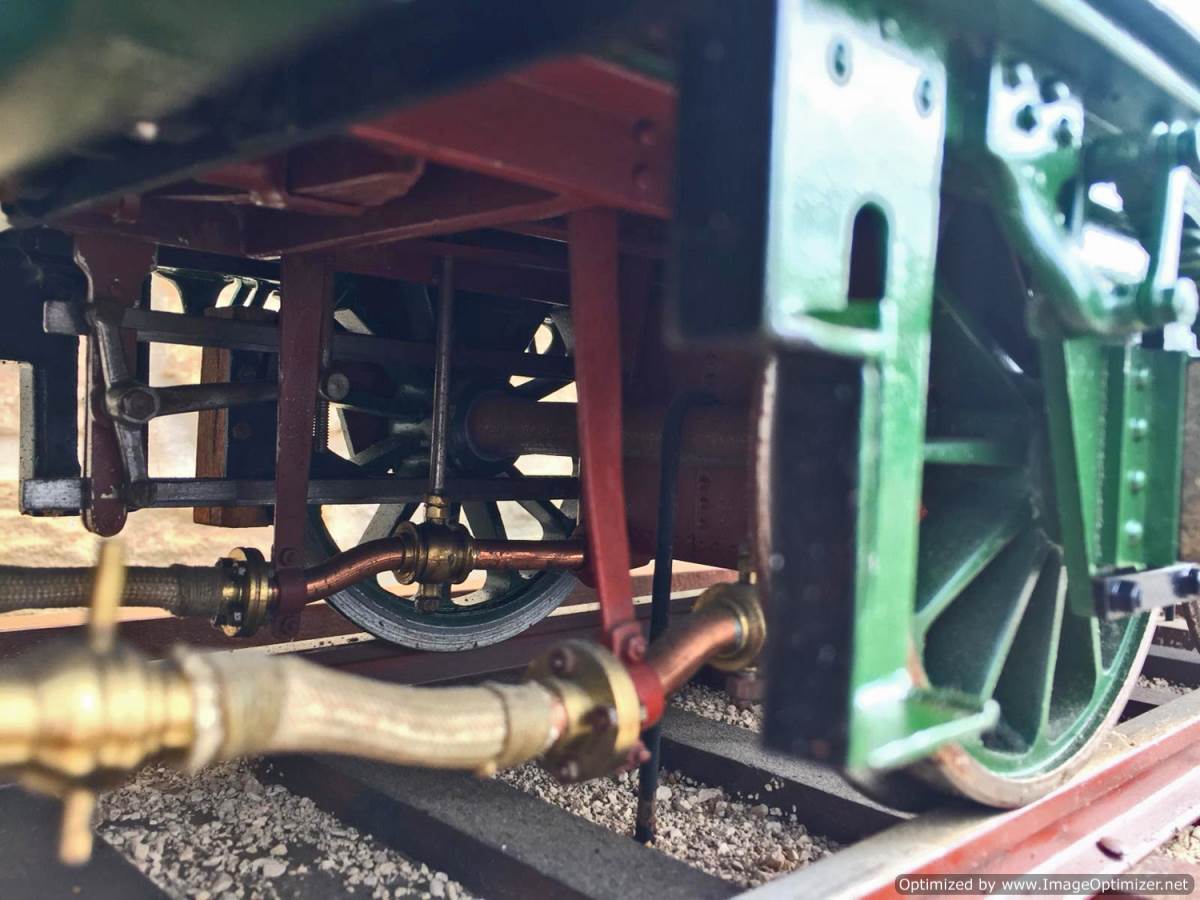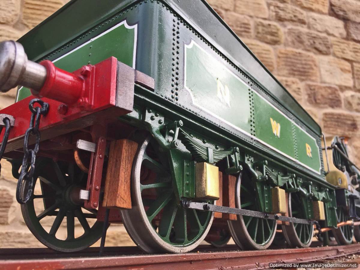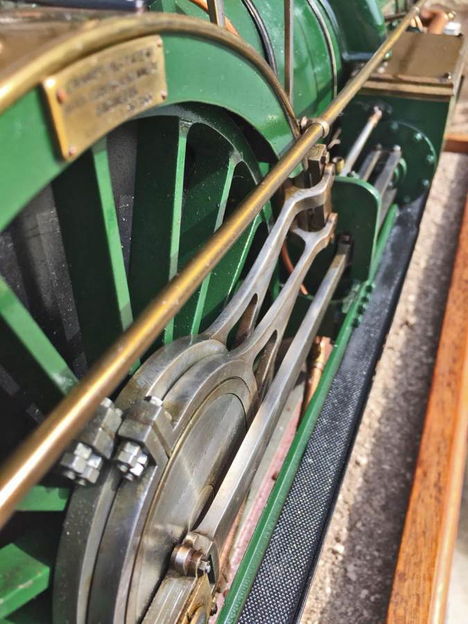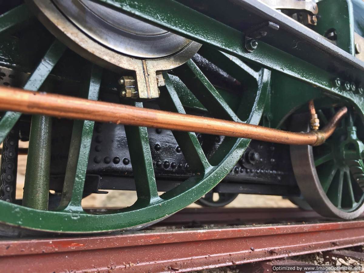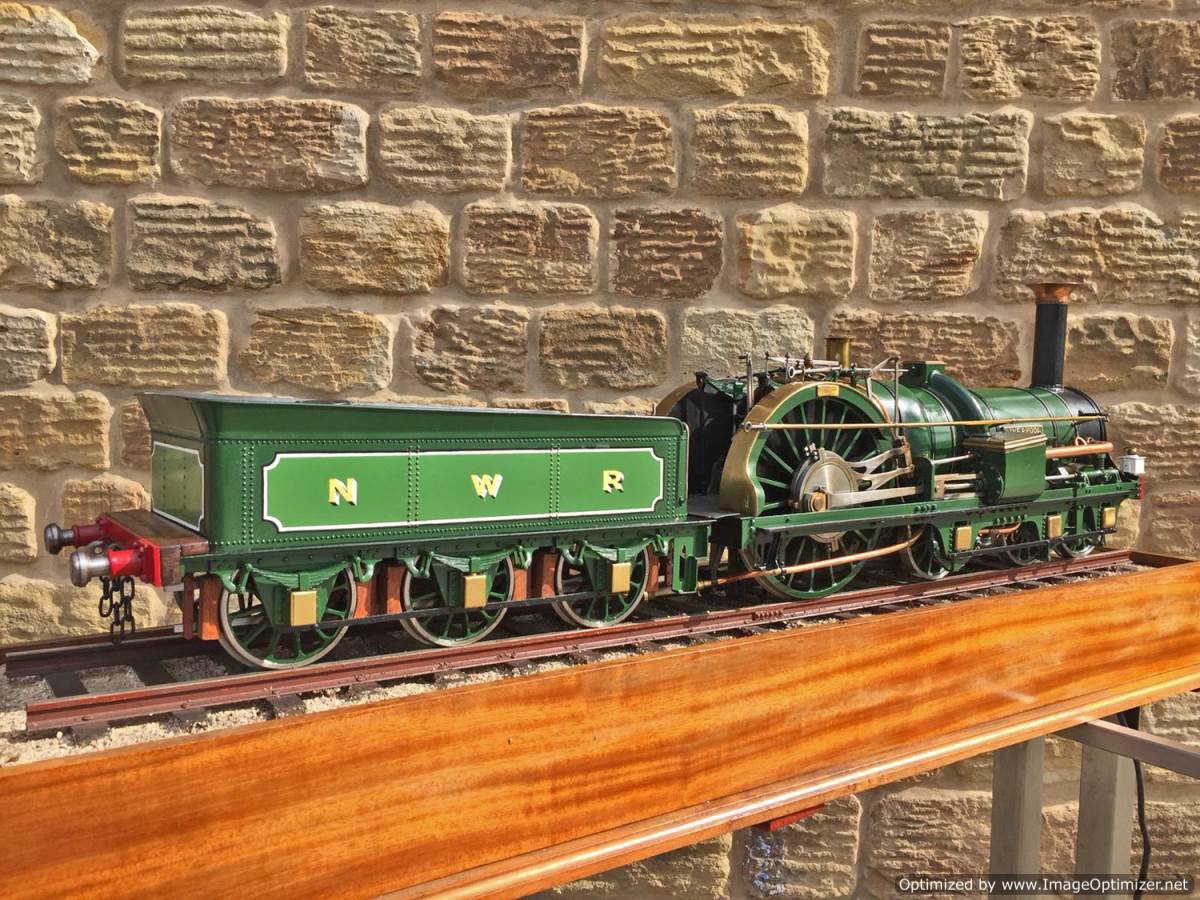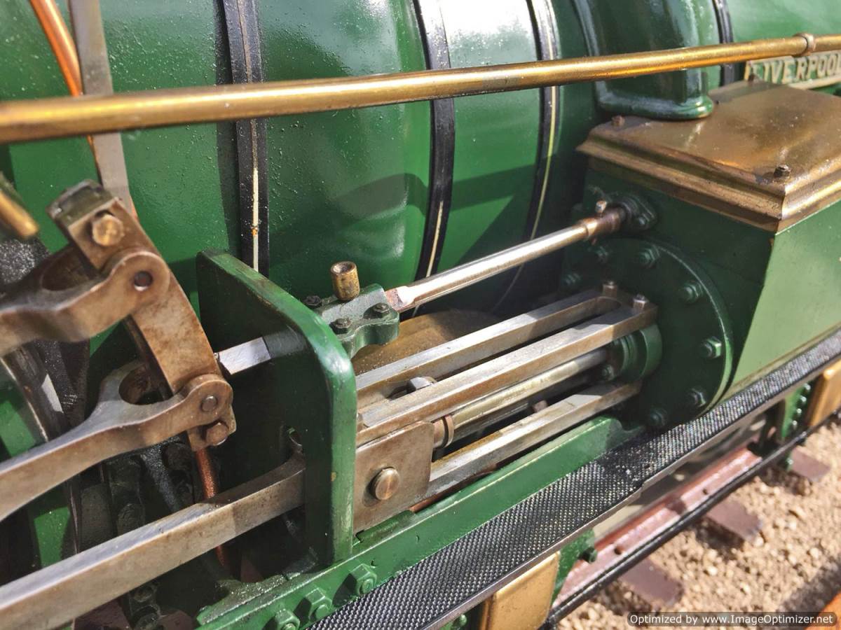 Here we have a superbly made and beautifully detailed 5" gauge Liverpool and Manchester Railway Crampton 'Liverpool'. Scratch built to the original full size loco design rather than the published and simplified model engineering design. Although mechanically she is built essentially as a working model, the boiler is not real, the backhead and smoke box details and fittings also being modelled for display. The wooden base is fitted with an electric motor so the driving wheel can be made to spin with the switch on the end of the display plinth. If we had more time here in the works we would have been putting a boiler on this one and turning her into a runner. The detail is so nicely done it is a shame that we can't just throw a fire in it! That said, as a beautiful display model it is a very worthy model to grace any mantlepiece!
