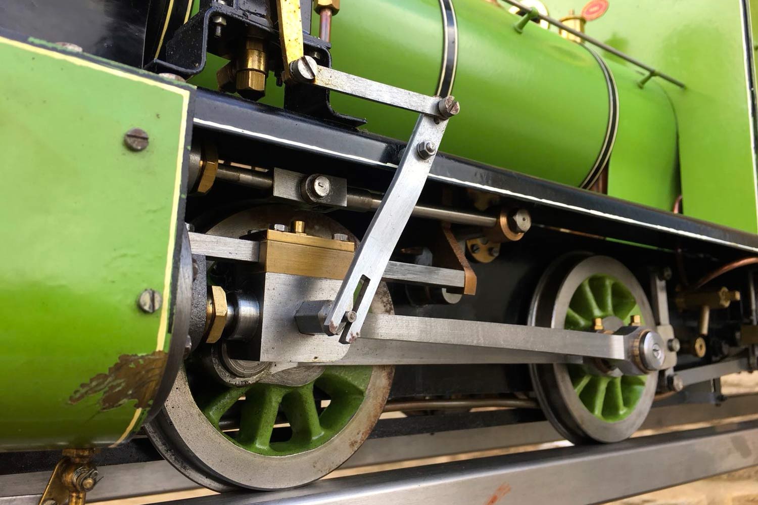 Here we have a nice and tidy Polly 2 0-4-0 tender loco. Well built and well looked after, there's not a lot of complexity or detail to write about this one! There's an injector fitted, an axle pump and a hand pump,.... and lubrication is mechanical and easy to get at on the running board.