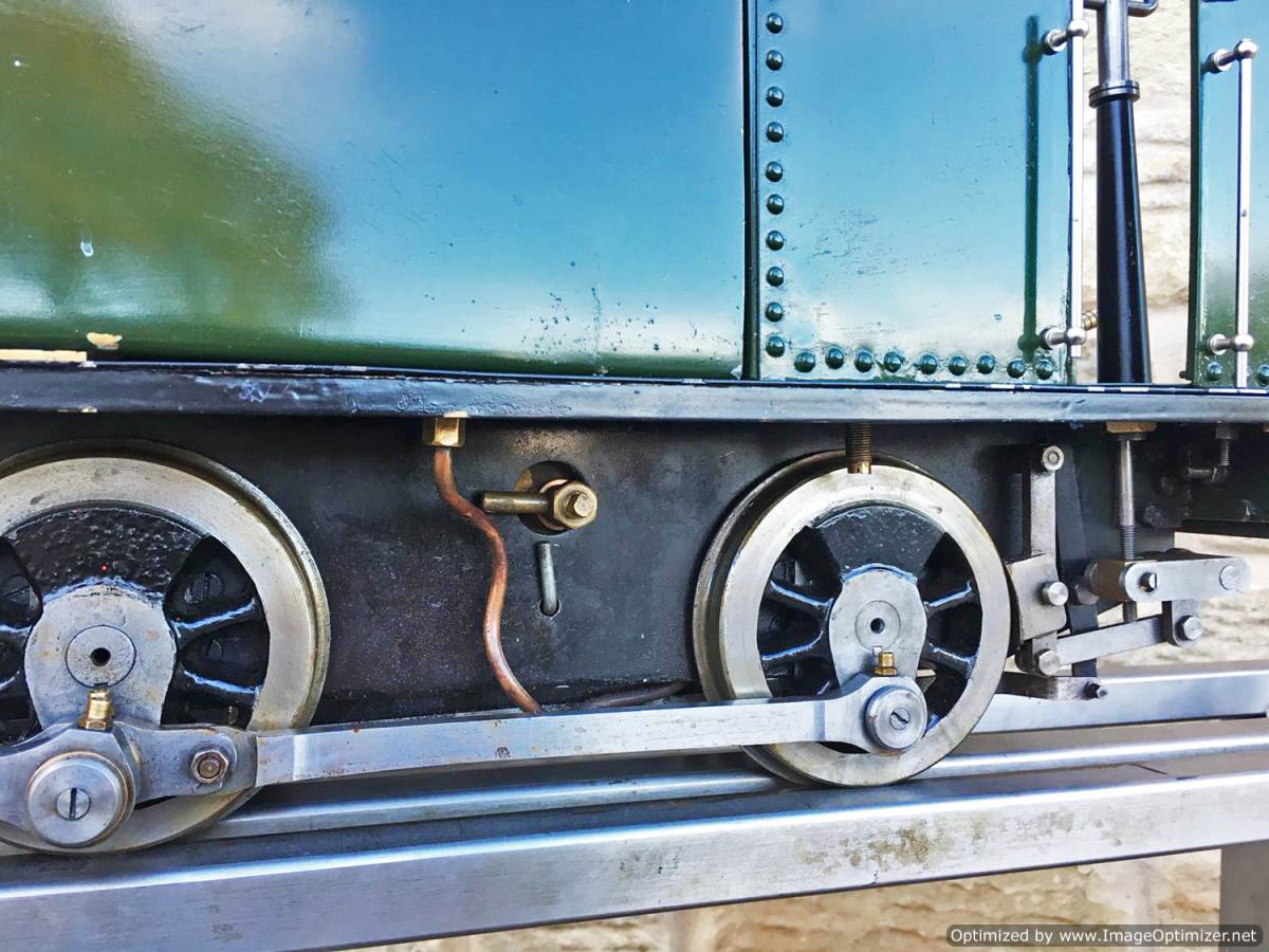 Here we have a fairly tidy and well presented Polly 3 locomotive. What you see isn't quite what you get here,... if you look closely you will see that the left hand tank is raised slightly on a plate fitted to the underside of the tank, and it's twisting things about a bit. That will be removed and sorted before delivery. Also, there are a couple of home made pins in the valve gear that are super sloppy at the moment, so we will be sorting out the bottom end with some new pins and bushes too before it leaves. Essentially, it'll look like it does in the pictures, just slightly neater and it'll work!