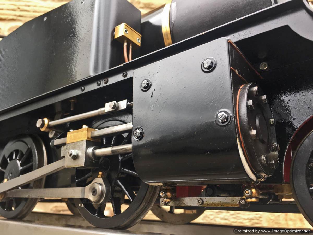 Fitted with an injector, a mechanical axle pump with footplate mounted bypass valve and of course a hand pump in the tank. Lubrication is mechanical and easily accessible on the running board. The boiler is the usual very nicely made professional one from Polly and she comes fully tested, certificated and ready to hit the track.