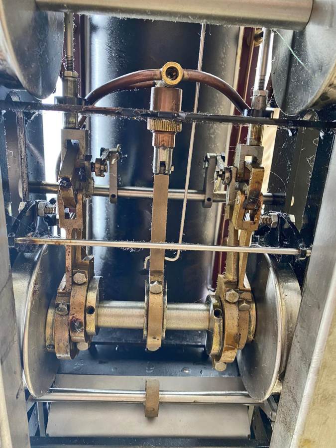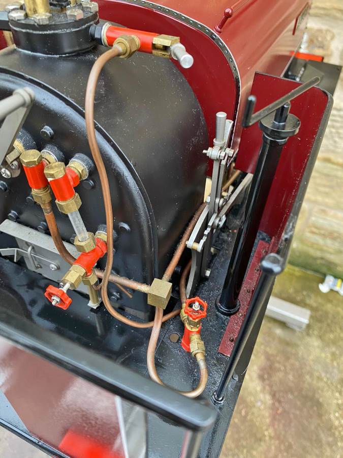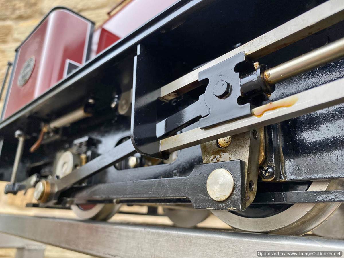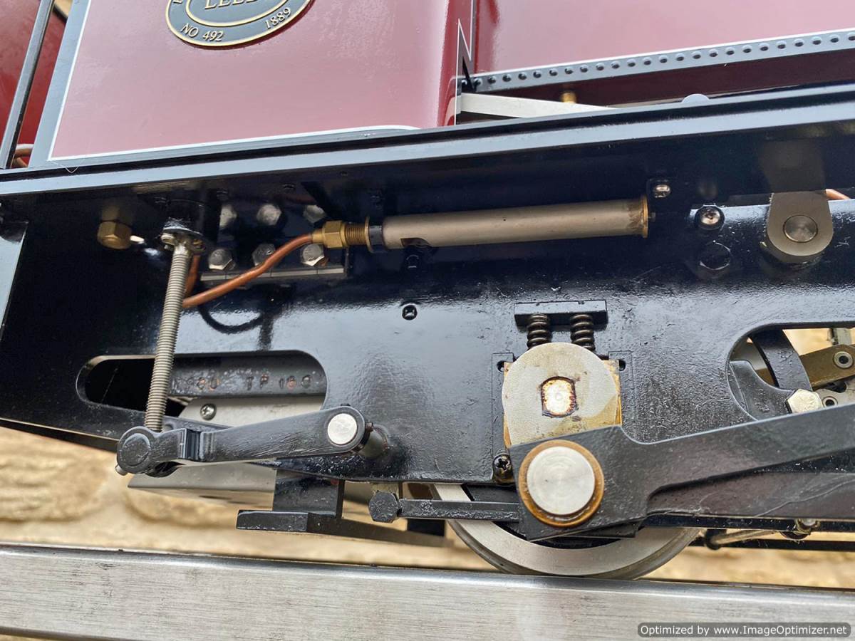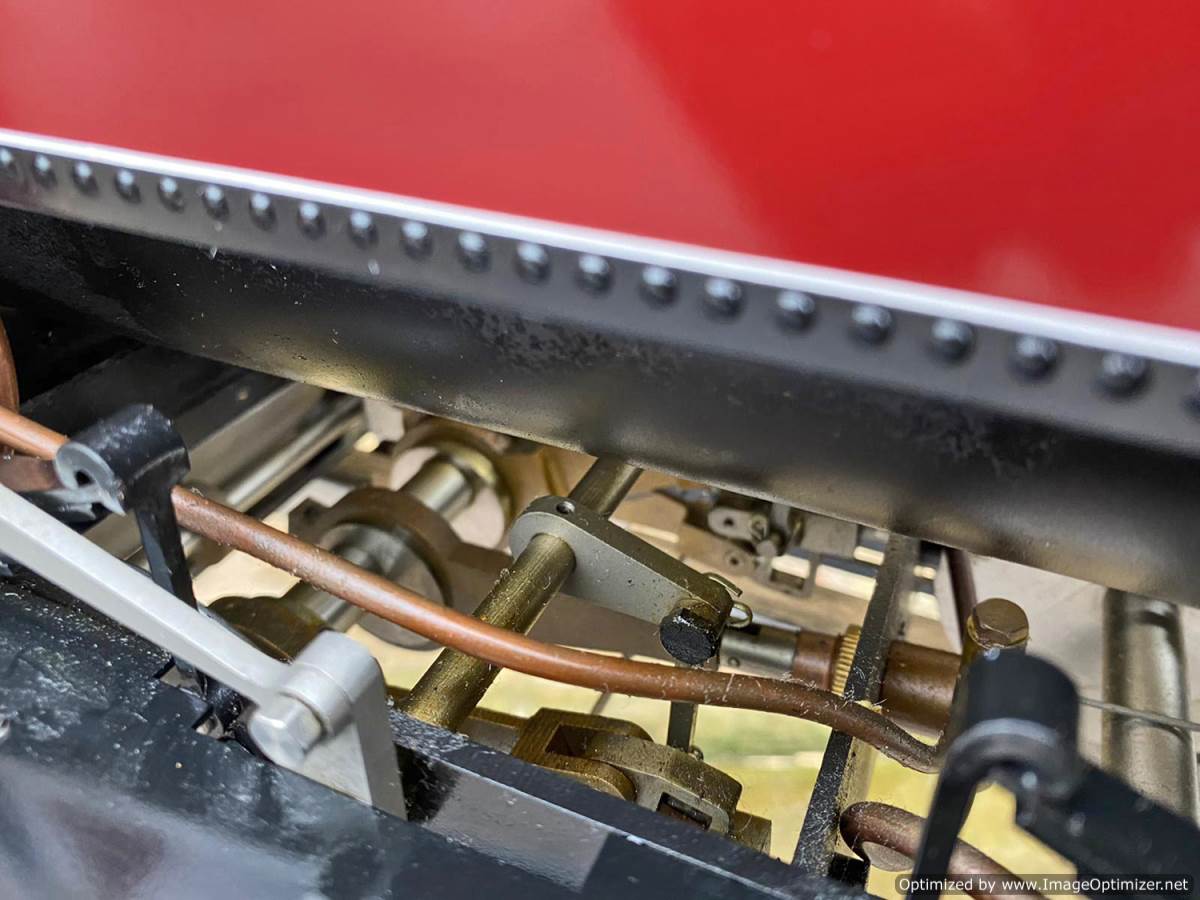 There is an axle pump fitted with footplate bypass valve and a hand pump on the footplate as well. Lubrication was originally a simple displacement one, but Maxitrak offer a mechanical lubricator upgrade, which the previous owner has had fitted under the front running board.