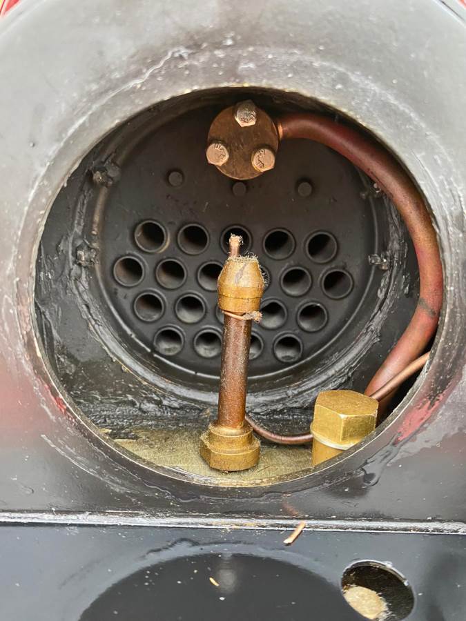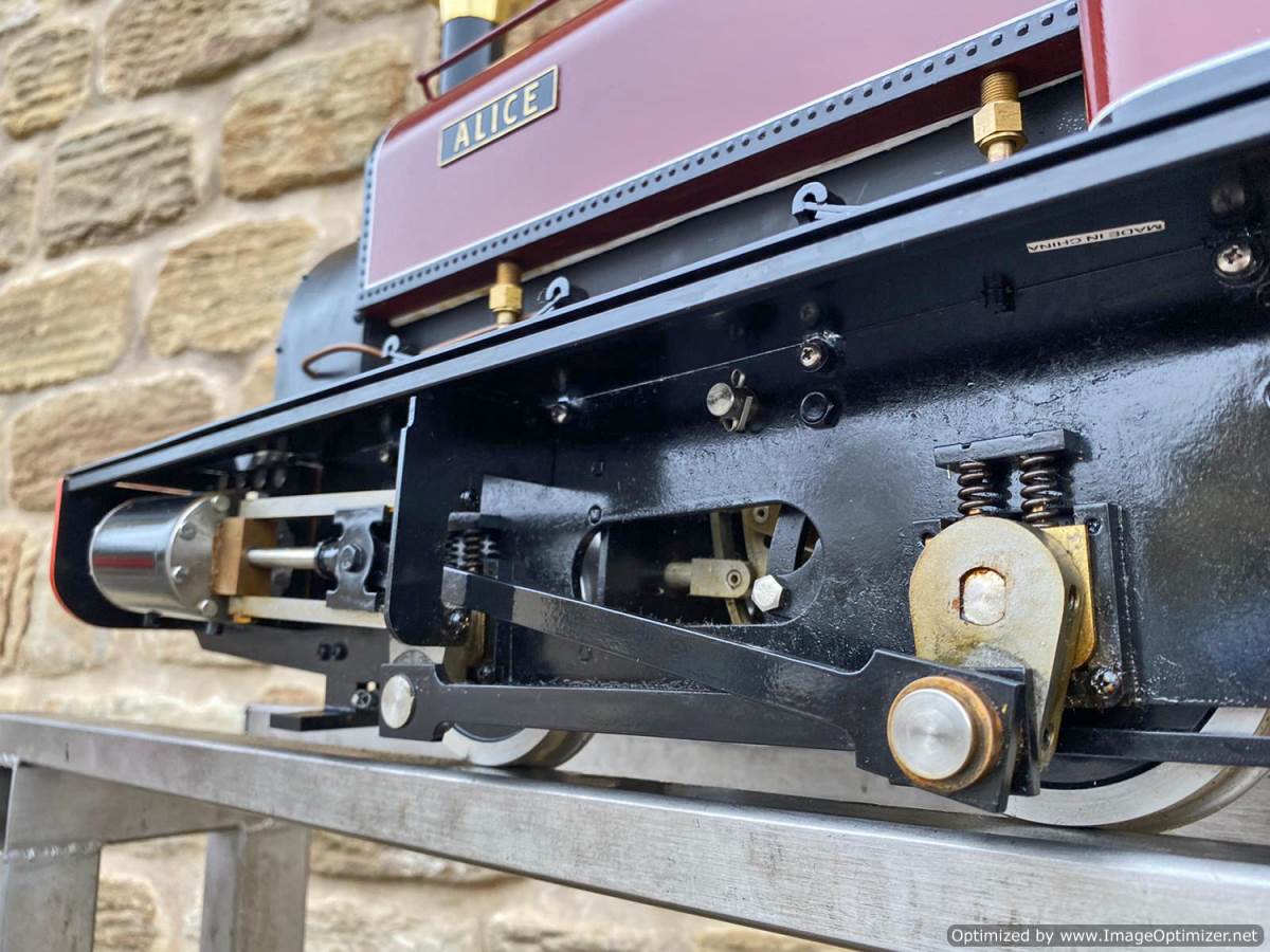 The boiler is of course a professionally made copper silver soldered one, and can be given a fresh 4 year hydraulic test and annual steam test before she leaves us so that she's ready for you to play. Whilst the loco is quite simply constructed, and concessions have clearly been made for ease of commercial production,.... (the rods are all laser cuts rather than machined up,.... the springs are all silhouette cut outs rather than individually leaved fabrications),.... the net result is extremely neat and convincing. Everything is certainly very crisp and well executed.