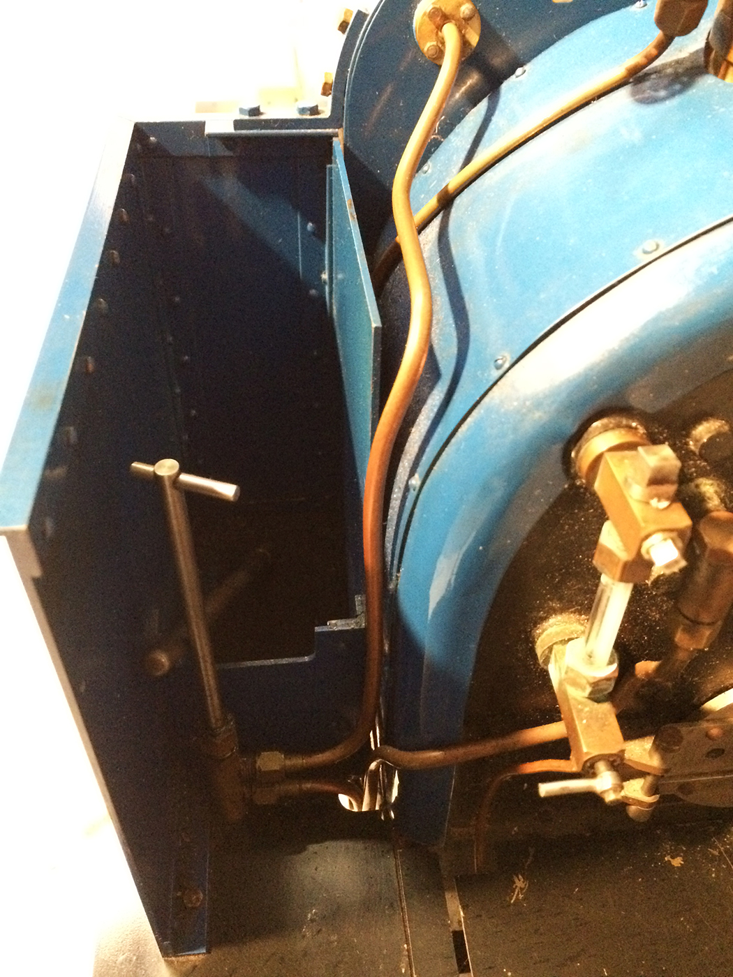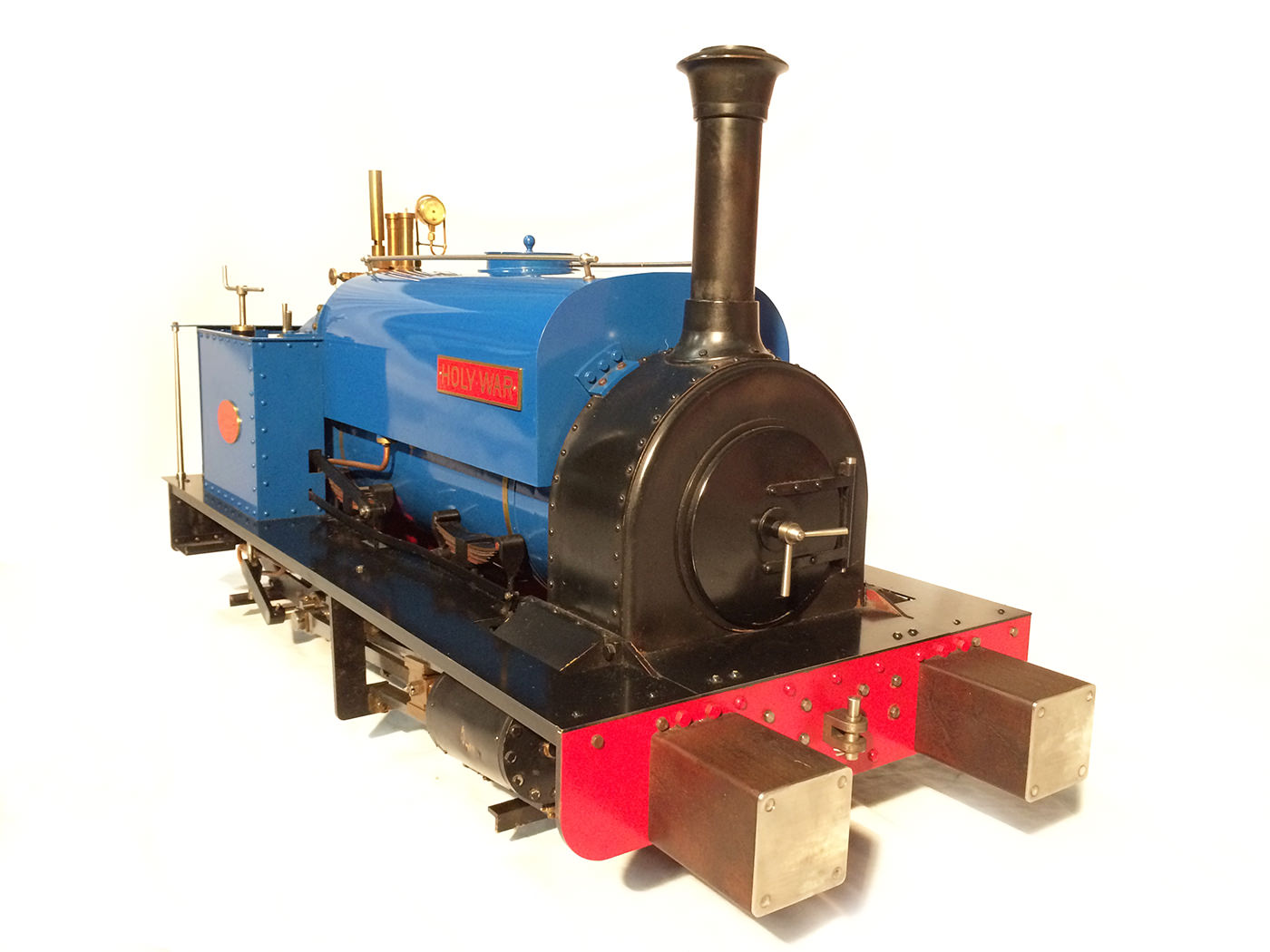 Here we have another well built 5" gauge 'Alice' class quarry Hunslet, made to the Don Young design. The model was finished in 2003 although it has seen very little use since it was made. It runs extremely well, and will crawl along, notching back beautifully. There is an injector, an axle pump with a bypass valve on the footplate and an emergency hand pump in the saddle tank. Lubrication is by two very substantial mechanical lubricators under the front footplate .